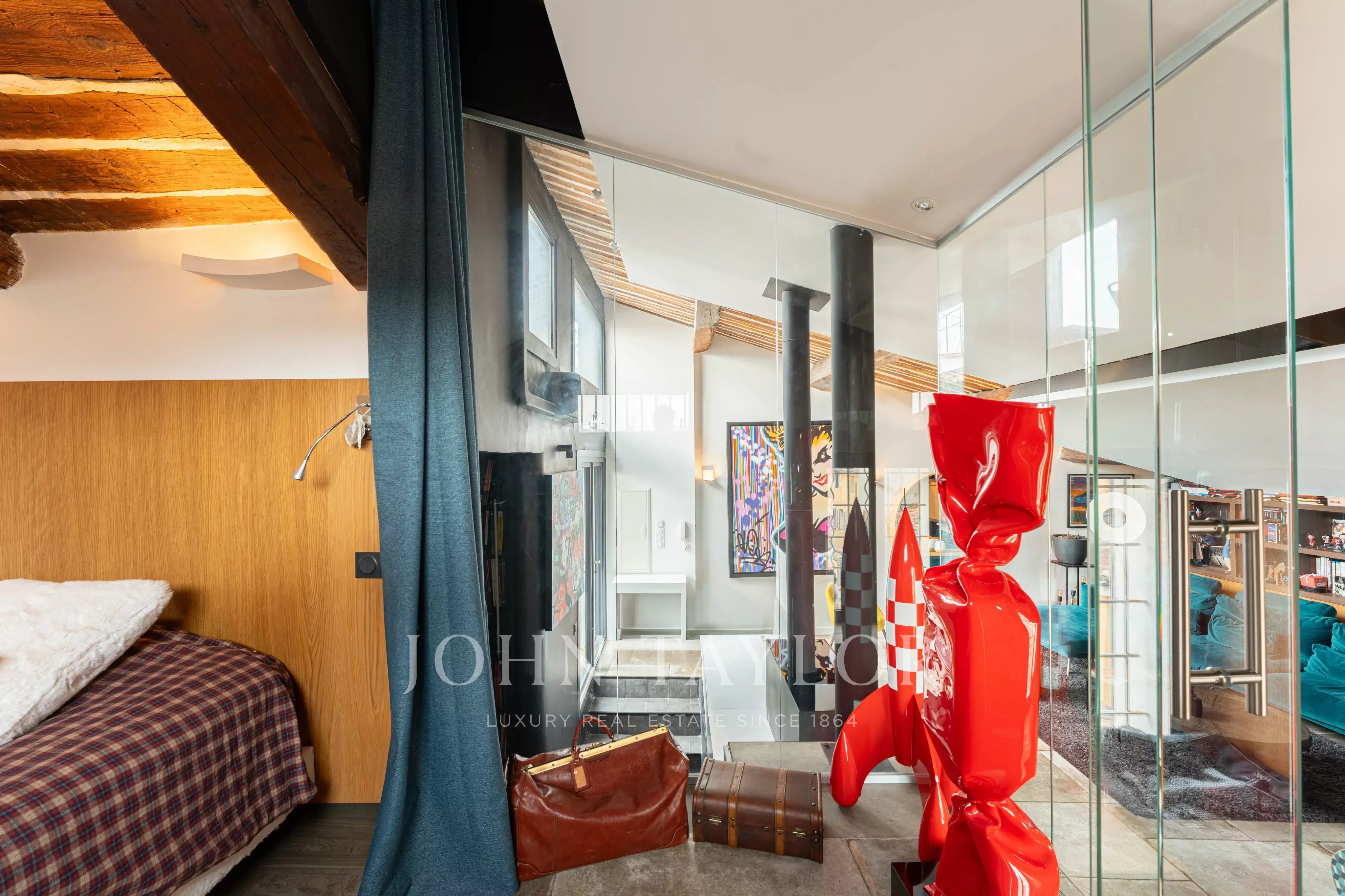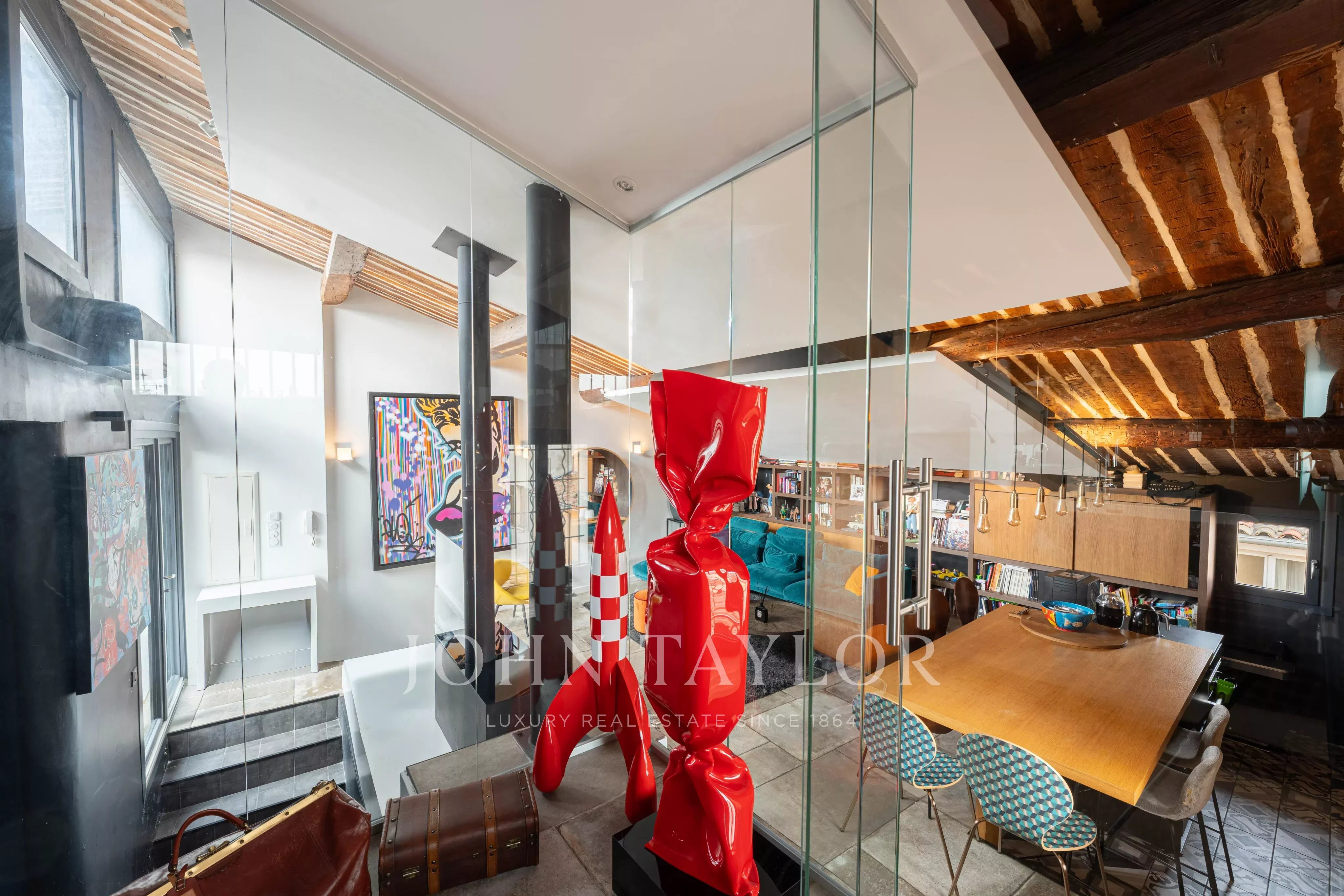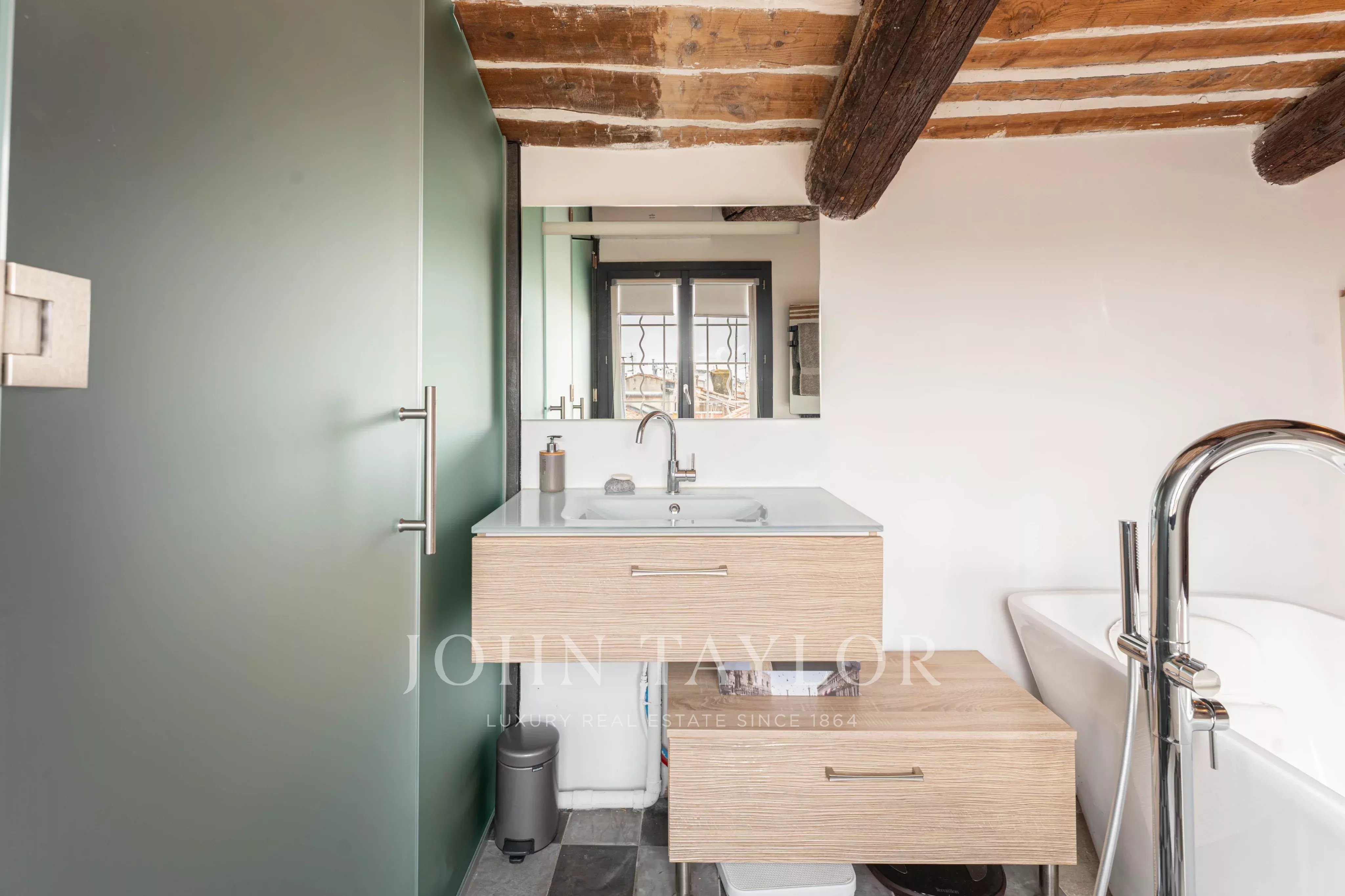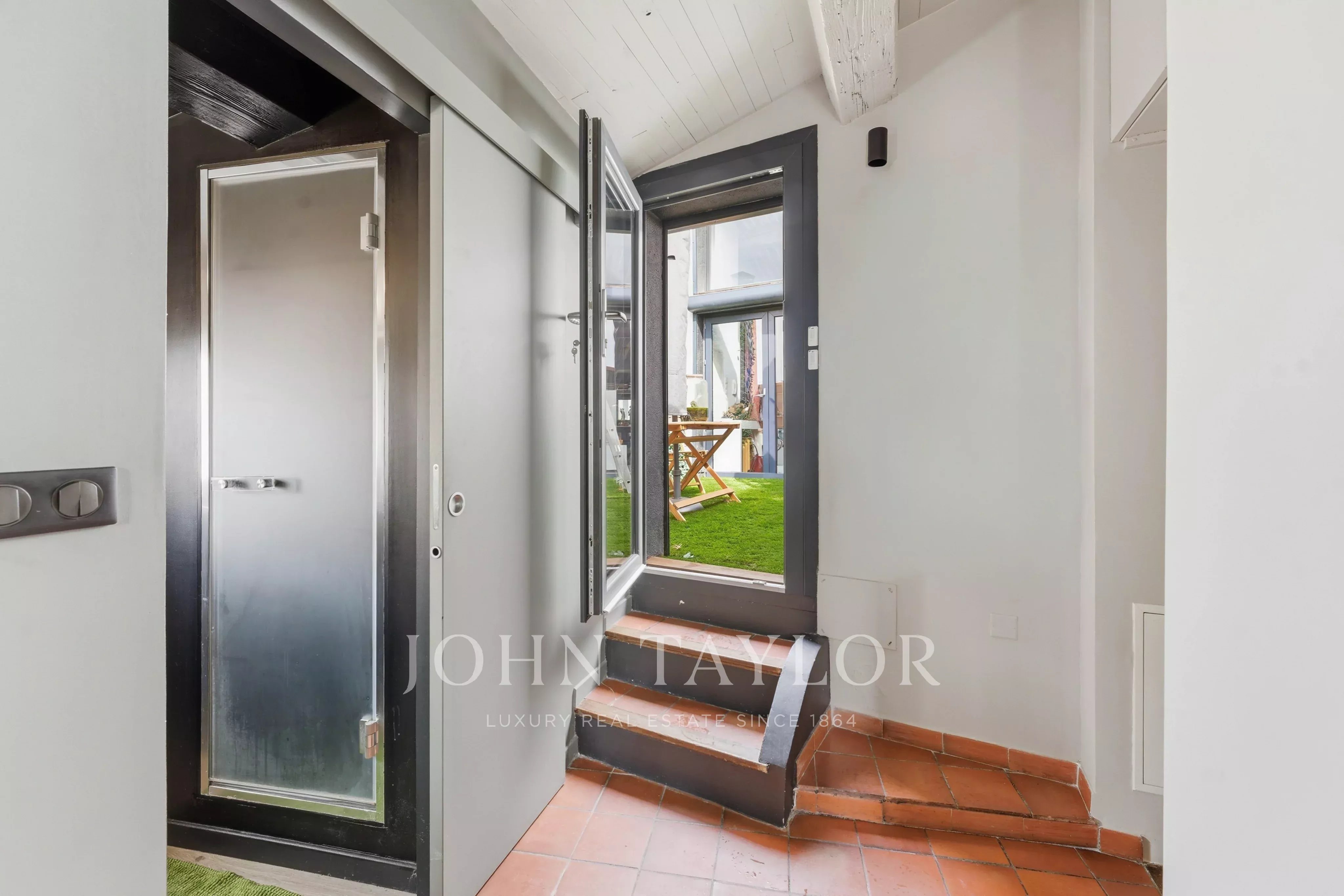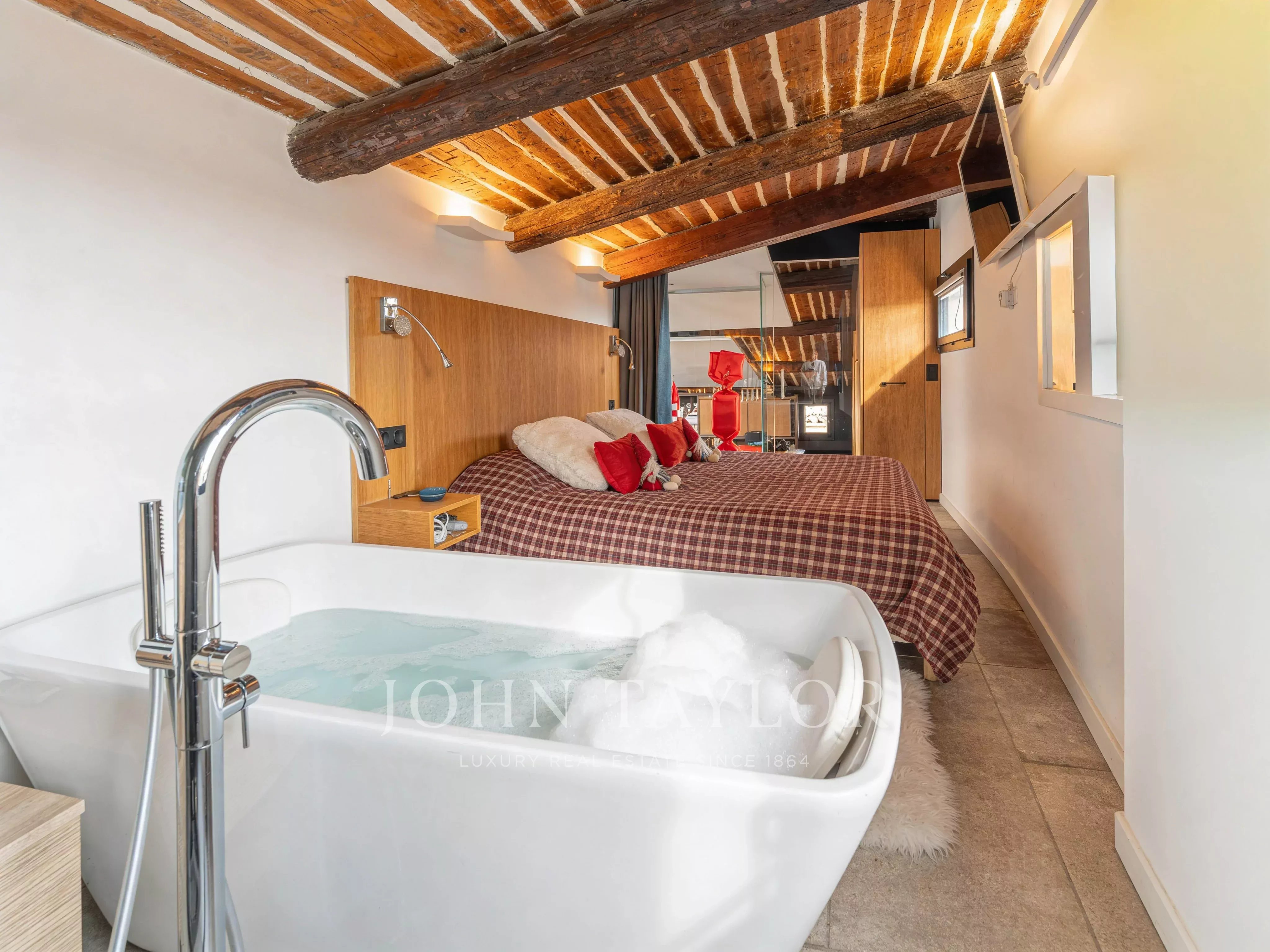 Descubra este espectacular apartamento de 110 m² ubicado en el corazón de Aix-en-Provence, que combina elegancia y confort en un entorno contemporáneo. La propiedad cuenta con un luminoso salón de techos altos y vigas vistas, una decoración moderna y colorida, y grandes ventanales que dan acceso directo a una encantadora terraza privada con jardín vertical, ideal para relajarse al aire libre.