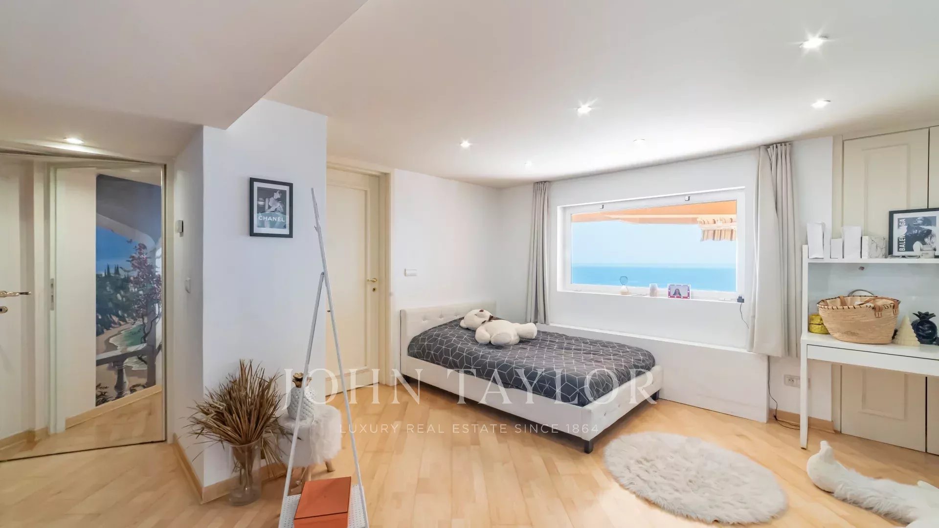 Consta de un salón catedral y un comedor panorámico con vistas al mar y chimenea de etanol, una cocina independiente con vistas al mar, una sala de juegos o estudio, una suite principal con vistas al mar con vestidor y cuarto de baño. En la planta superior hay un dormitorio con vistas al mar y cuarto de baño, y otros dos dormitorios con vistas al mar, vestidores y cuarto de ducha.