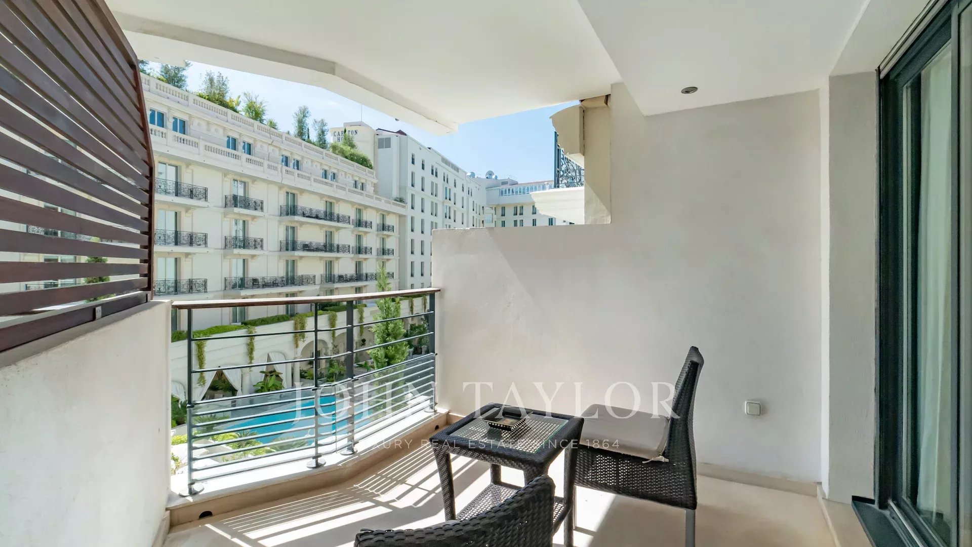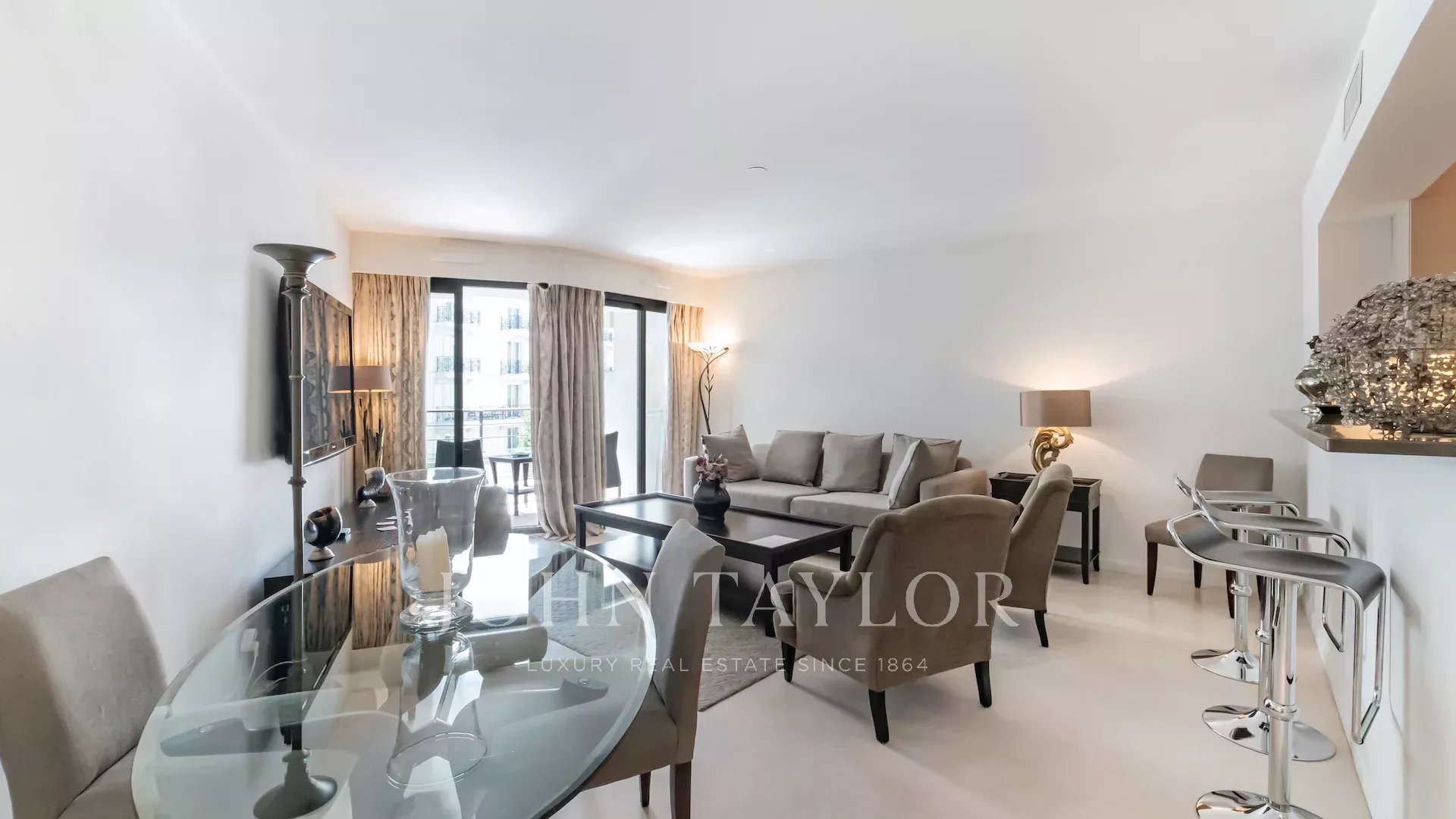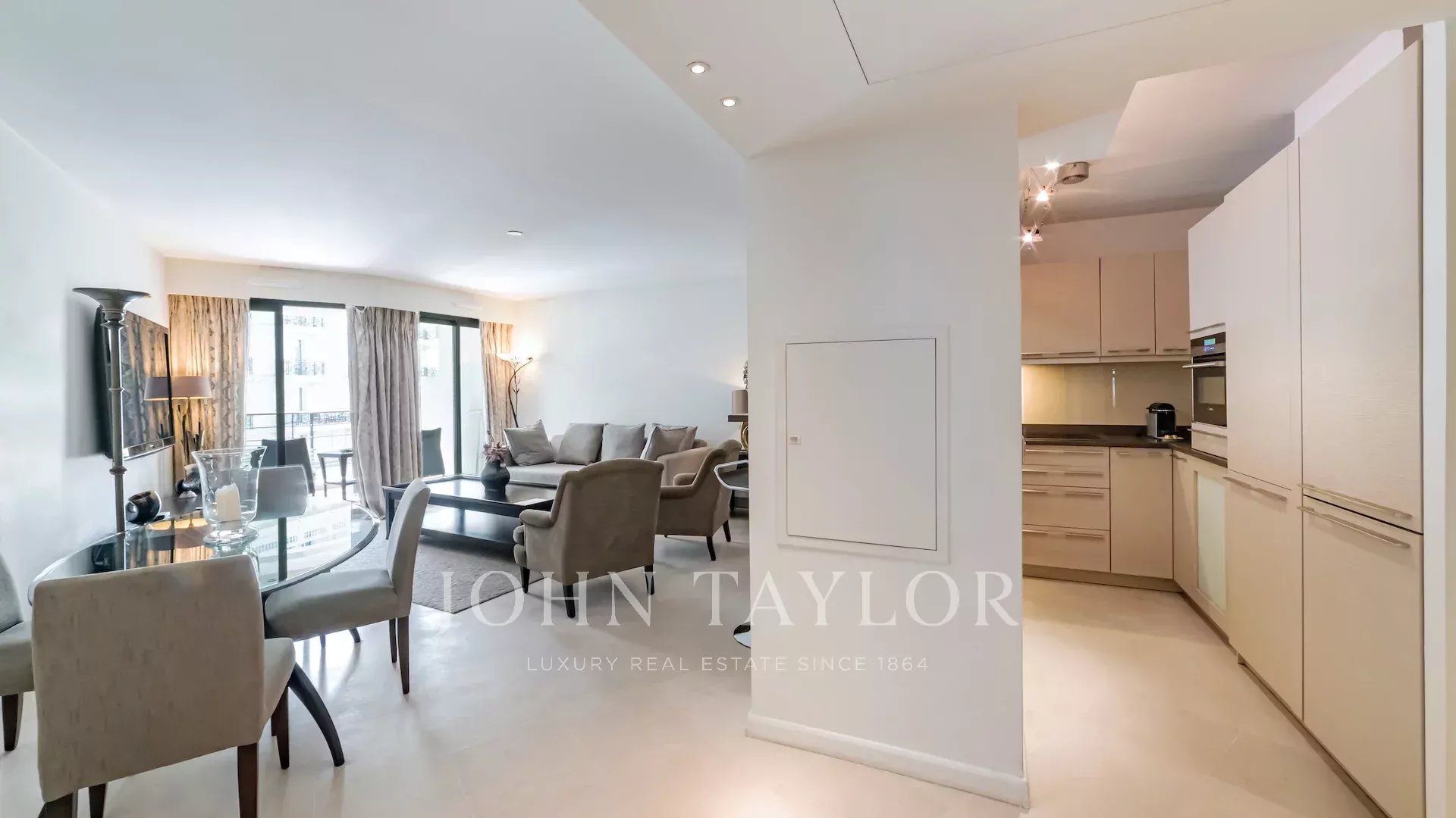 A pocos metros de la Croisette, en una residencia de lujo con conserje, este magnífico piso transitable cuenta con dos terrazas y una distribución ideal.