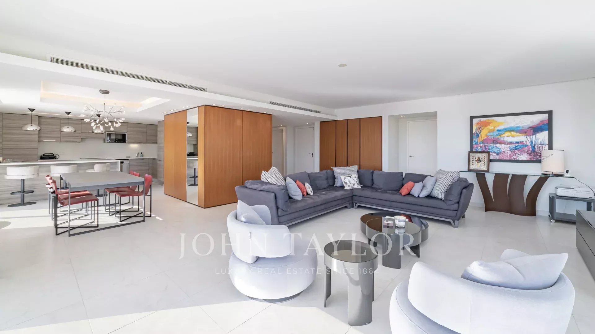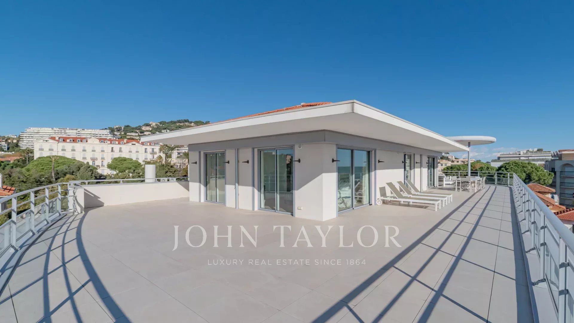En una pequeña y reciente residencia de lujo con piscina, este ático ofrece 144,33 m² de superficie habitable (Loi Carrez), una amplia y profunda terraza de casi 200 m² y magníficas vistas al mar, a la isla Sainte-Marguerite y a California.