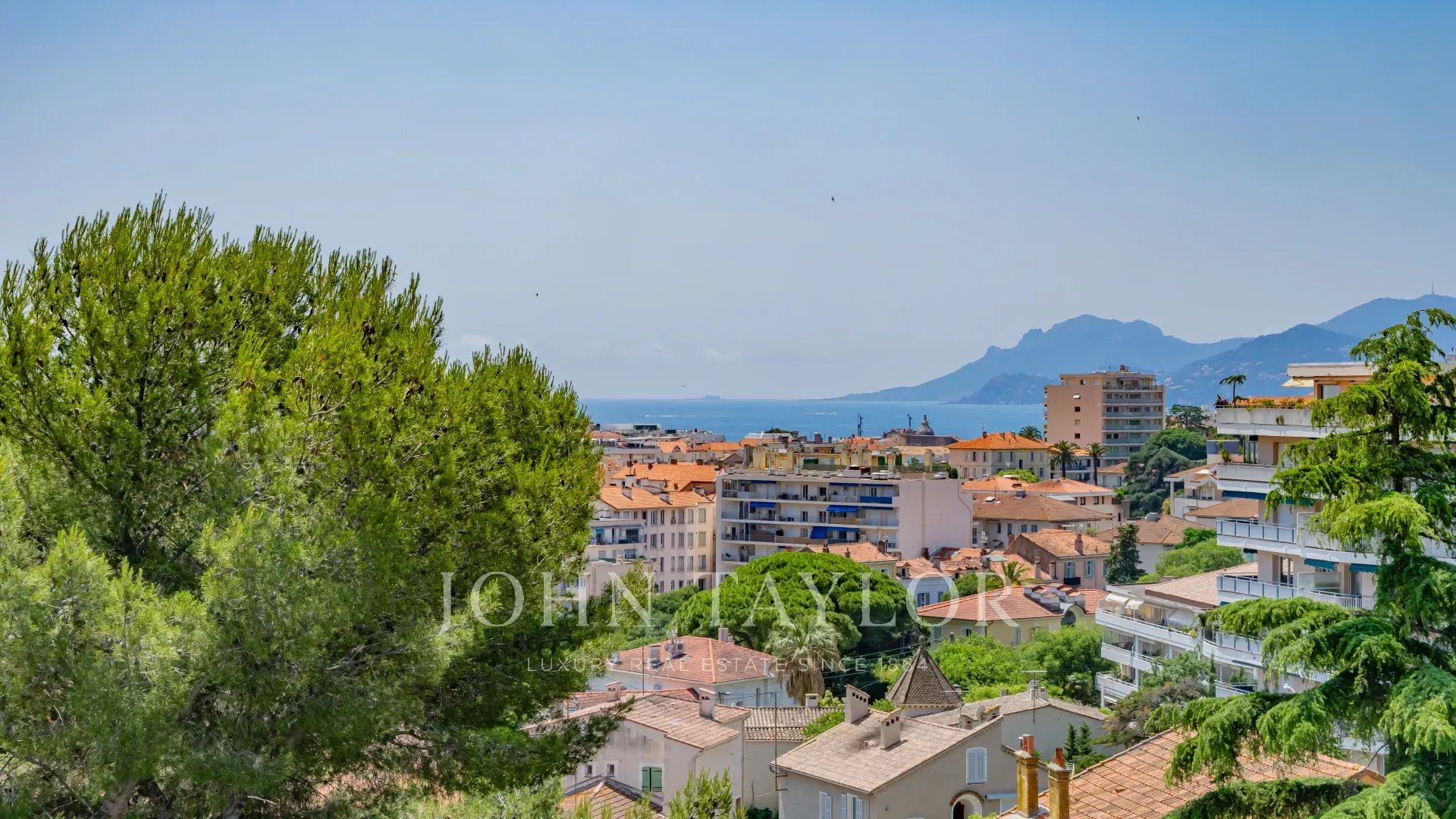 La propiedad goza de vistas panorámicas sobre el mar, la bahía de Cannes, California y las colinas circundantes.