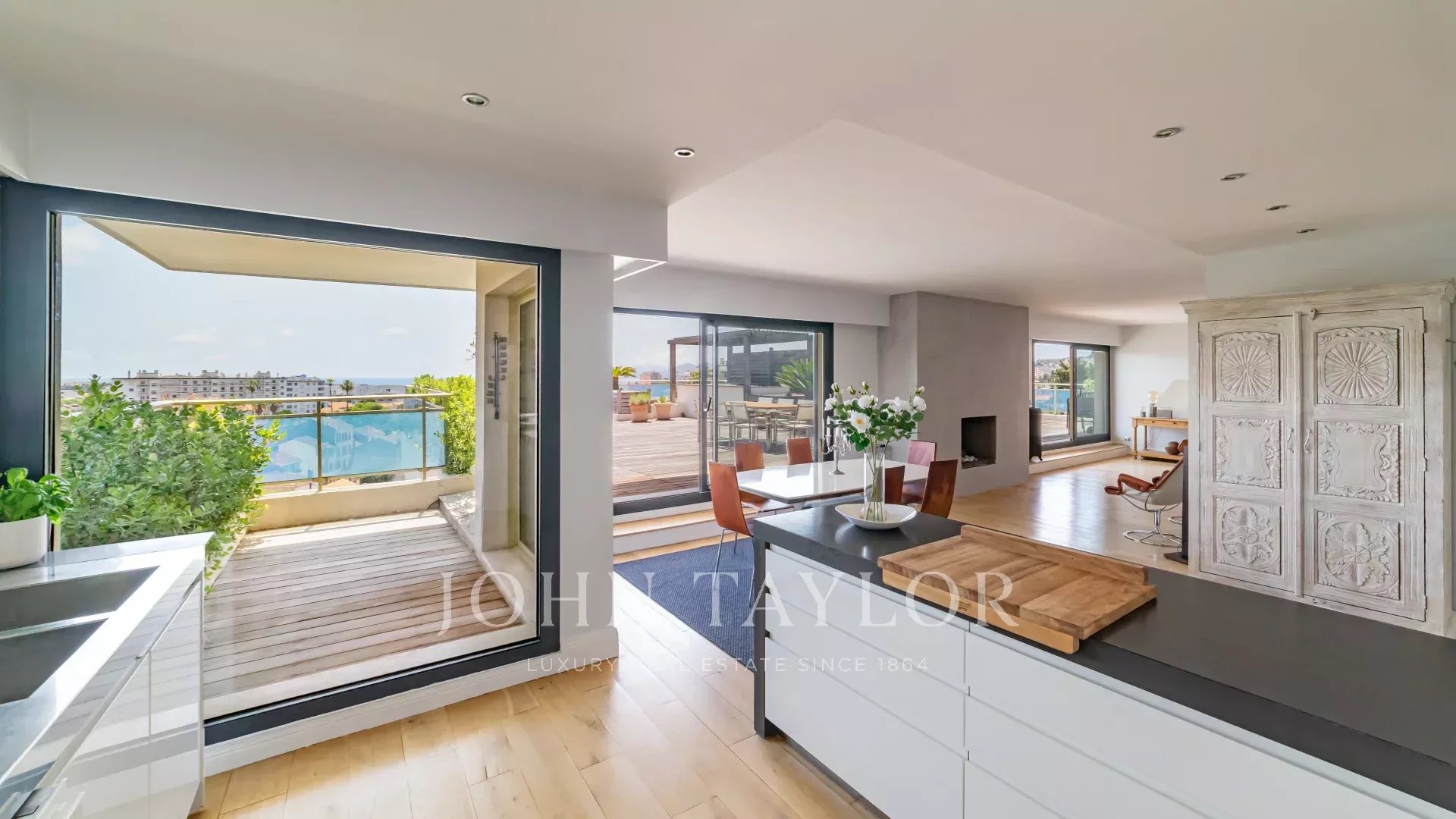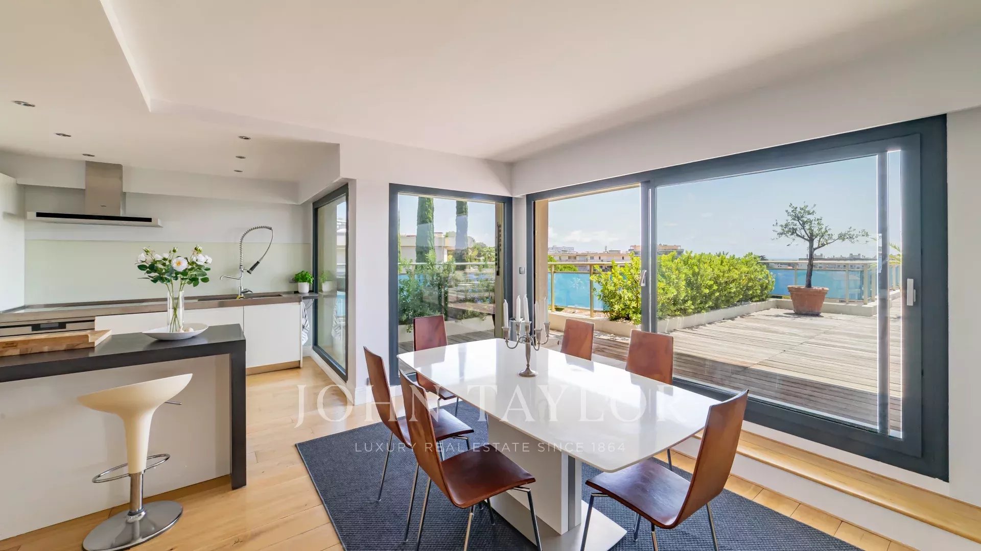 En la codiciada zona residencial de Montrose, a sólo 12 minutos a pie de la Rue d'Antibes y del centro de Cannes, este magnífico ático de 137 m² en la última planta consta de un estudio independiente de 27 m² con su propia terraza de 10 m².