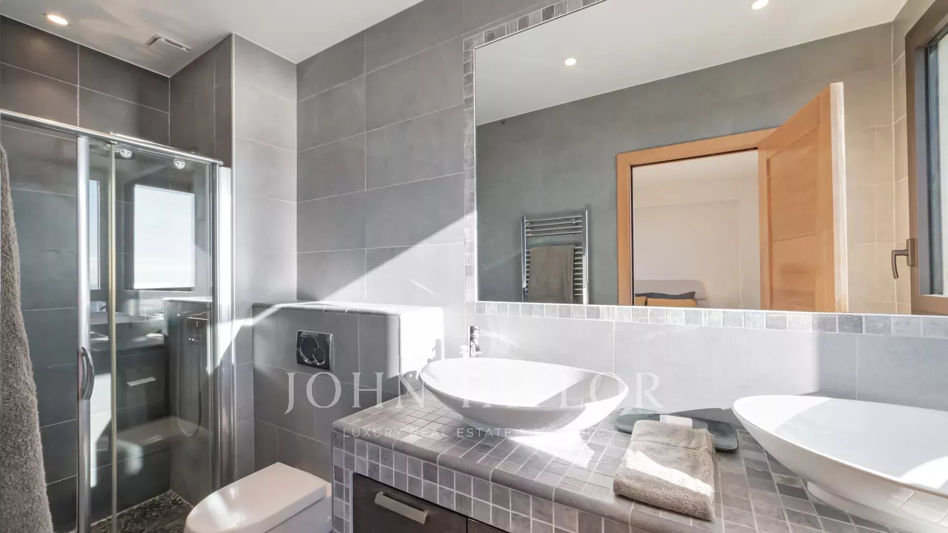 En una de las residencias más solicitadas del barrio de Californie, con fabulosas vistas al mar sobre las islas Lérins, la bahía de Cannes y las montañas del Esterel, este magnífico y raro piso esquinero ofrece 170 m² de superficie habitable más una terraza de 33 m².