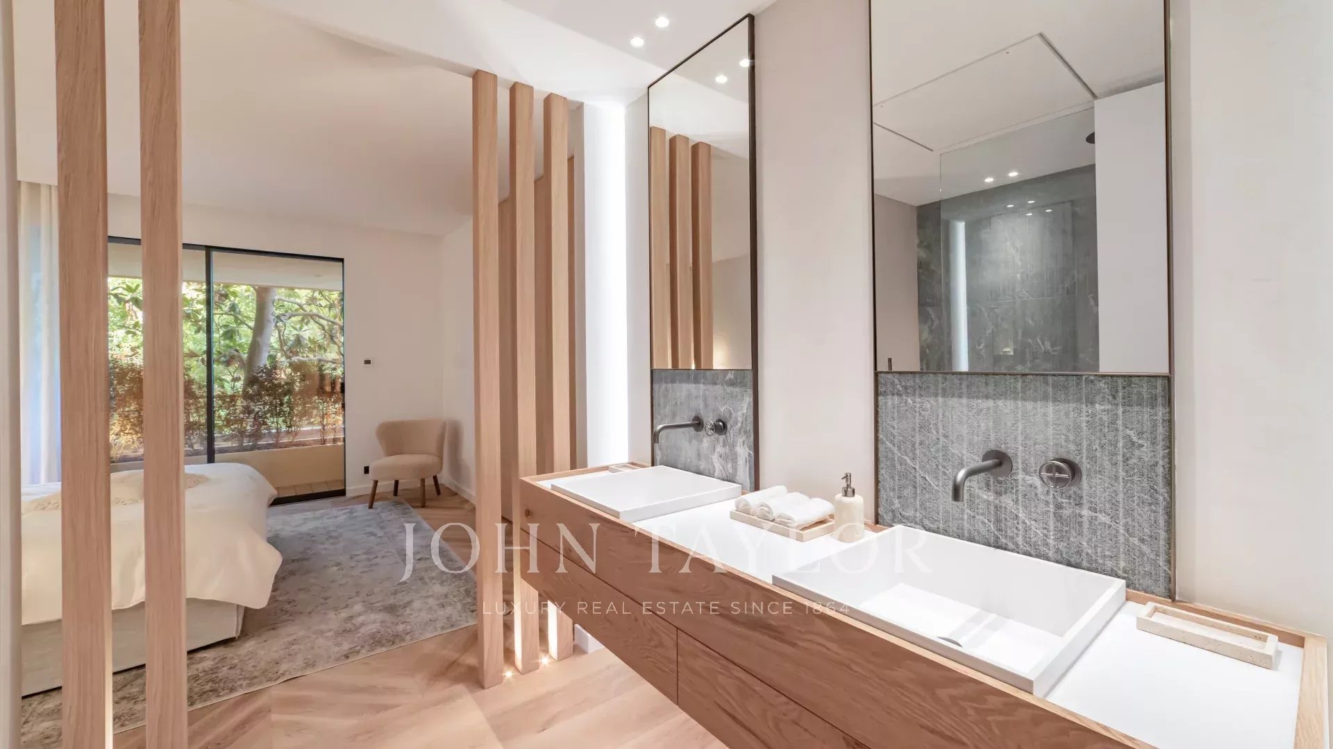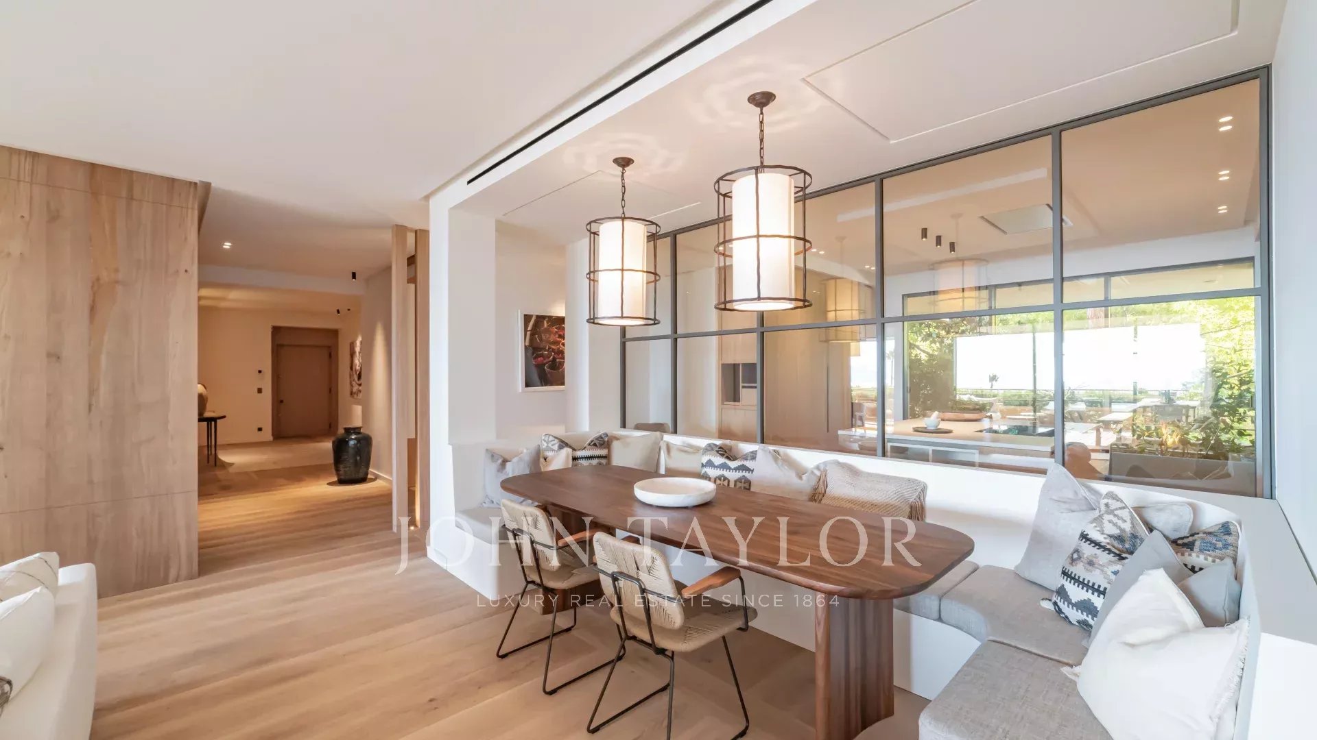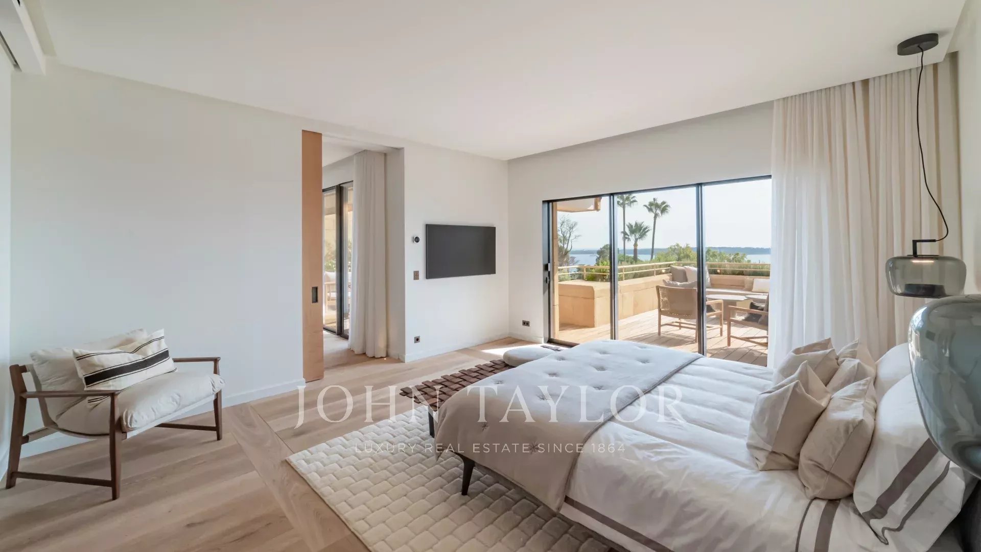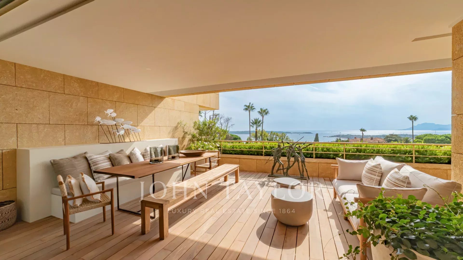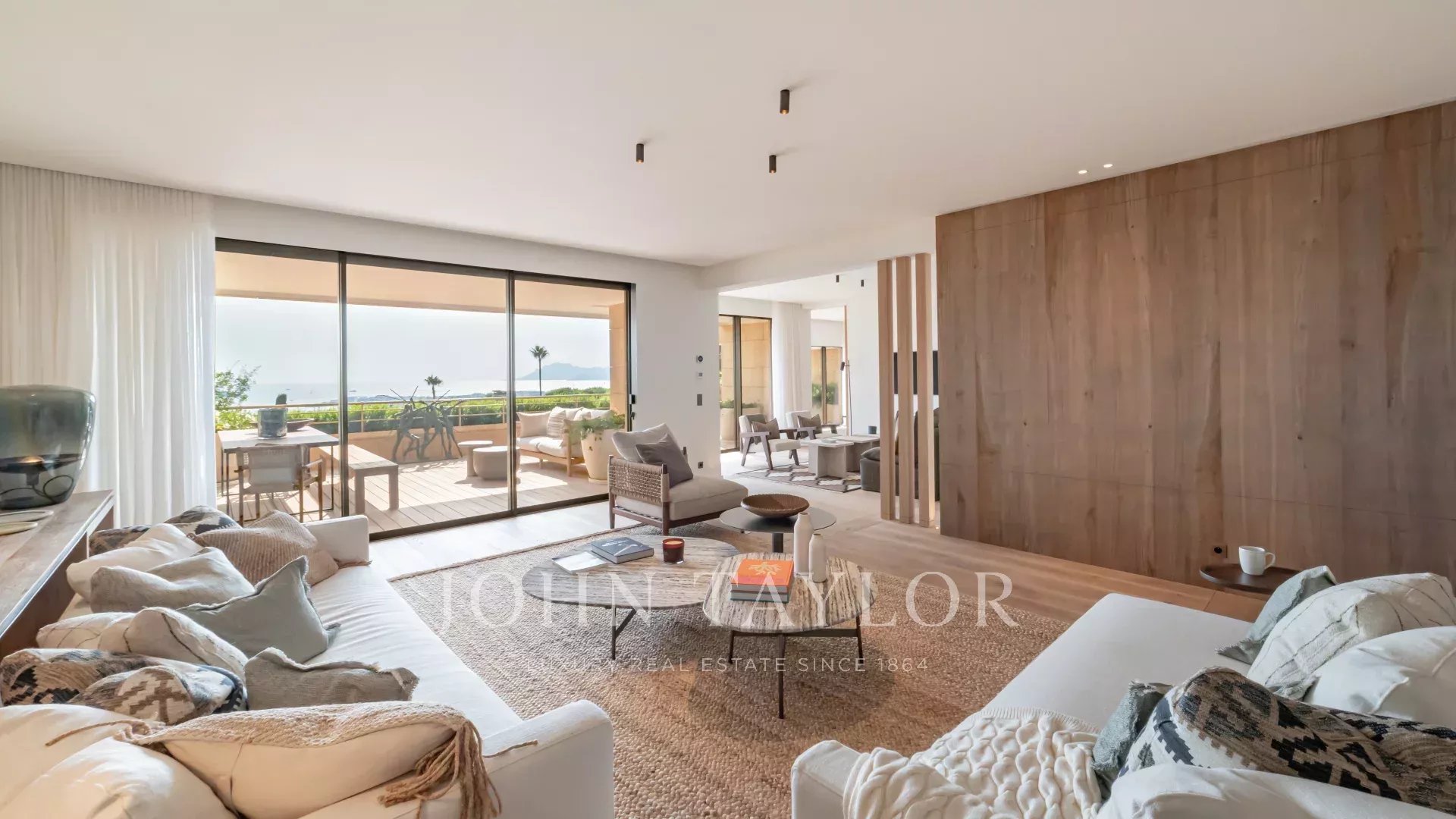 Esta propiedad excepcional cuenta con una magnífica terraza de 60 m² con vistas ininterrumpidas al Mediterráneo y a las islas Lérins. Totalmente renovado por un renombrado arquitecto local con materiales de la mejor calidad, el piso presenta un estilo contemporáneo refinado y lujoso.
