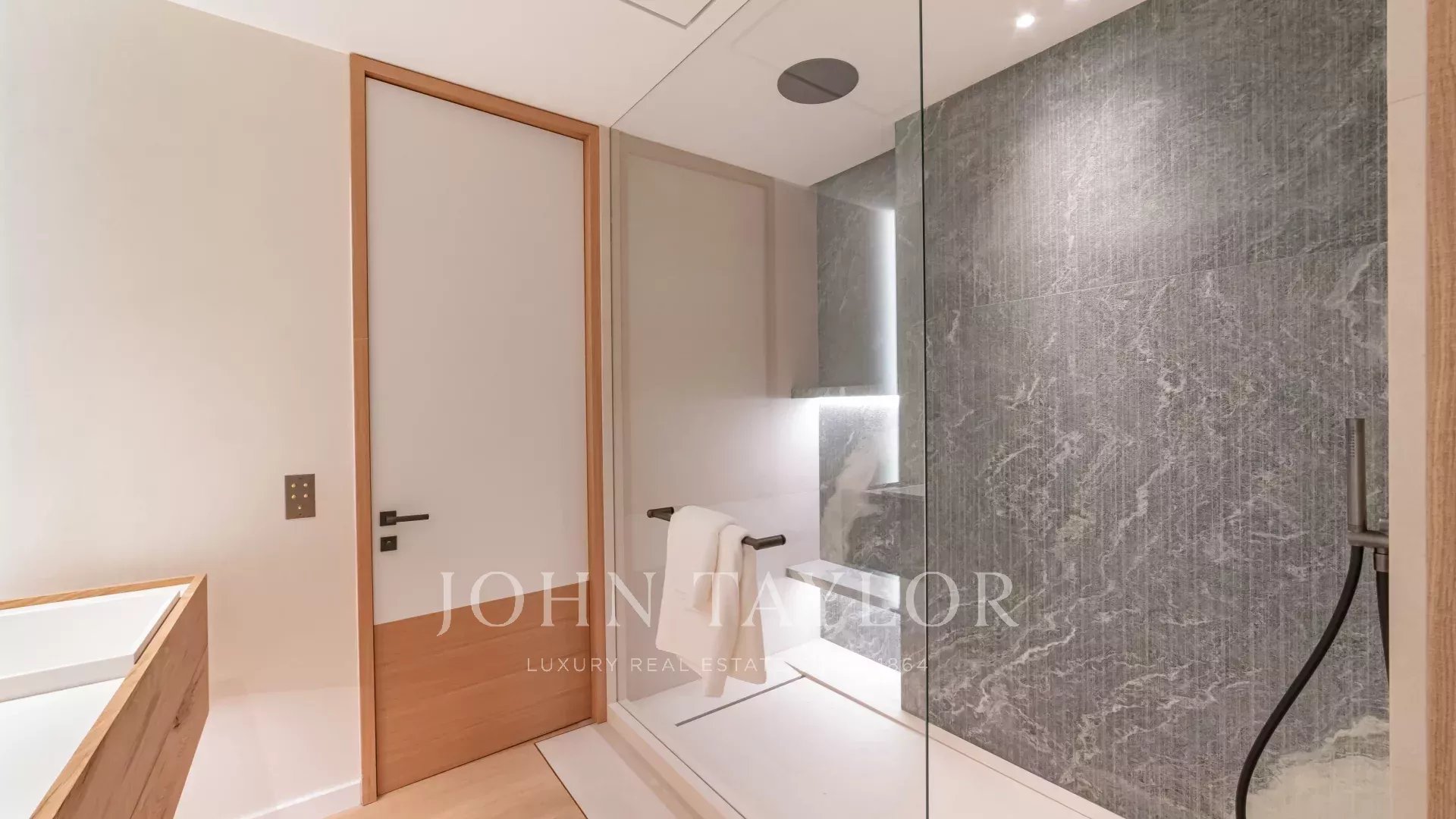 Luminoso y discreto, garantiza una total intimidad. Consta de un hall de entrada, un amplio salón-comedor abierto a la terraza, una cocina ultramoderna con techo de cristal, una sala de TV y una suite principal con vestidor, cuarto de baño, acceso privado a la terraza y vistas al mar. Otros dos dormitorios en suite tienen sus propios cuartos de ducha y balcones privados. Un práctico lavadero completa el espacio.