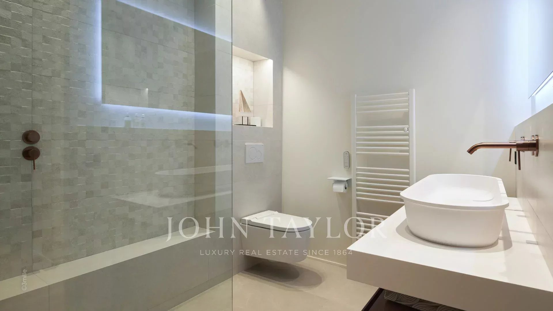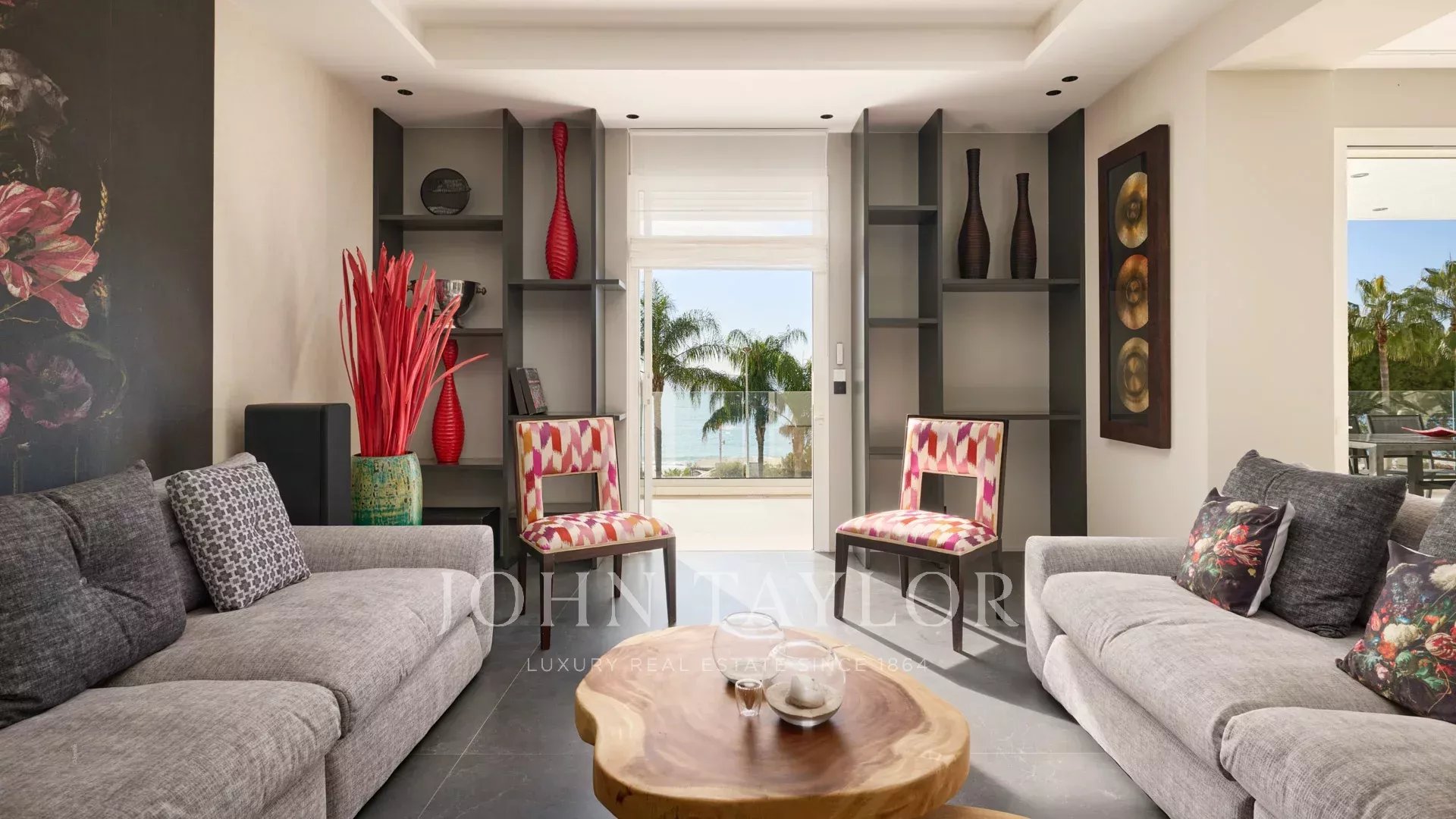 En el centro de la Croisette, cerca del Carlton, de las playas y de las tiendas de lujo, este bonito piso de 196 m² se abre a una terraza de 42 m² con vistas panorámicas al mar.