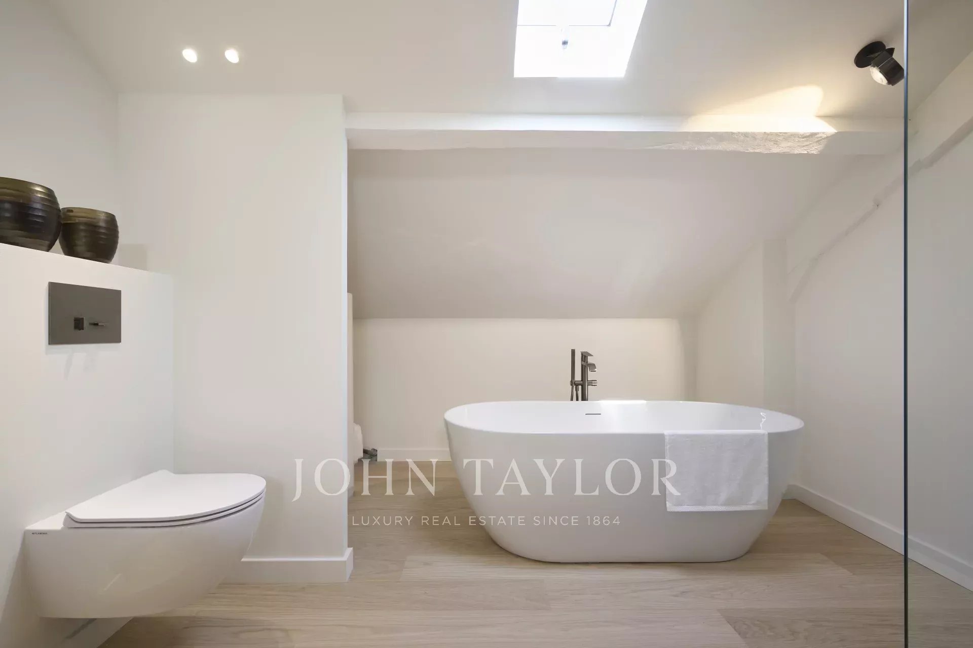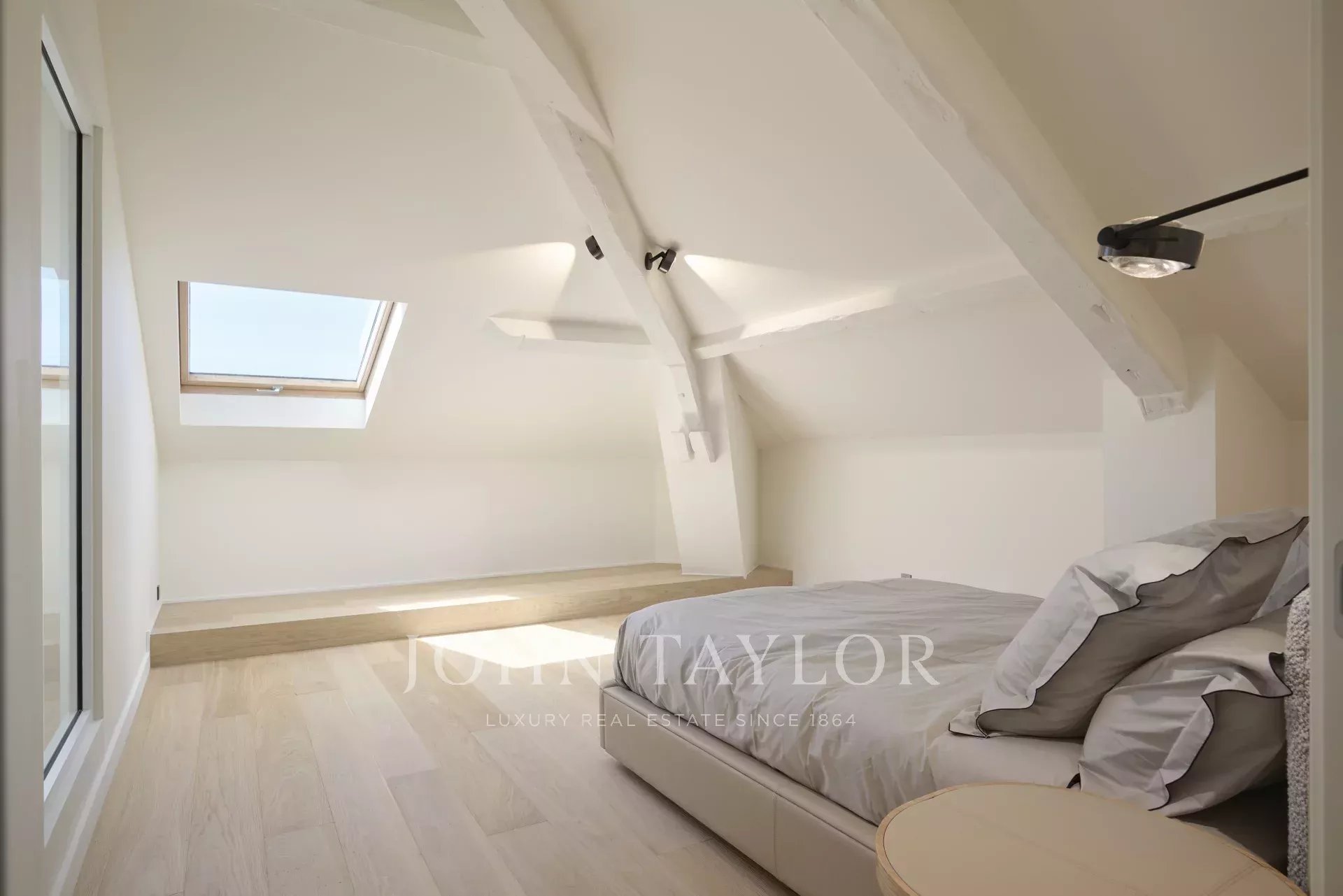 Situado en el último piso de un antiguo hotel que data de 1858, este maravilloso piso de unos 200 m² de espacio habitable ha sido recientemente renovado meticulosamente a un nivel muy alto.