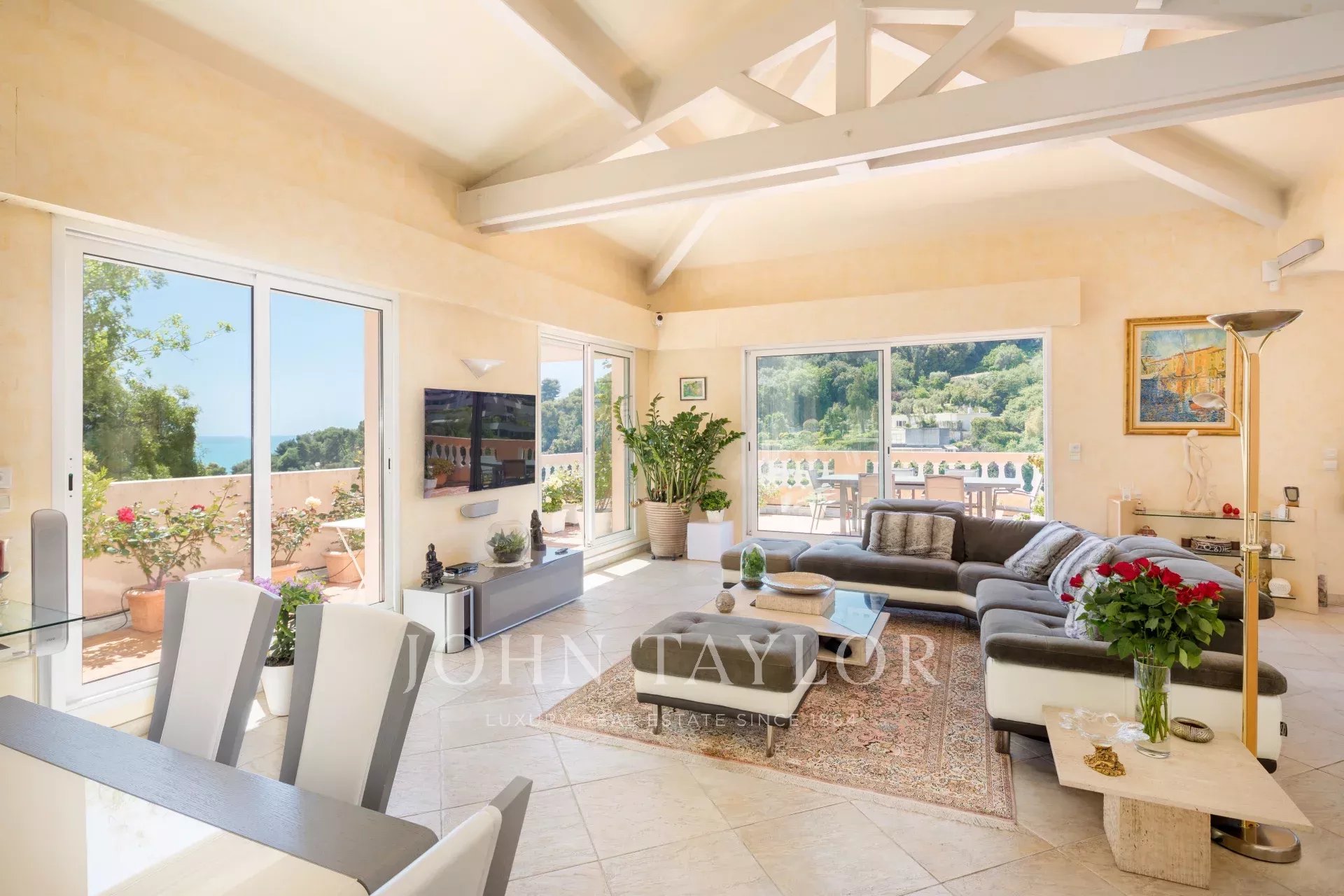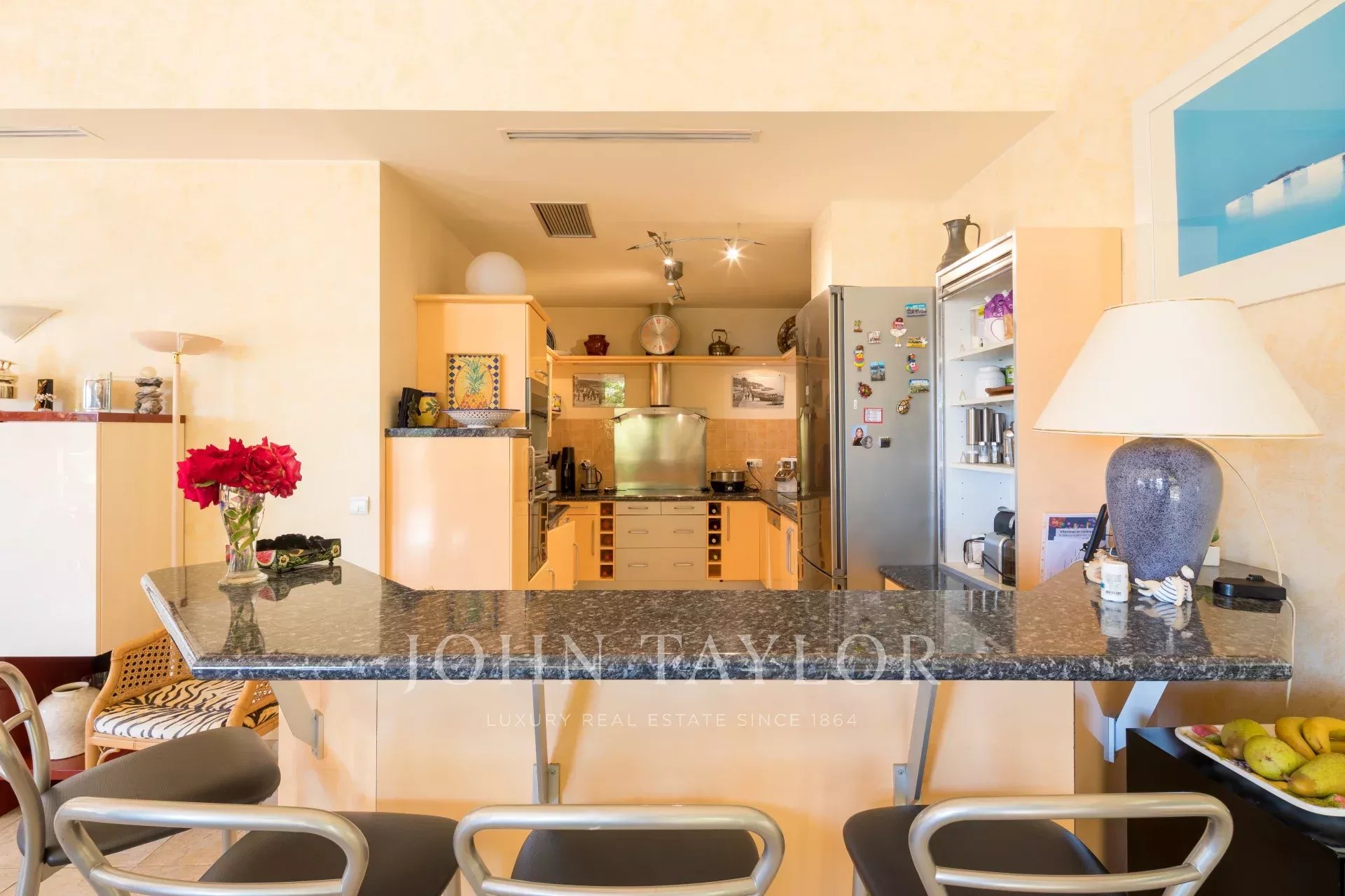 Ocupando todo el último piso de una residencia perfectamente mantenida a escala humana, con exposición sur/oeste y totalmente climatizada, este magnífico apartamento/villa en azotea de 174,13 m2 Carrez, servido directamente por un ascensor, ofrece una amplia terraza circular con una hermosa vista panorámica del mar, parte de la ciudad y las colinas.