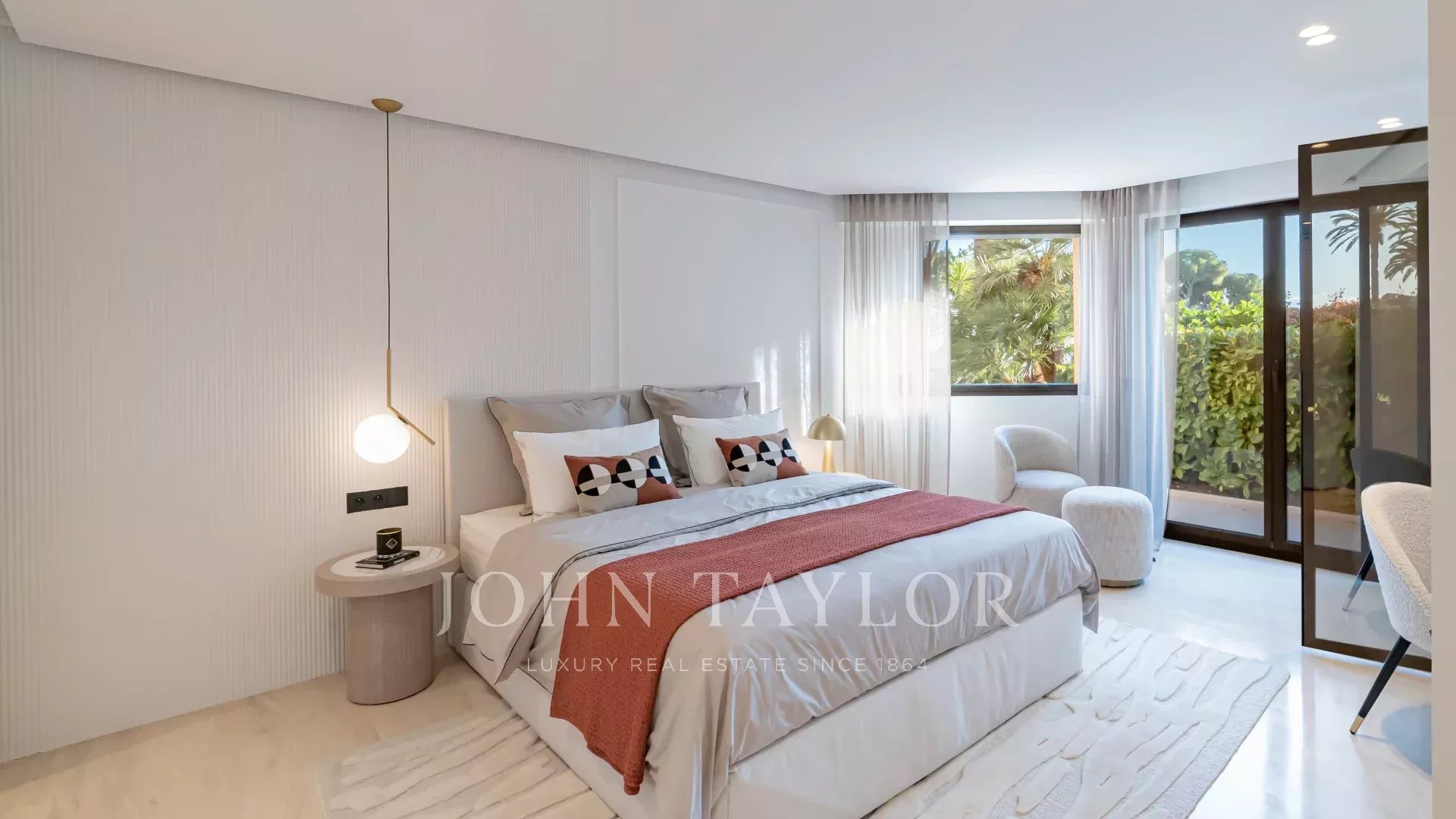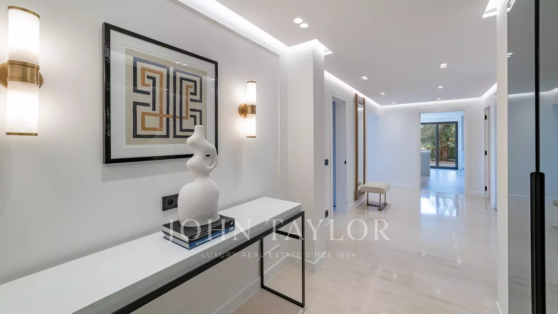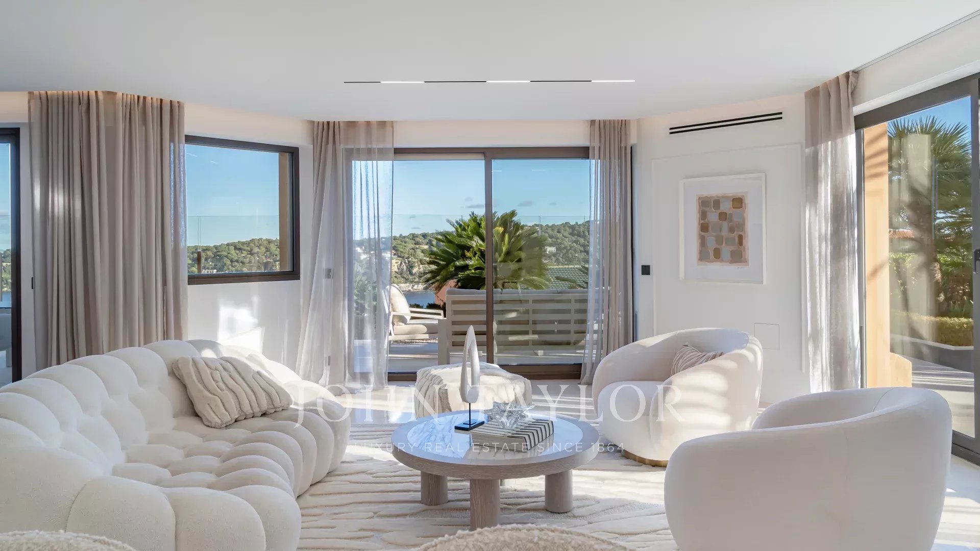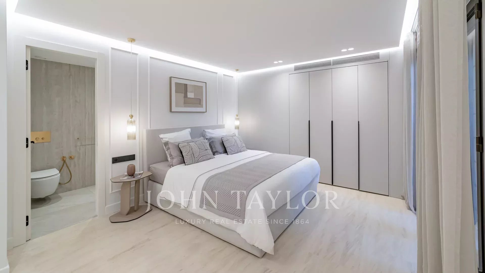 Una de las características más destacadas de este apartamento es su aire acondicionado, esencial para disfrutar del clima cálido de la Riviera Francesa sin renunciar al confort. La sala principal está llena de luz natural gracias a sus grandes ventanales que se abren a un balcón espacioso, perfecto para cenas al aire libre o simplemente relajarse mientras se contempla la belleza del entorno.