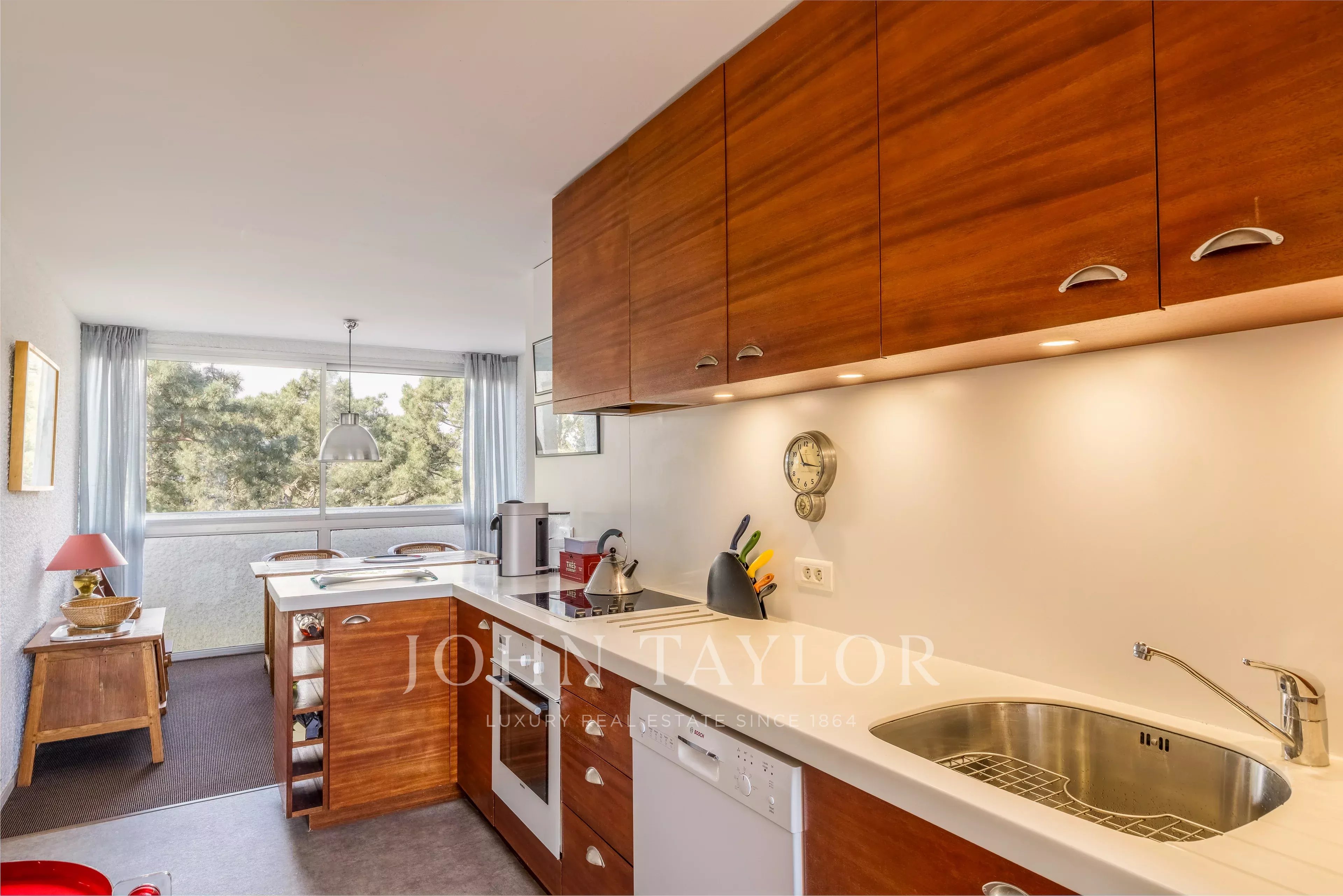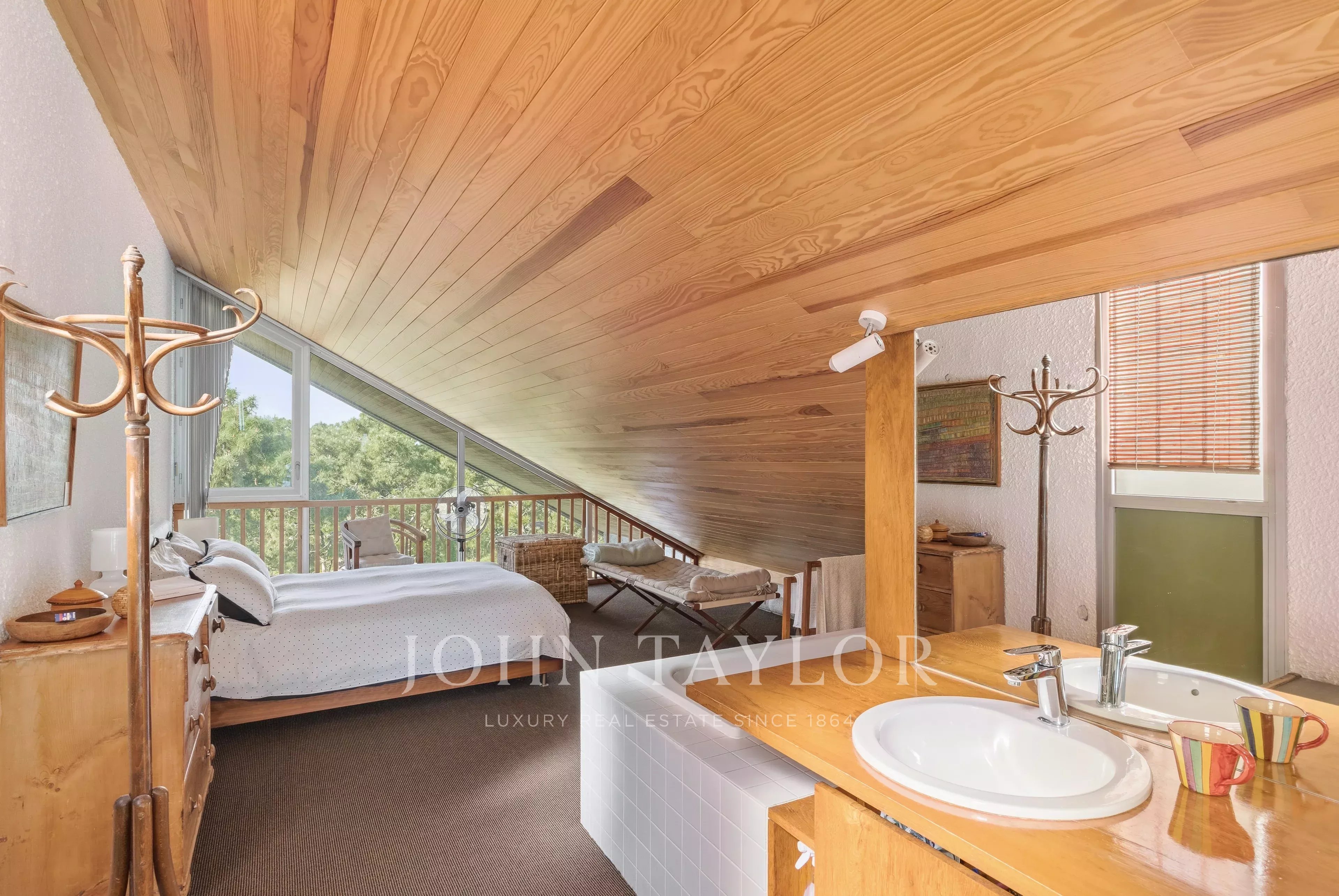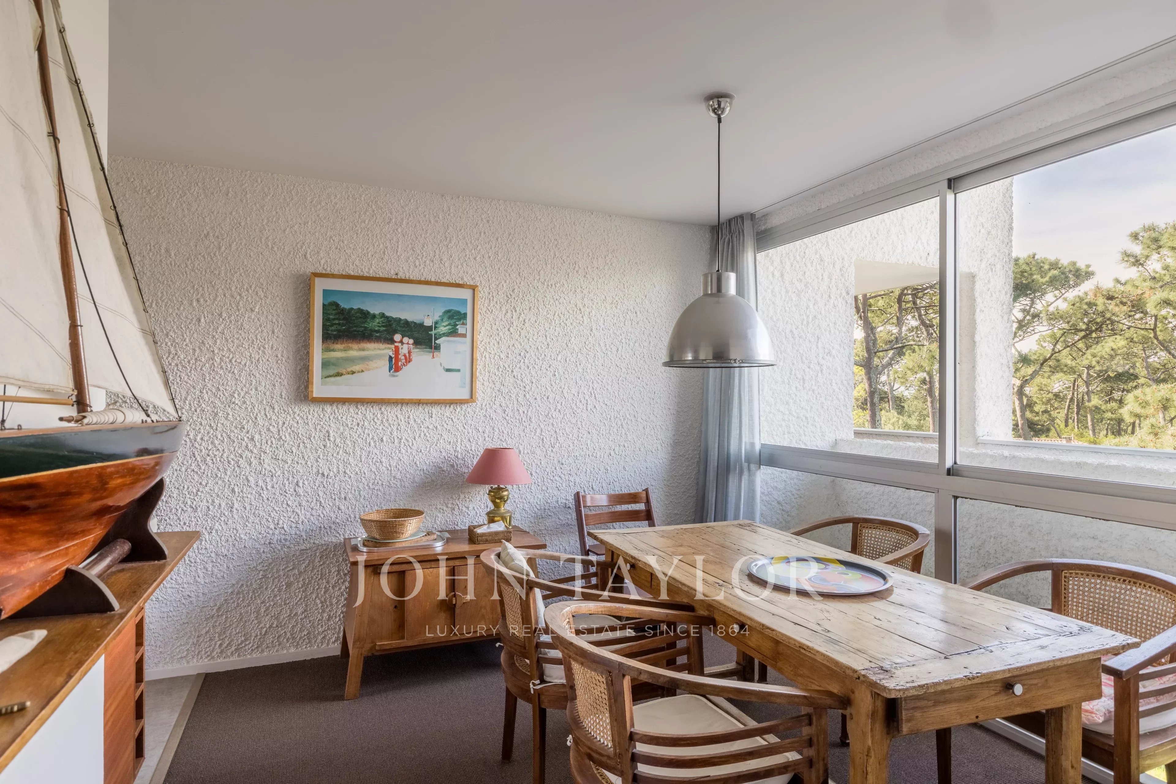 Este apartamento excepcional constituye un testimonio raro y valioso de la arquitectura balnearia de 1975. Escondido en una residencia de gran nivel con conserje, piscina y canchas de tenis, este lugar está dirigido a los estetas que buscan una autenticidad que ha quedado imposible de encontrar en la península de Cap Ferret.