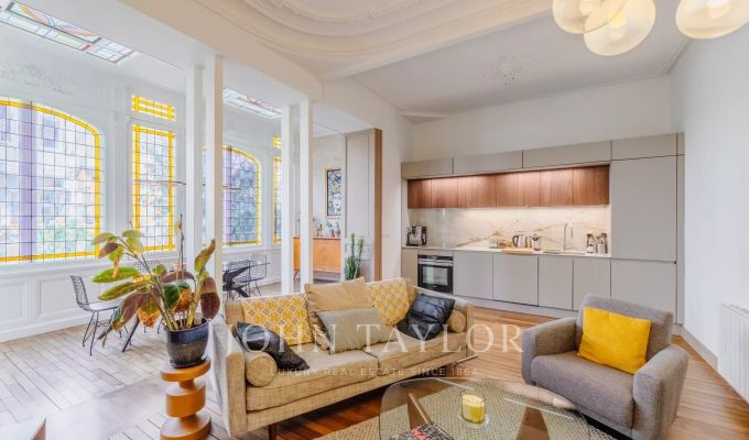 En la primera planta de un edificio de piedra del siglo XIX, este lujoso piso de 150 m2 ...