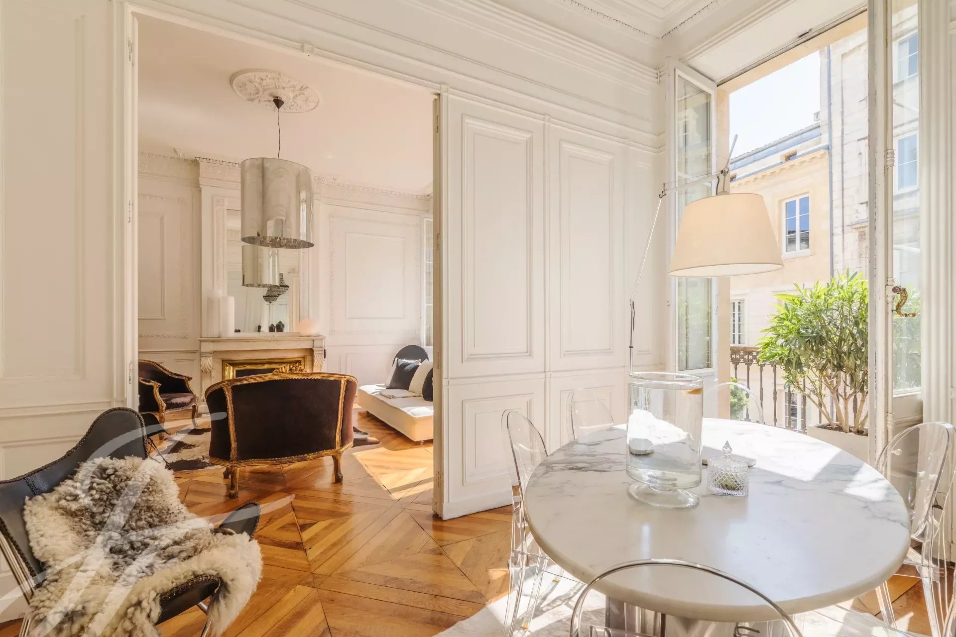 Situado en el corazón de la emblemática Place du Palais, este excepcional piso se encuentra en un característico edificio de piedra. Sus elementos de época, como las elegantes molduras, los magníficos suelos de parqué de madera maciza y las chimeneas, se han conservado cuidadosamente, lo que le confiere un encanto y una funcionalidad inigualables.