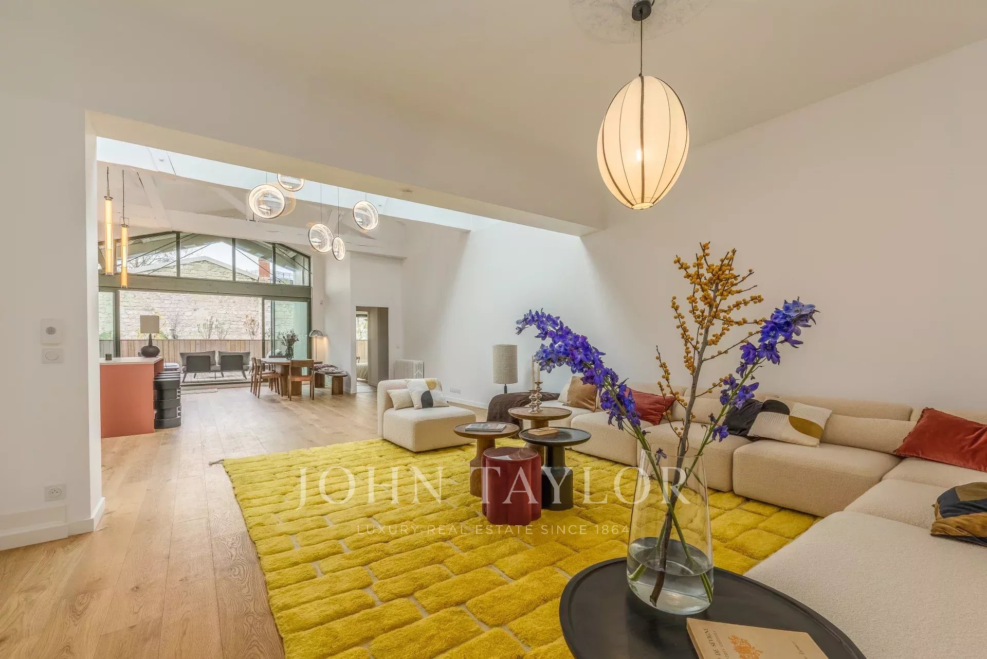 Con una superficie de casi 180 m², este loft cuenta con un alojamiento espacioso, realzado por una renovación excepcional que combina el encanto del viejo mundo con un diseño contemporáneo refinado.