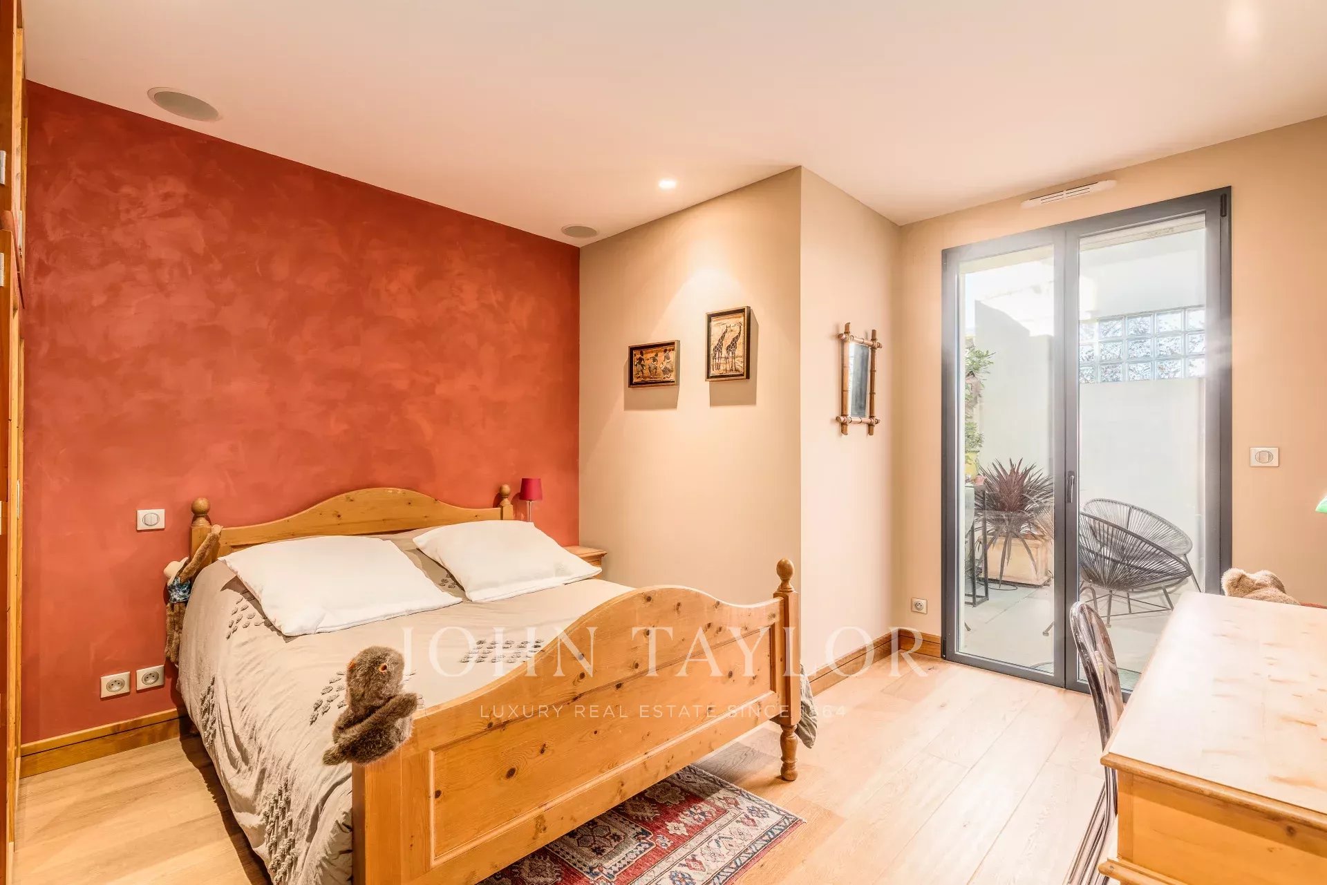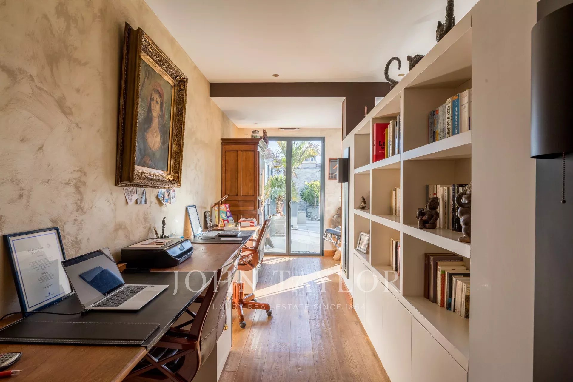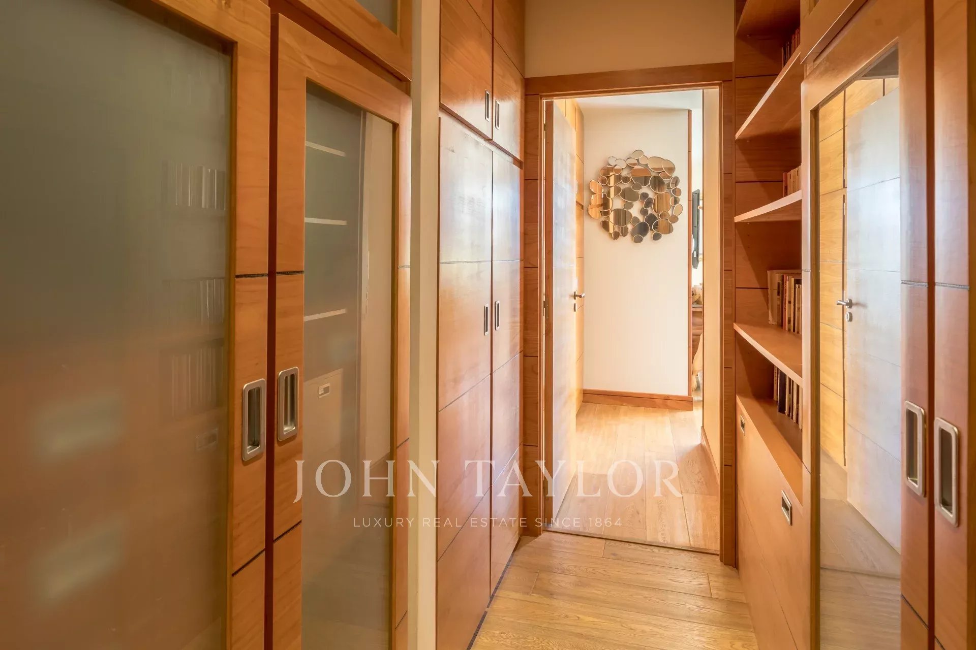 Por la noche, la distribución es excelente, con tres dormitorios, cada uno con su propio vestidor, incluida una gran suite principal con terraza privada y dependencia. También hay un segundo cuarto de baño, un lavadero independiente en toda regla y un sinfín de armarios notablemente optimizados.