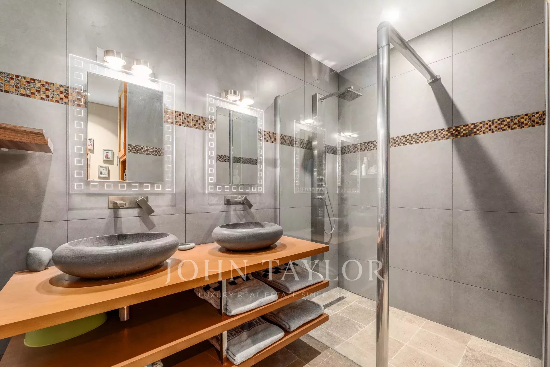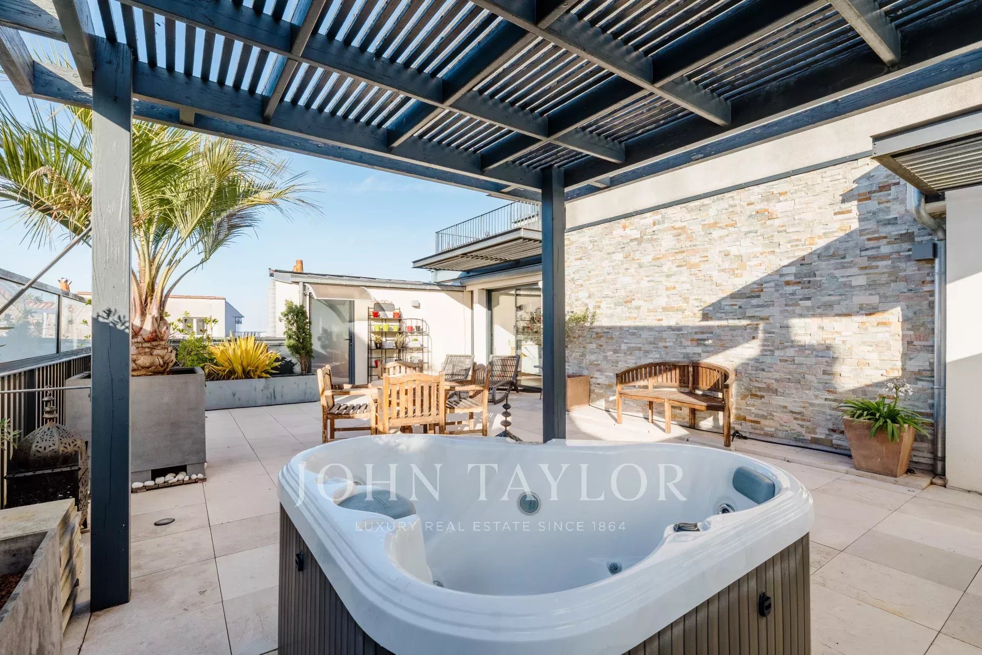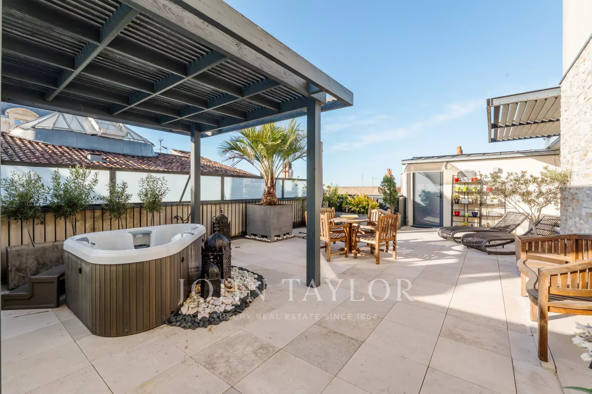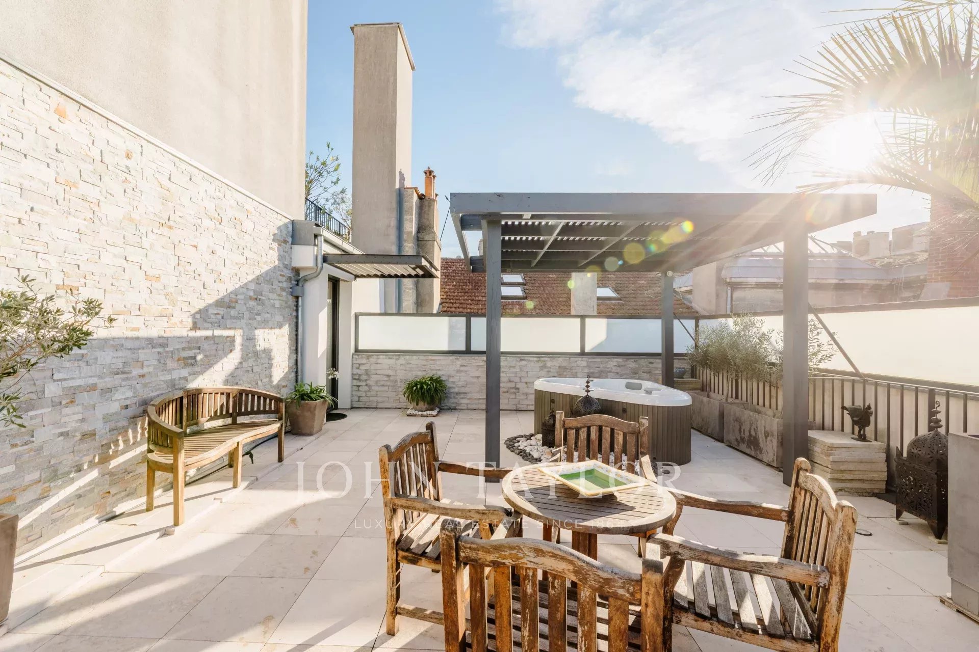 En el Triángulo de Oro, un excepcional piso de 190 m² en la tercera planta de un bonito edificio de piedra cuyas zonas comunes han sido recientemente renovadas con materiales de alta gama. El edificio dispone de un ascensor que conduce directamente al aparcamiento. El piso dispone de dos grandes terrazas privadas en una ubicación muy tranquila y dos plazas de aparcamiento seguras.