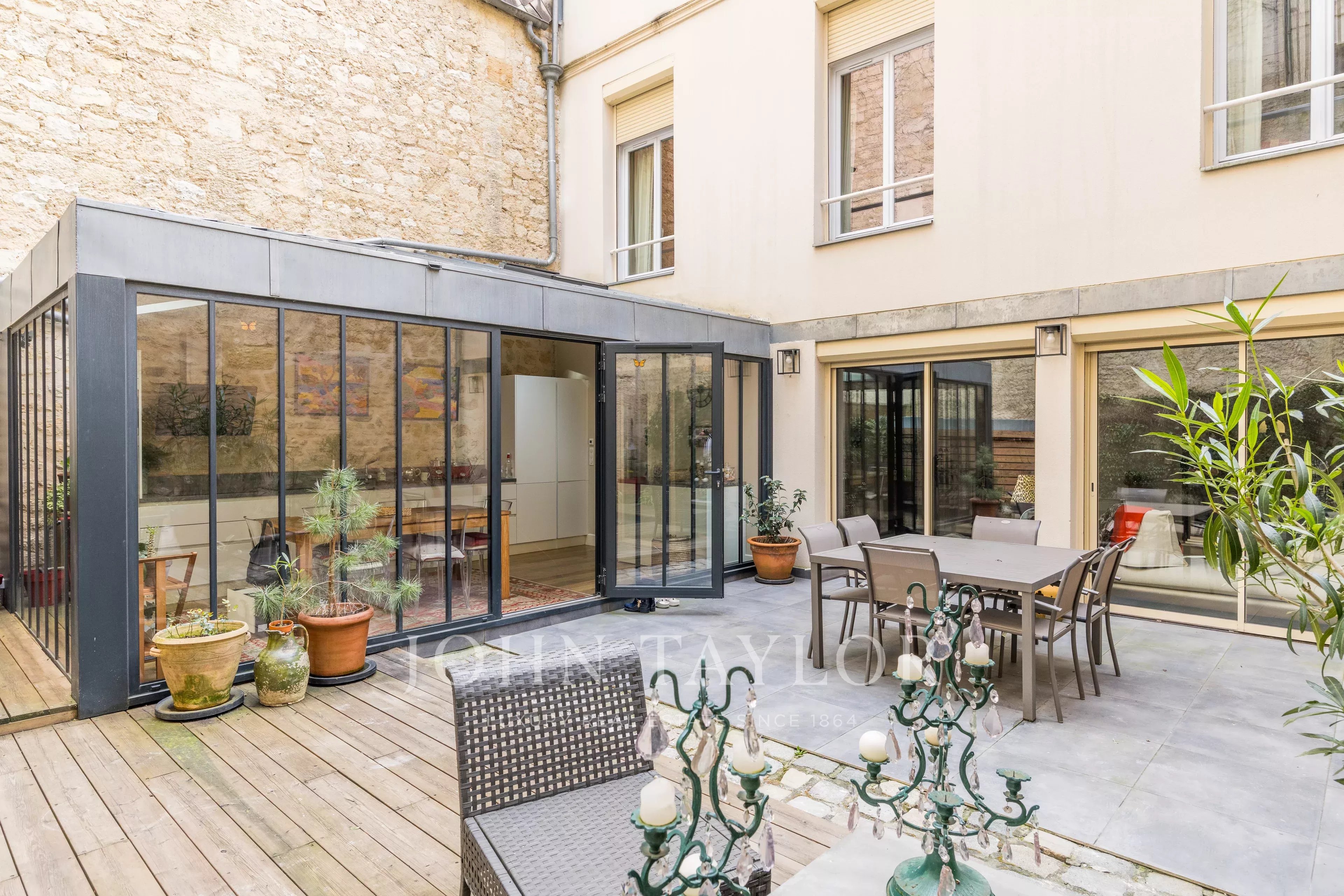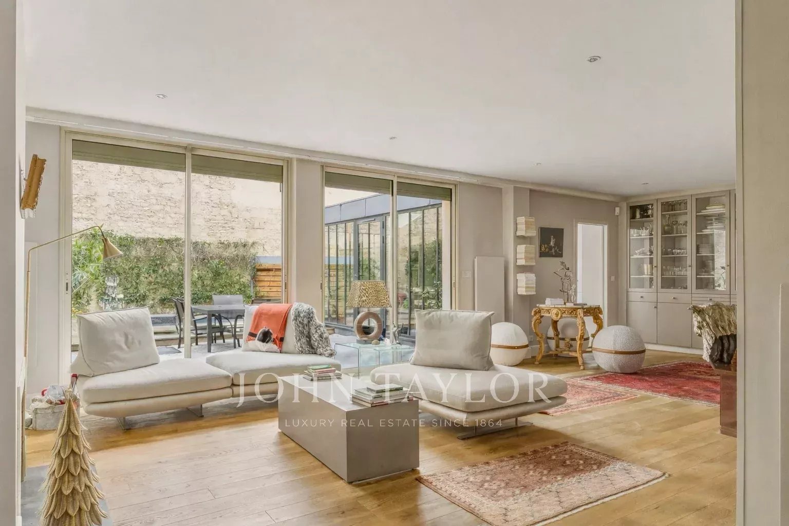 Este hermoso apartamento dúplex de 220 m² se siente como una casa totalmente renovada, con ascensor privado a cada nivel y un gran jardín de 70 m² con piscina. Una dirección discreta y tranquila en un edificio con elegantes zonas comunes perfectamente cuidadas.