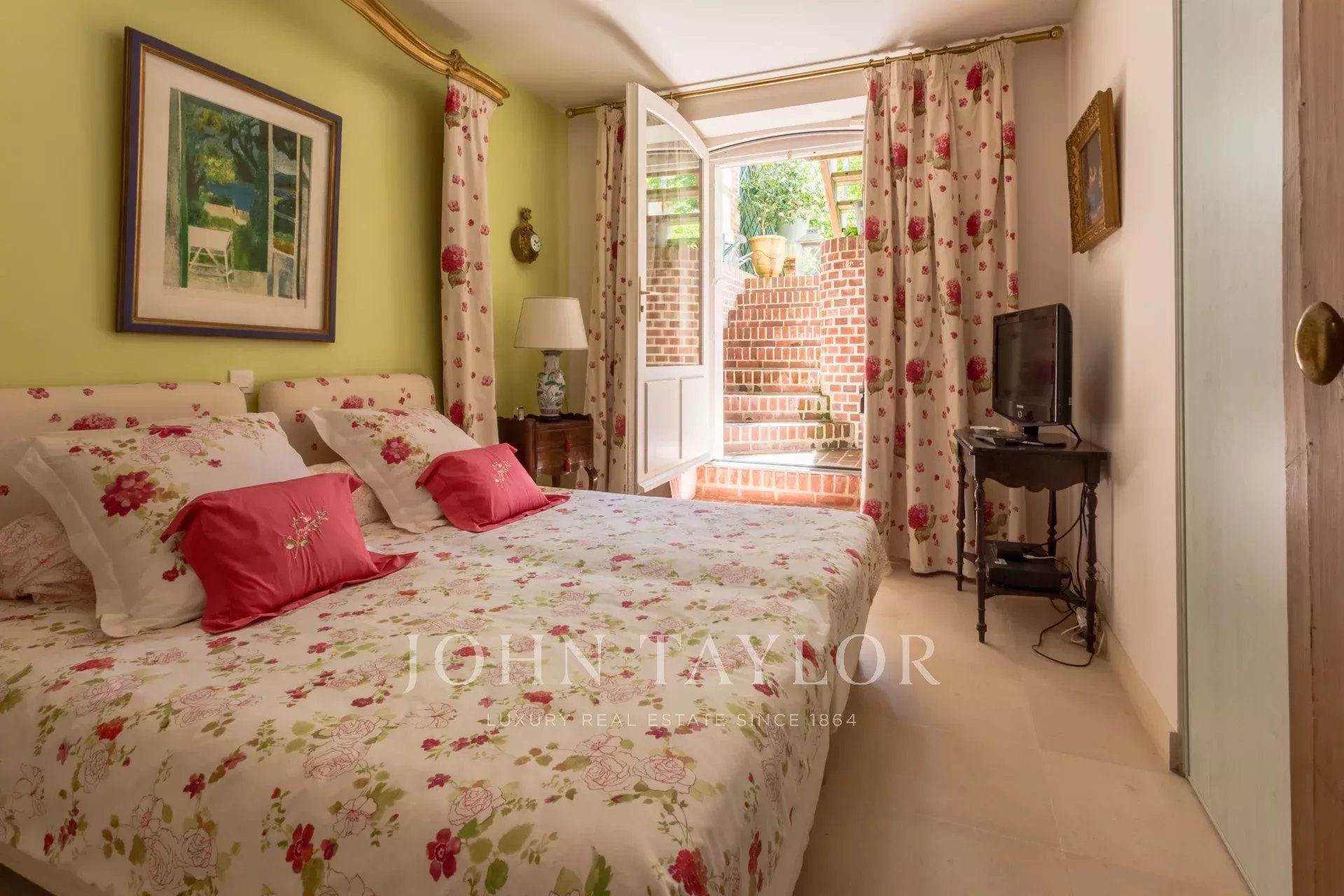 El salón, con su suntuoso mobiliario y refinada decoración, le invita a relajarse y disfrutar. Los grandes ventanales franceses se abren a un jardín de 180 m², cuidado con esmero y que ofrece unas vistas impresionantes de la campiña circundante. La distribución interior está pensada para combinar comodidad y funcionalidad.