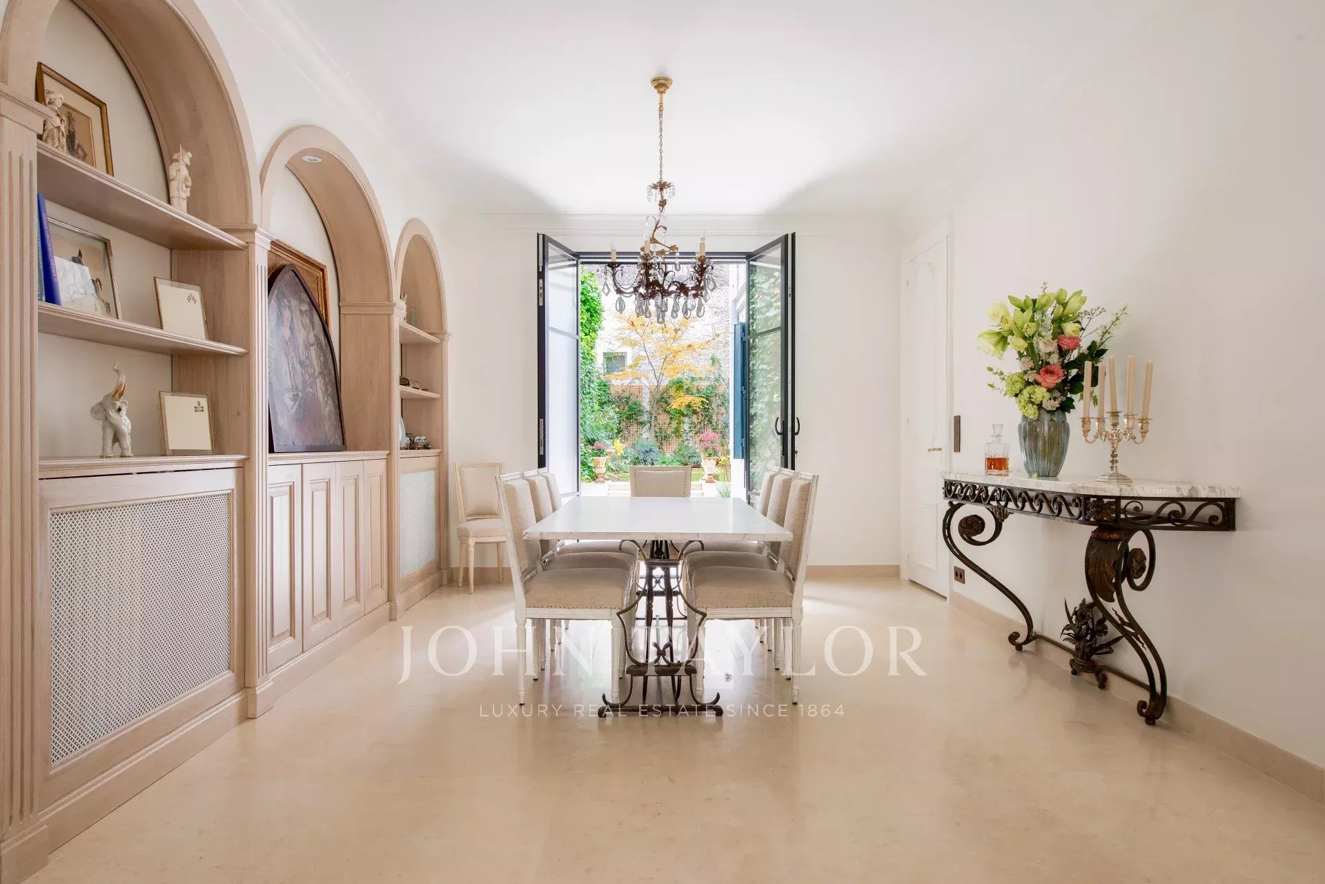 En la parte trasera, el jardín perfectamente expuesto es un refugio en el corazón de París, ideal para pasar tiempo con la familia y los amigos.