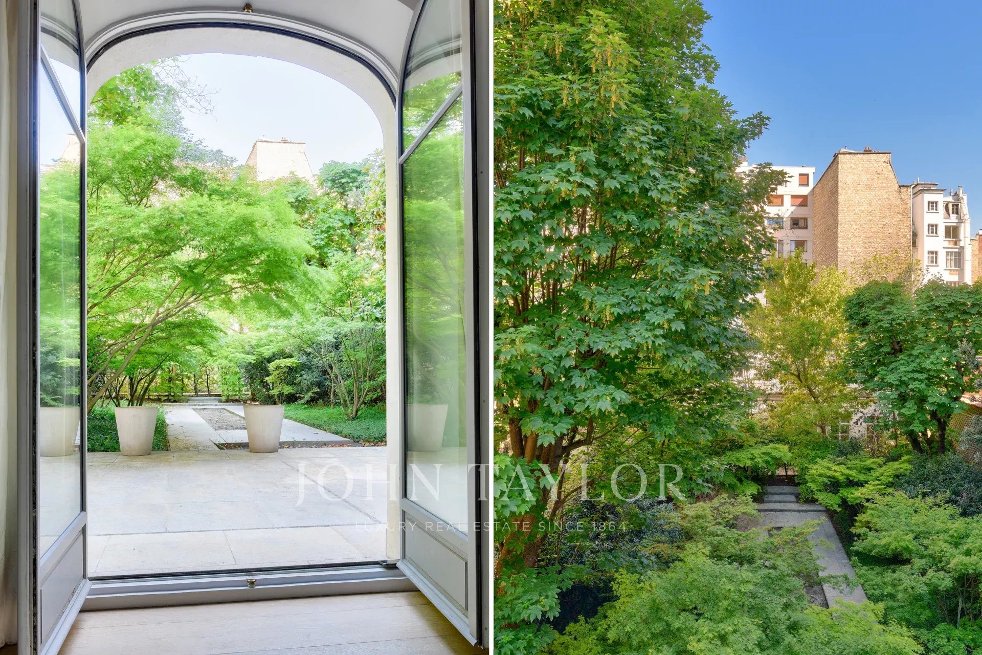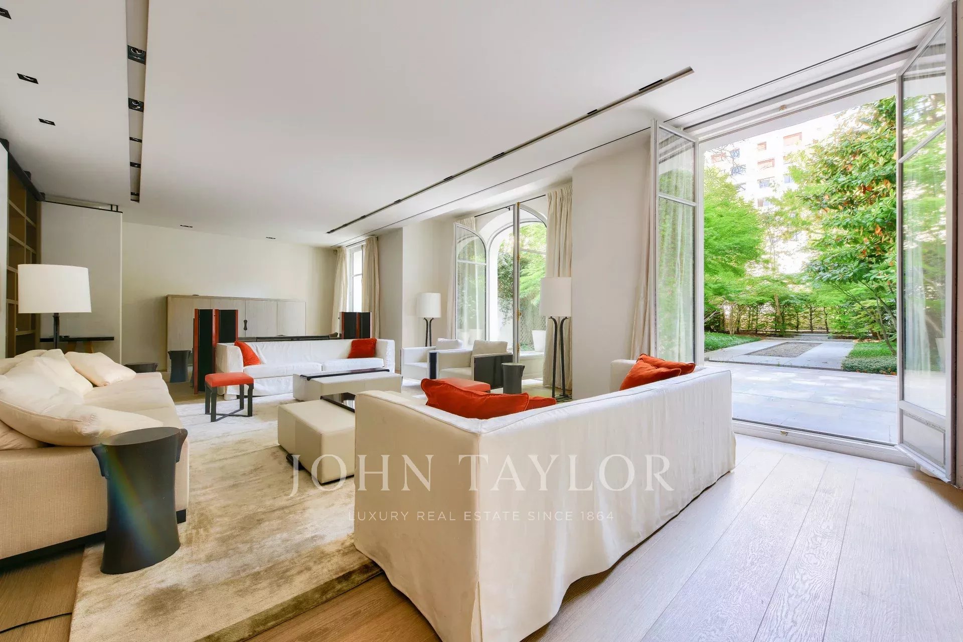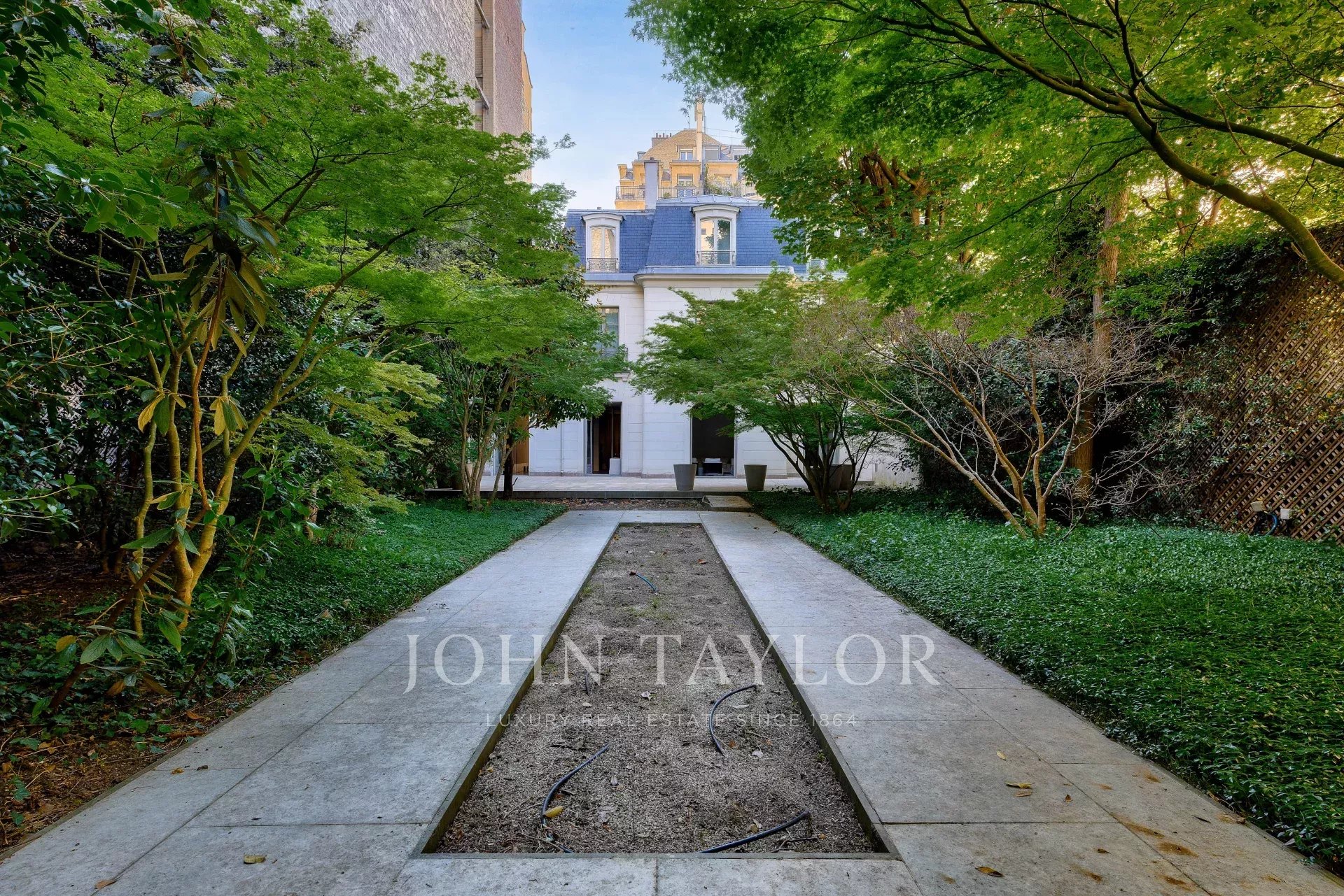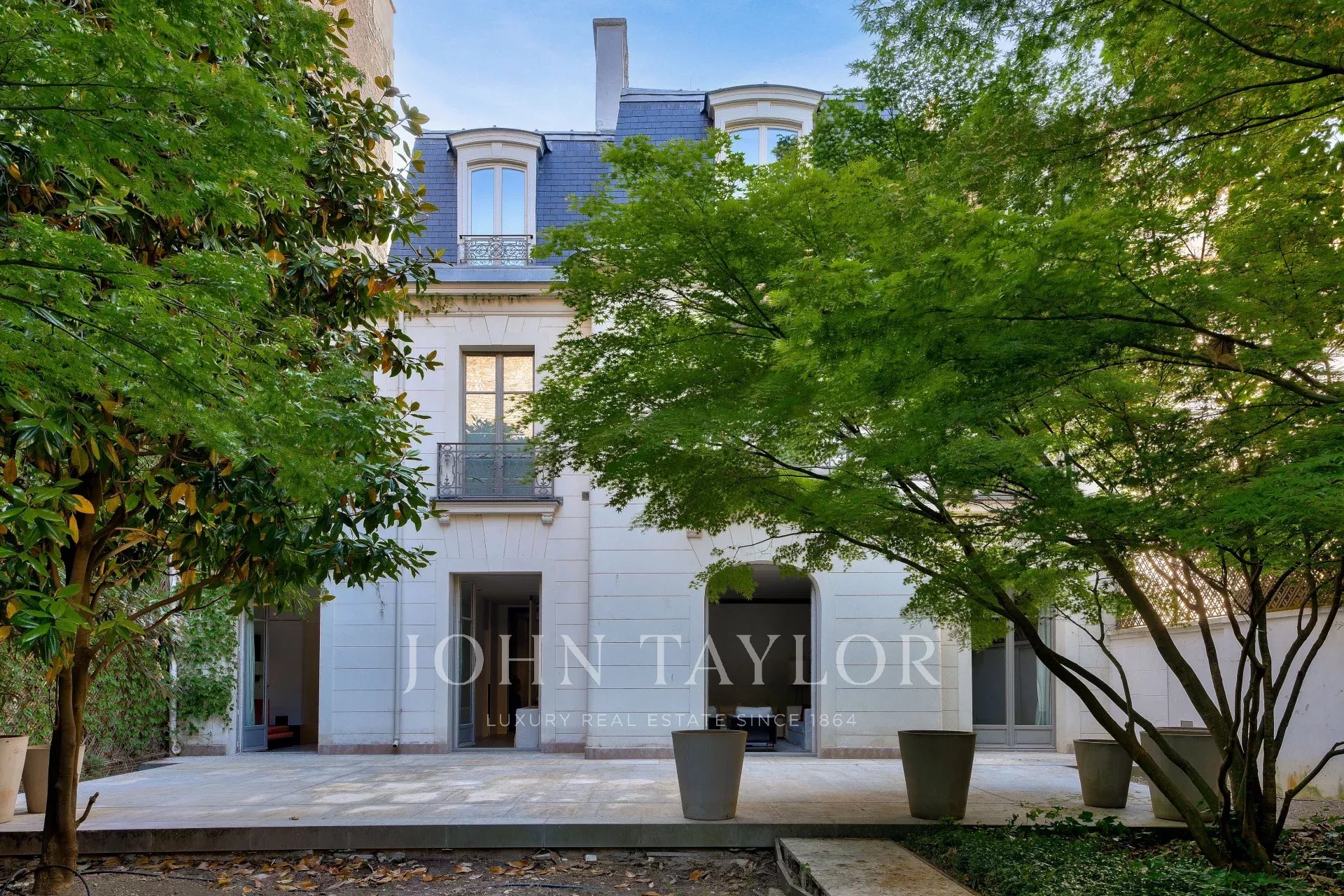 París 16, entre el barrio de Saint James y la rue de Longchamp, John Taylor presenta una casa palacio privada de finales del siglo XIX en piedra labrada con tejado de zinc, construida sobre un sótano, una planta baja, un primer piso y un ático.