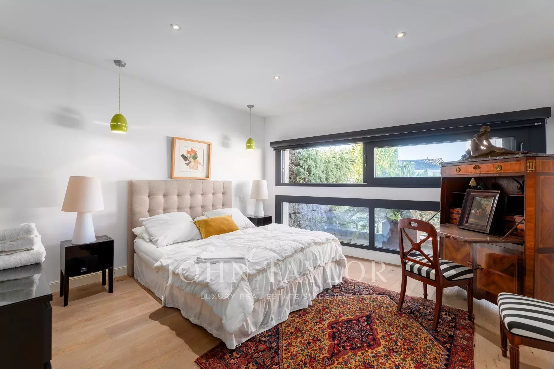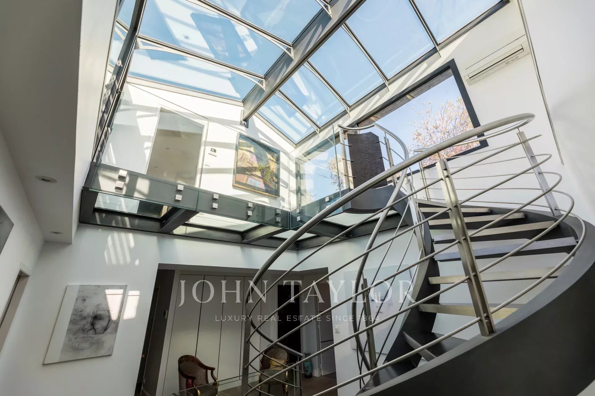 En el exterior, la propiedad ofrece un oasis de tranquilidad con una espectacular piscina rodeada de vegetación exuberante. El área de fitness y la sauna entregan oportunidades para el relax y el ejercicio sin salir de casa. Para mayor comodidad, la casa dispone de un ascensor, facilitando el acceso a todas las plantas de esta magnífica residencia.