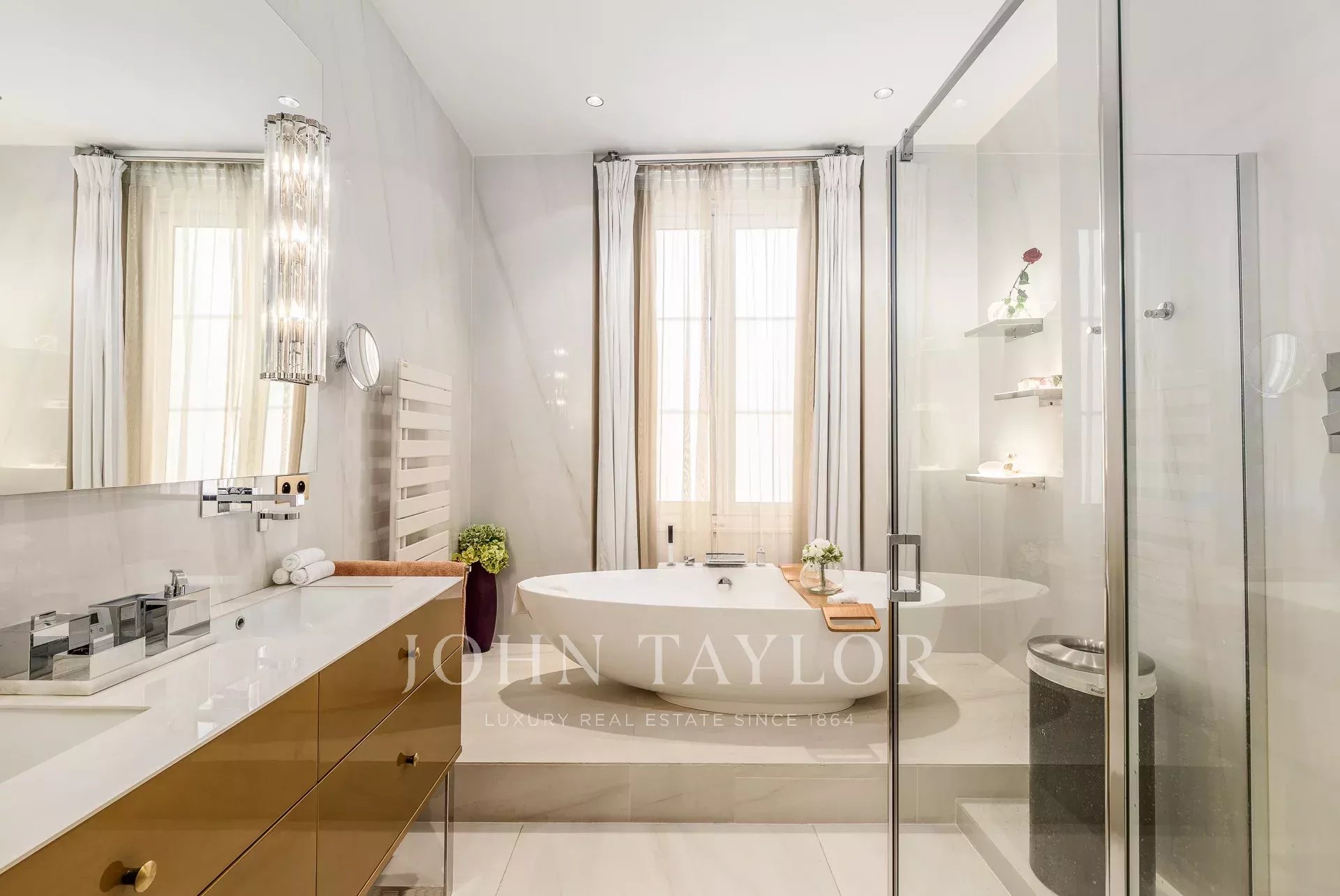 En la planta superior, cuatro dormitorios, incluida una suite principal con vistas al monumento de los Girondinos, completan esta propiedad excepcional.