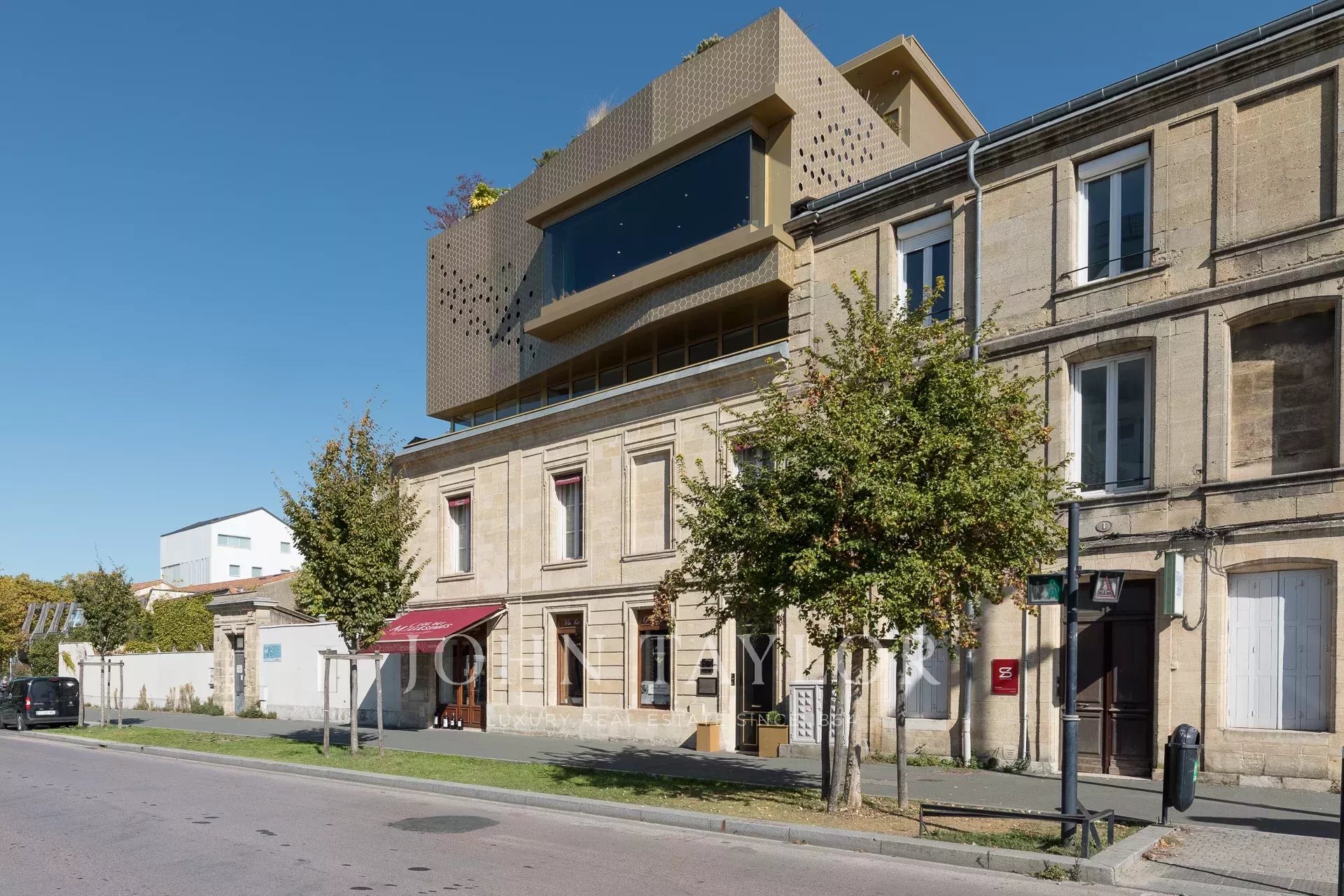 La arquitectura combina a la perfección el encanto de la piedra bordelesa con una elevación contemporánea, lo que la convierte en un hito emblemático del barrio.