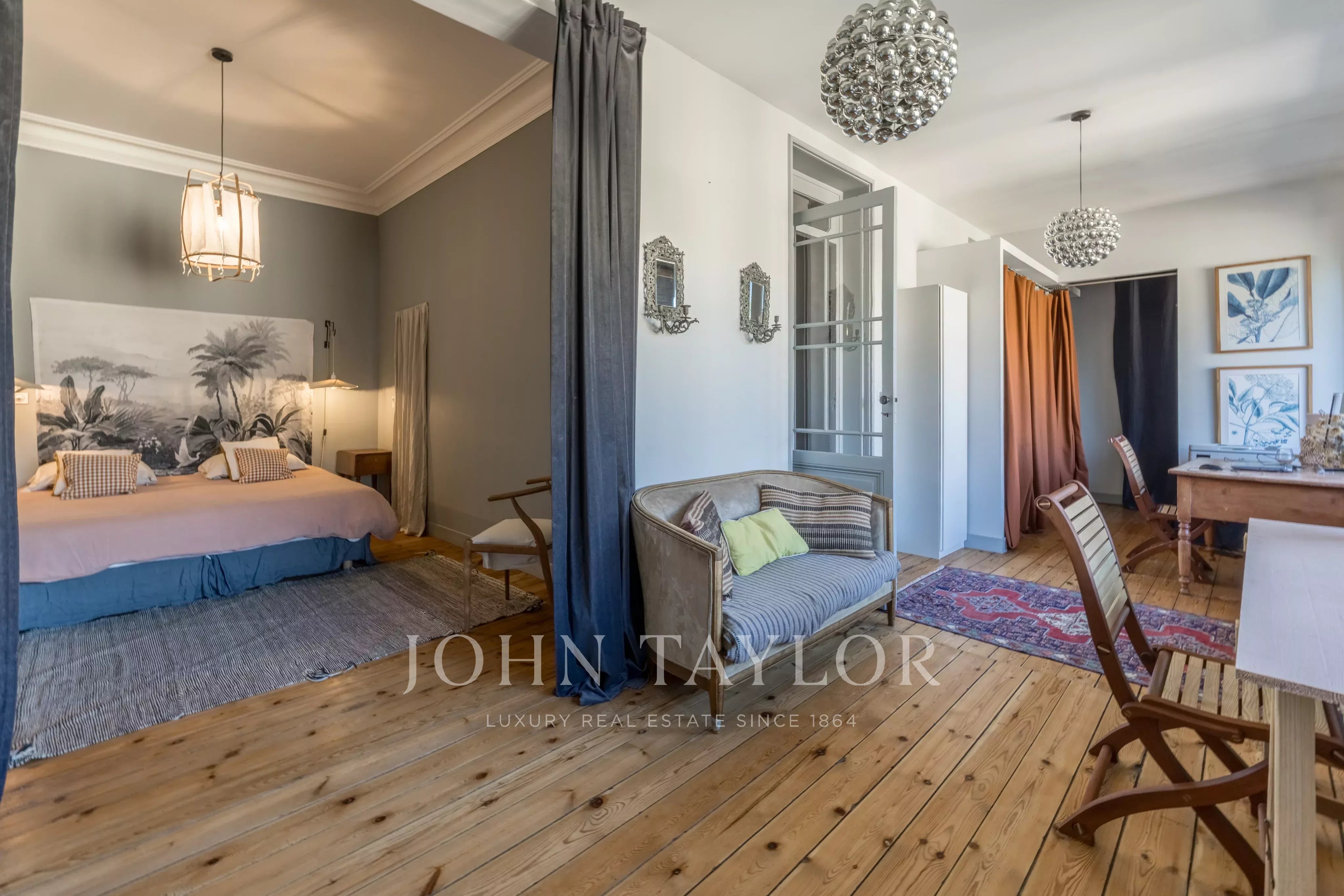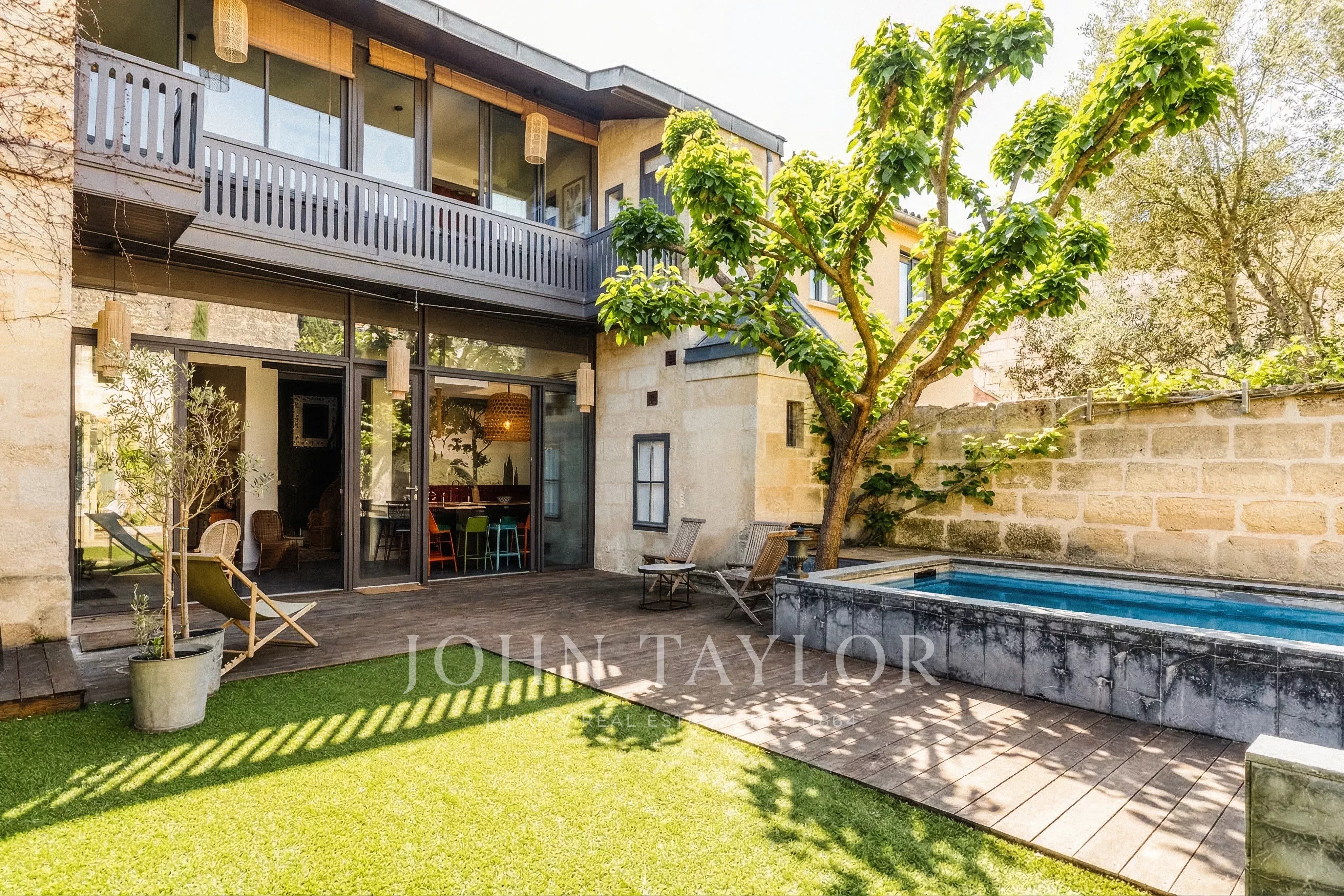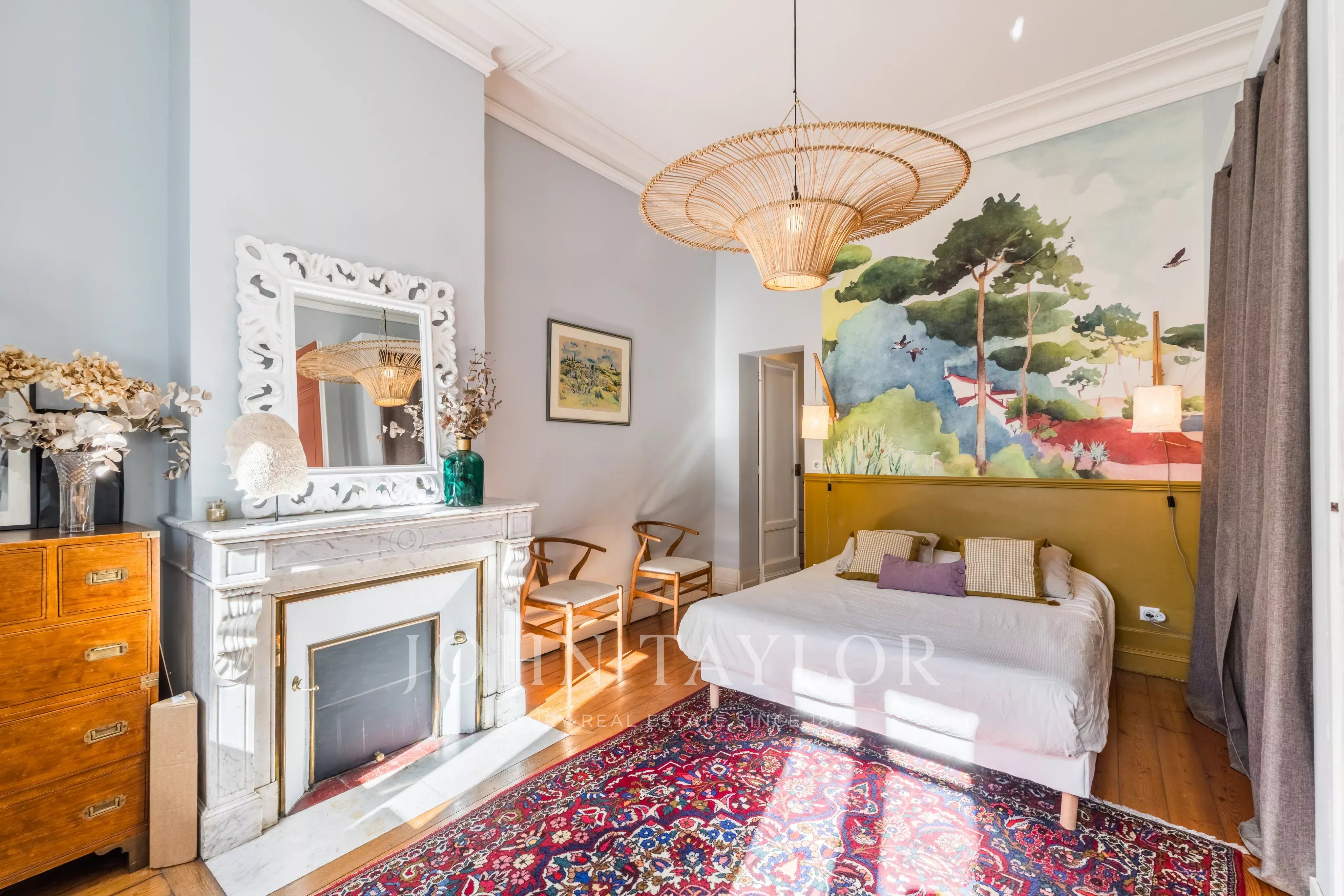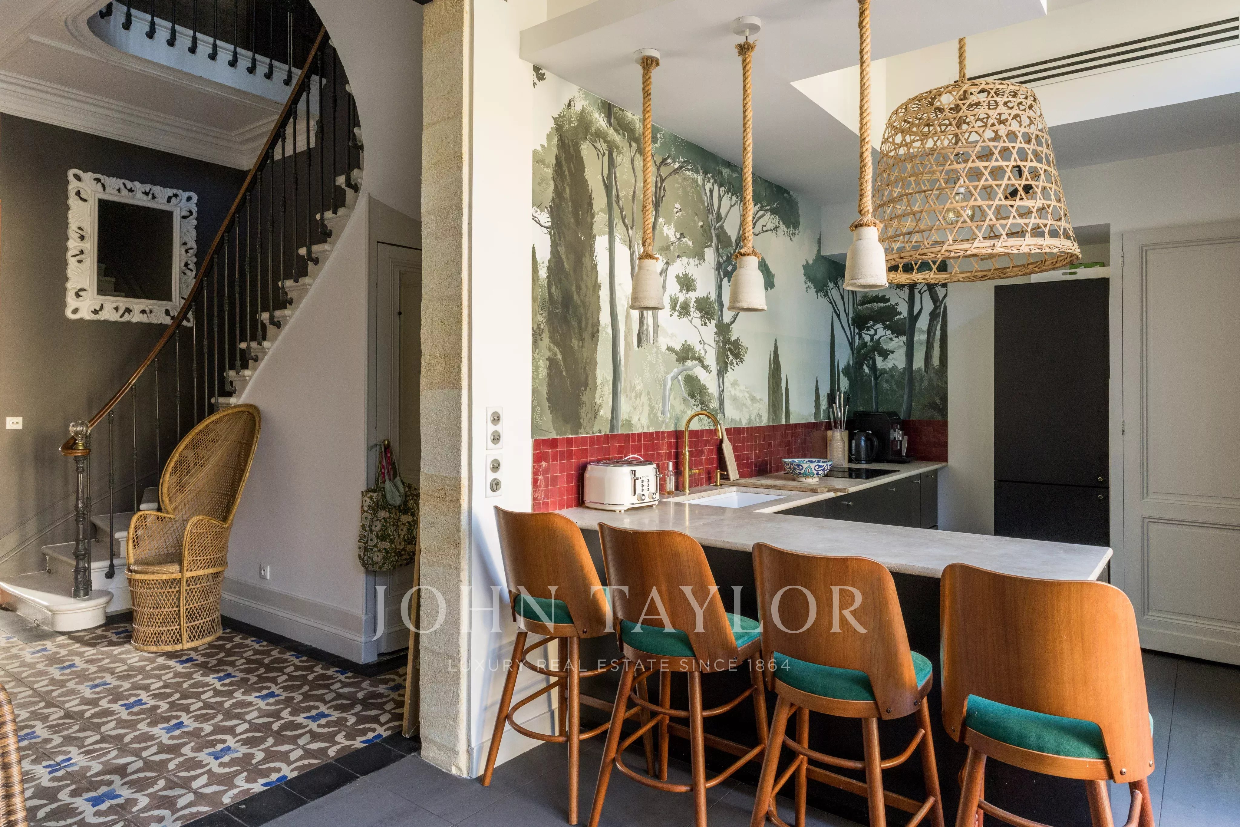 Situada en el codiciado barrio de Saint-Genès, esta elegante mansión burguesa de Burdeos, de unos 250 m², seduce por su encanto y su jardín de 150 m² con piscina.