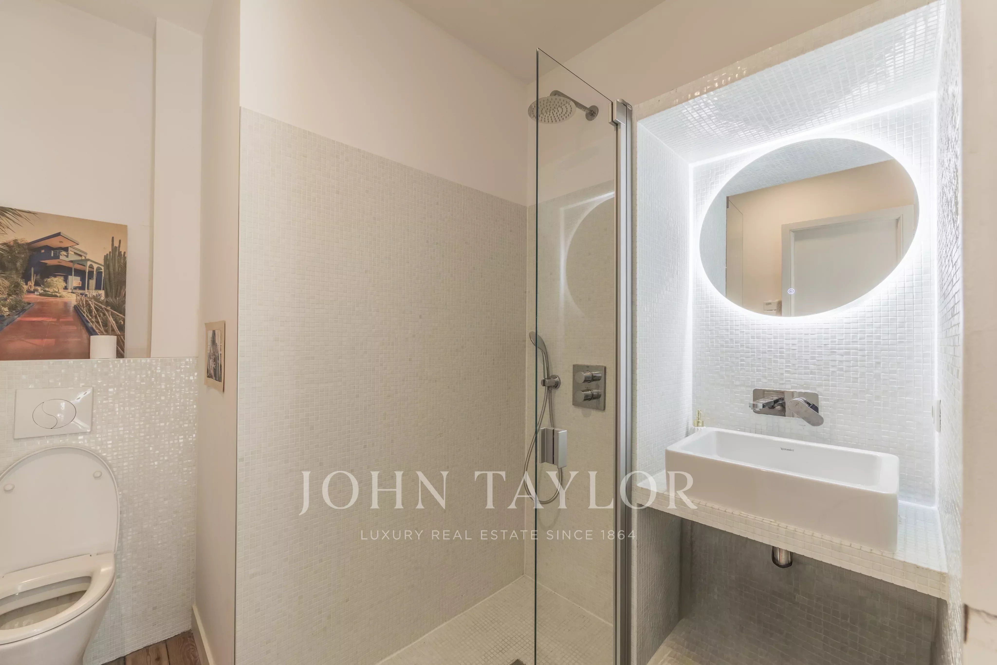 En la primera planta, un cómodo espacio principal compuesto por una zona de descanso, un cuarto de baño con ducha, numerosos armarios y vestidores, así como una magnífica galería bordelesa de unos 20 m² que da a una galería que domina el jardín, un elemento arquitectónico lleno de encanto y especialmente poco común en Burdeos. Un pasillo conduce también a otros dos amplios dormitorios de unos 20 m² cada uno.