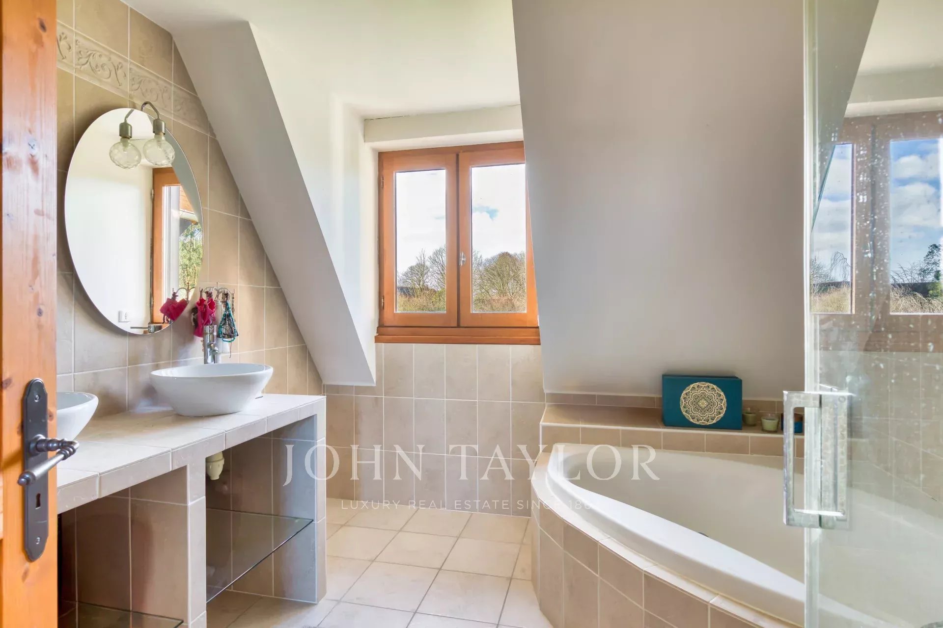 En Normandía, en una zona muy solicitada en las alturas de Honfleur, John Taylor presenta una hermosa casa de estilo normando construida en 2004 en una parcela de unos 9000 m2.
