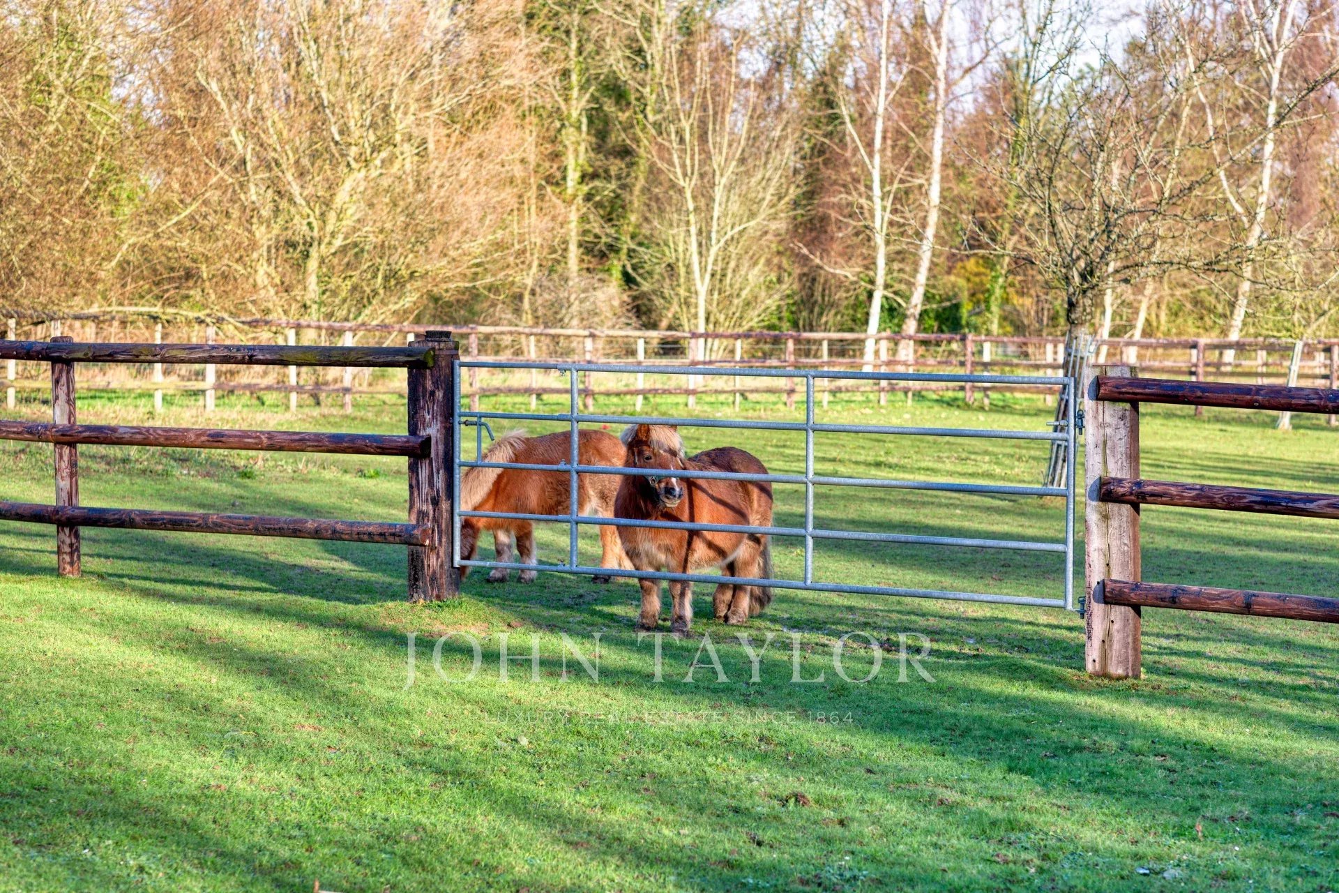 Un hermoso jardín alrededor de la casa con un huerto y praderas divididas en dos potreros con un refugio para ponis o caballos completan esta propiedad.
