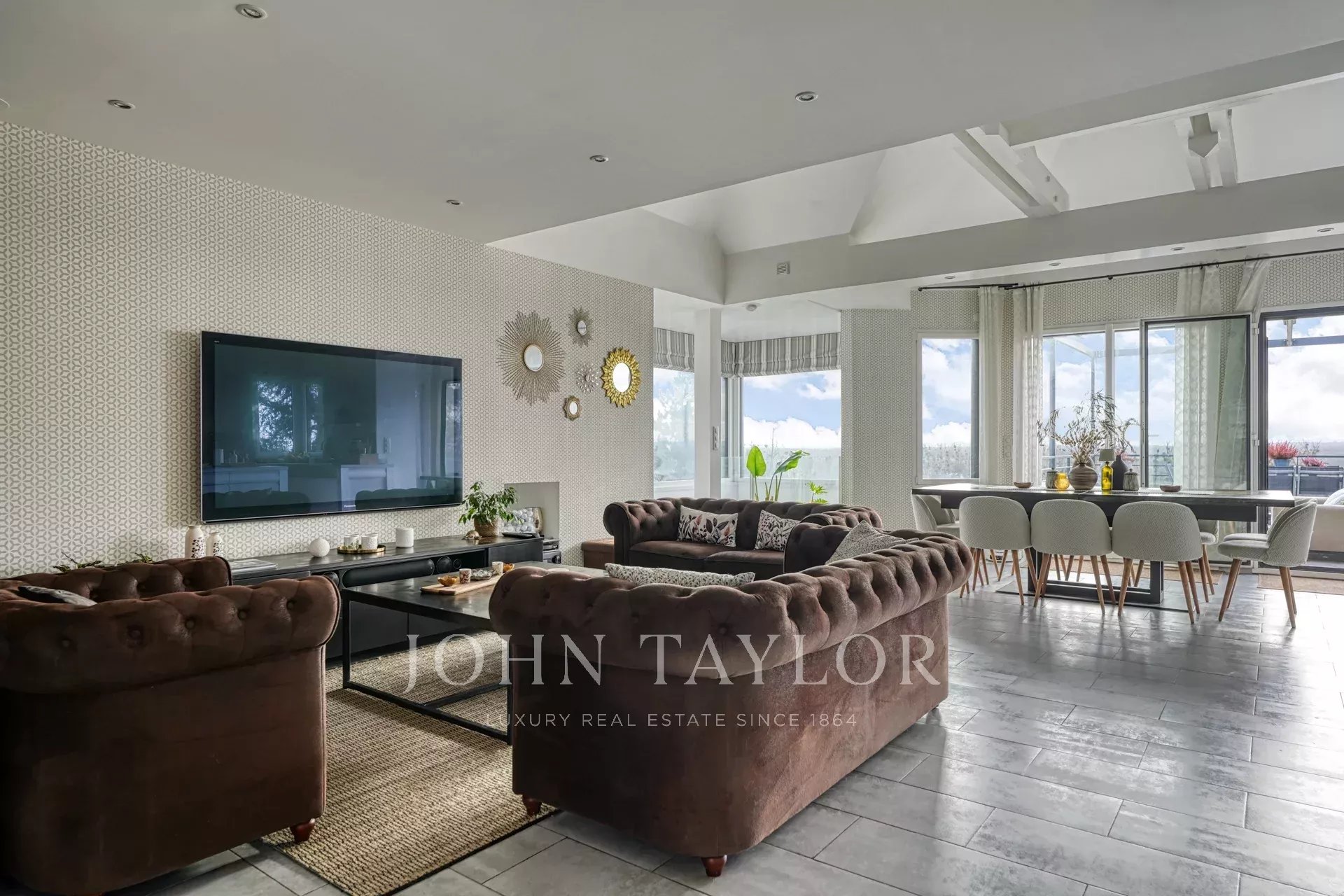 Su arquitectura contemporánea, combinada con una distribución en varias plantas y numerosas terrazas, confiere a la propiedad un ambiente que recuerda al de un piso, pero con todas las ventajas de un verdadero hogar. Todo ello realzado por unas vistas panorámicas sobre el Sena y la Île d'Herblay.