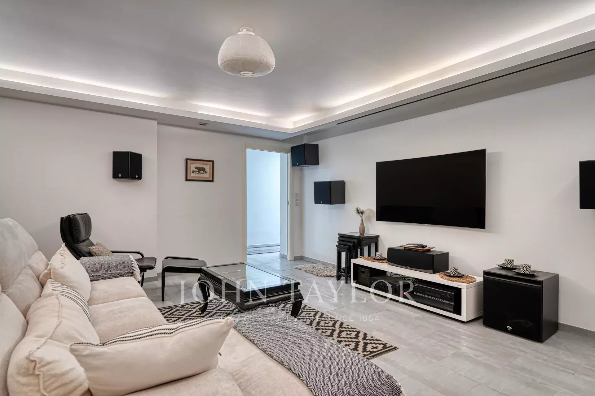 También hay dos dormitorios en este nivel, uno de ellos con una zona exterior privada, así como una sala de cine, una lavandería y una bodega.