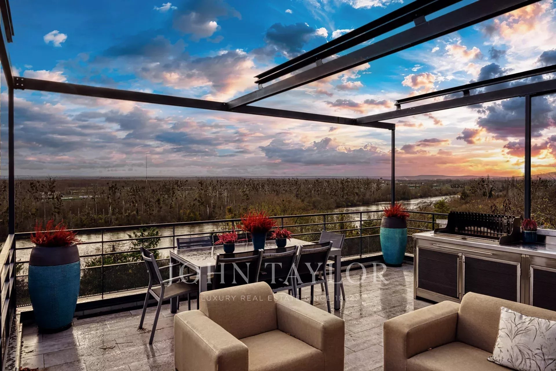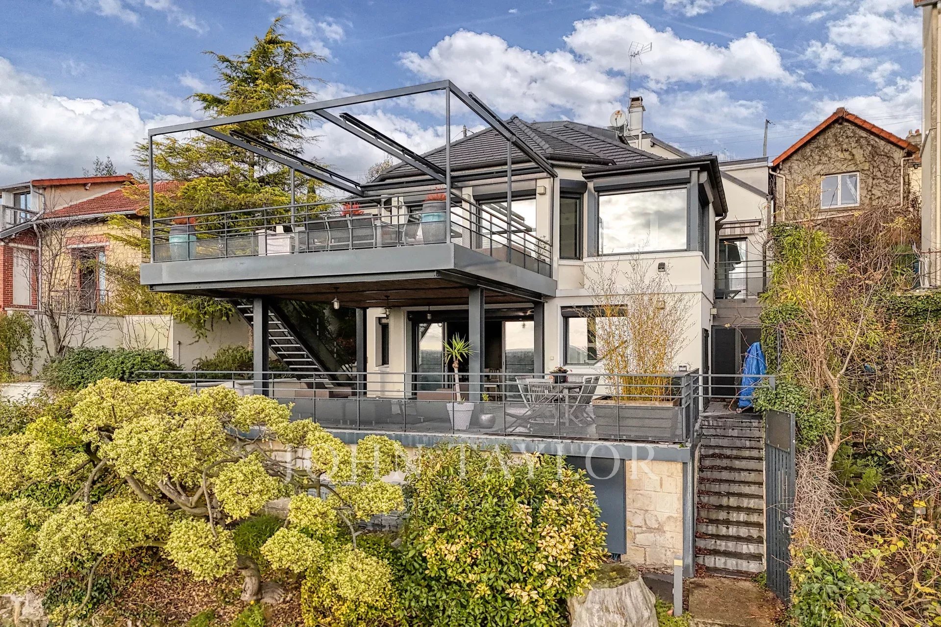 Su arquitectura contemporánea, combinada con una distribución en varias plantas y numerosas terrazas, confiere a la propiedad un ambiente que recuerda al de un piso, pero con todas las ventajas de un verdadero hogar. Todo ello realzado por unas vistas panorámicas sobre el Sena y la Île d'Herblay.
