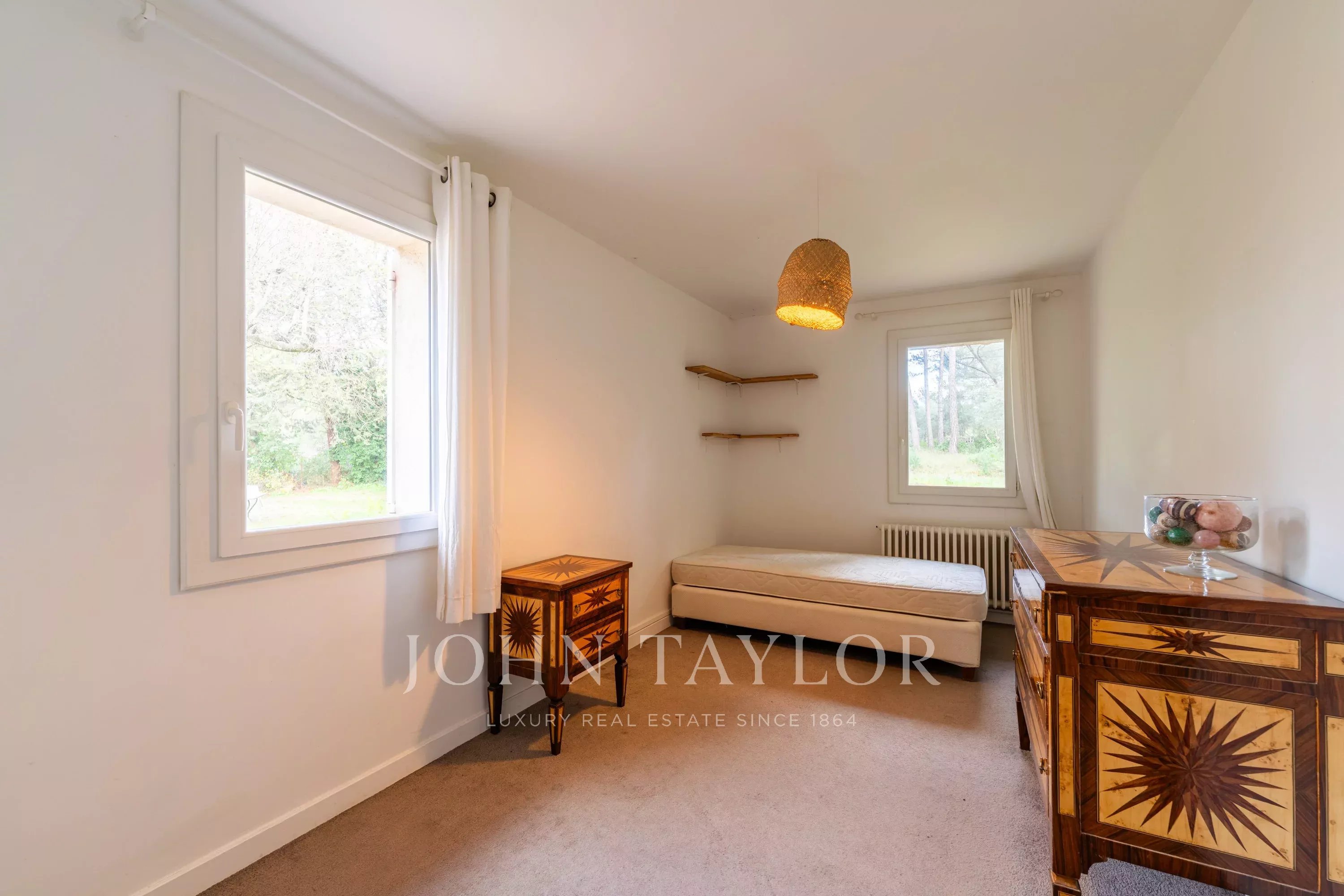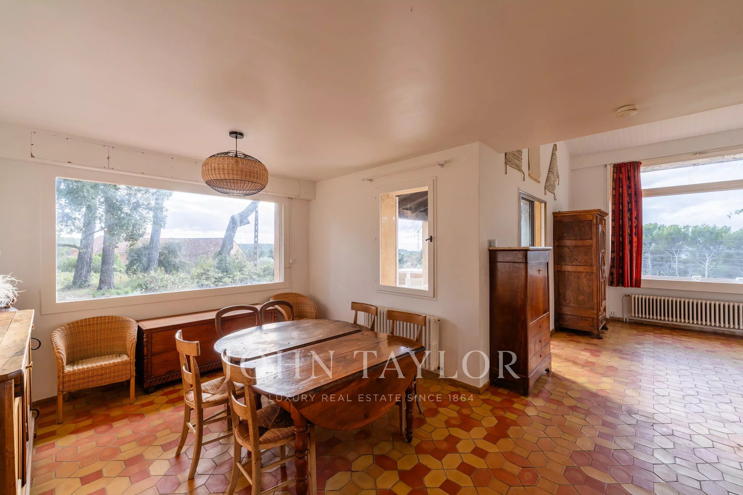Su agencia inmobiliaria de prestigio John Taylor se complace en presentarle una propiedad en venta en el codiciado barrio de Pinchinats, en un marco natural excepcional. Situada en un terreno cerrado de 6.400 m² plantado de pinos y robles, ofrece una tranquilidad y una calidad de vida absolutas, a pocos minutos del centro histórico de Aix-en-Provence.