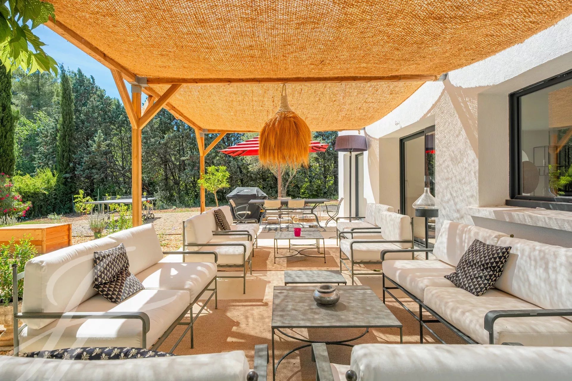 A solo 4 km del centro de Aix-en-Provence, en una residencia segura y tranquila, esta casa completamente renovada de aproximadamente 250 m² ofrece un entorno de vida excepcional y muy buscado.