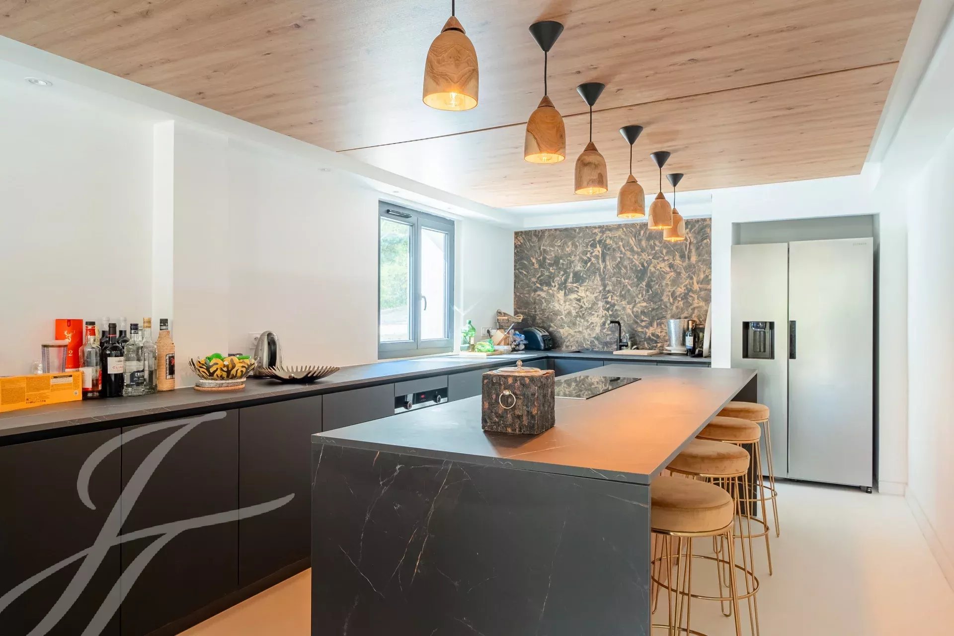 Desde la entrada, los volúmenes y la luminosidad seducen: una espaciosa sala de estar que combina salón, comedor y cocina equipada, abierta al exterior, crea un espacio acogedor ideal para recibir.