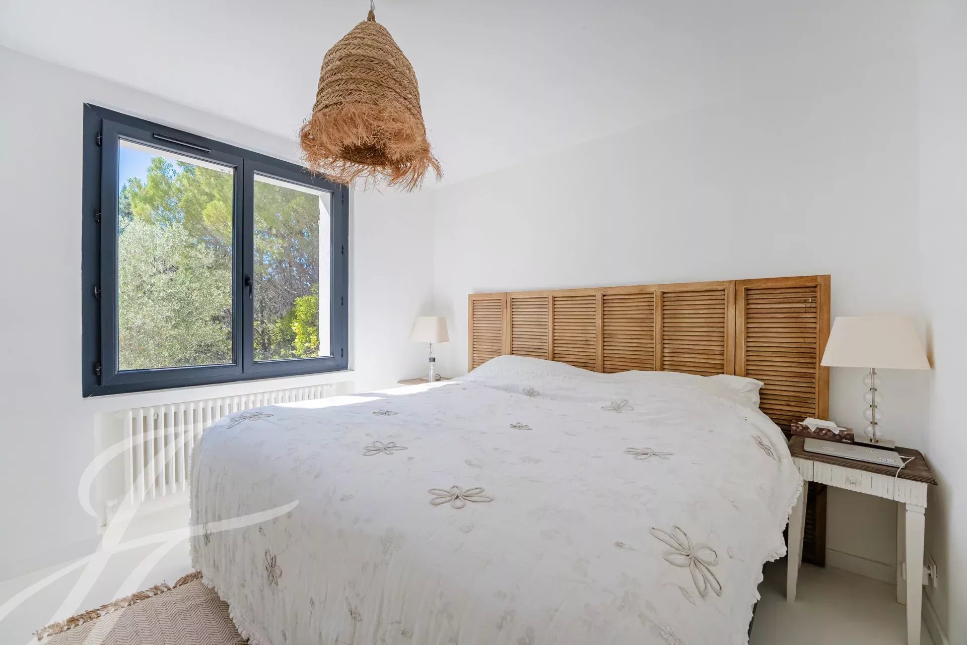 En el exterior, el jardín arbolado y cerrado de aproximadamente 2.200 m² alberga una pequeña piscina, viñas y espacios verdes de juegos.