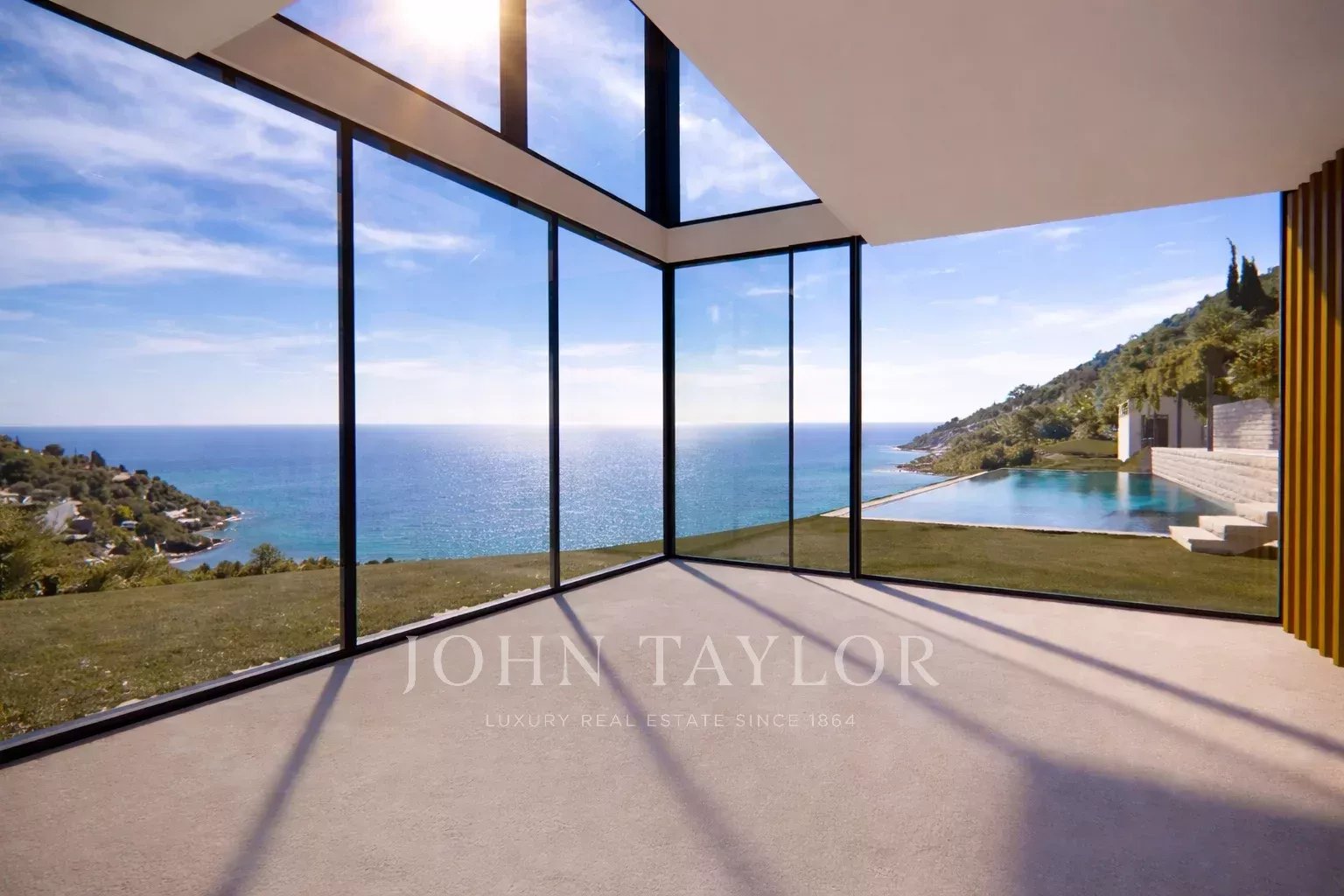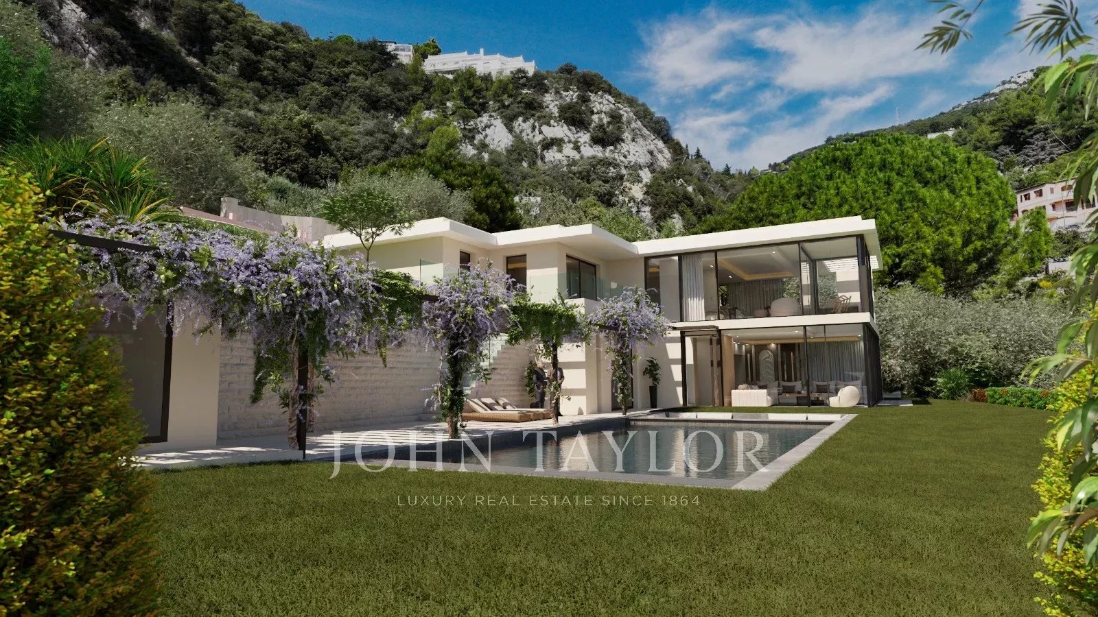 En exclusiva de John Taylor, situada en la codiciada zona residencial de Les Révoires en La Turbie, muy cerca de Mónaco, esta villa se encuentra actualmente en construcción con licencia de obras aceptada y depurada.