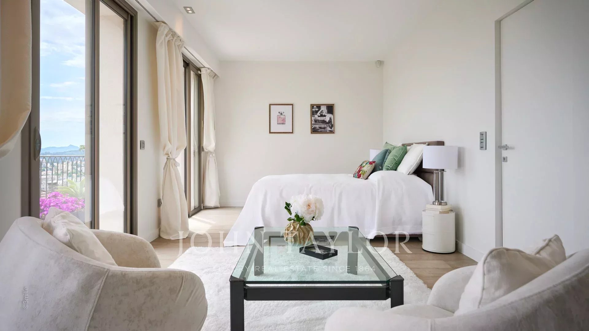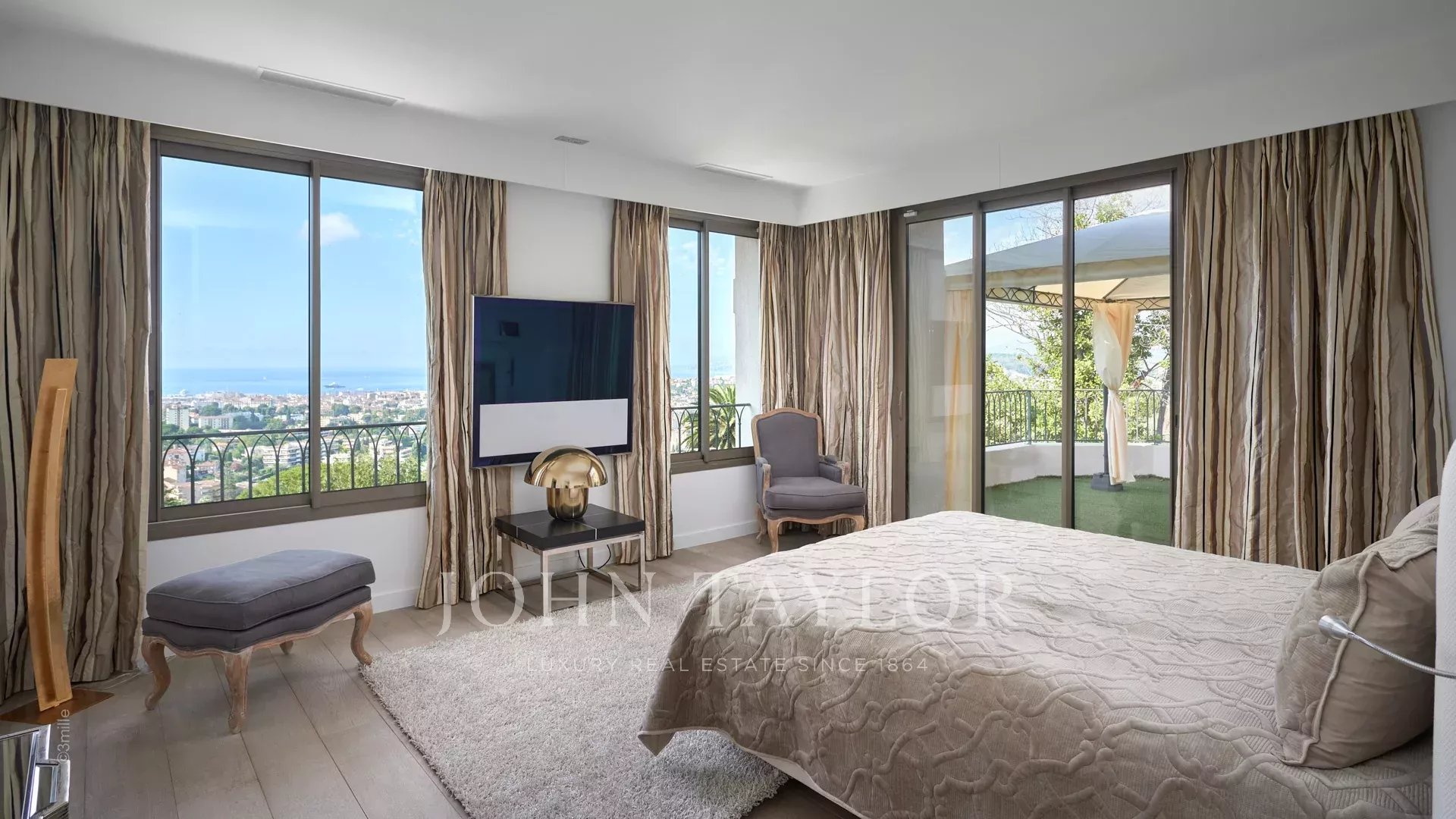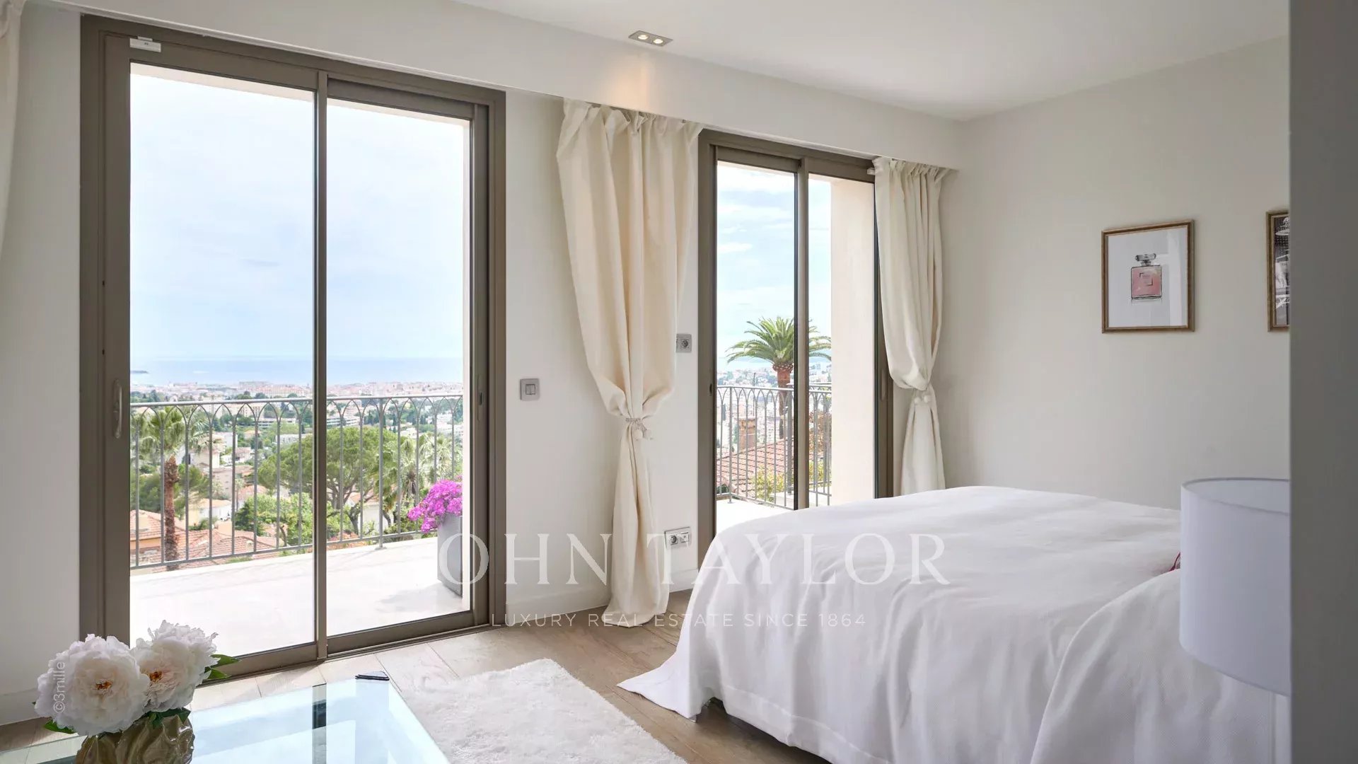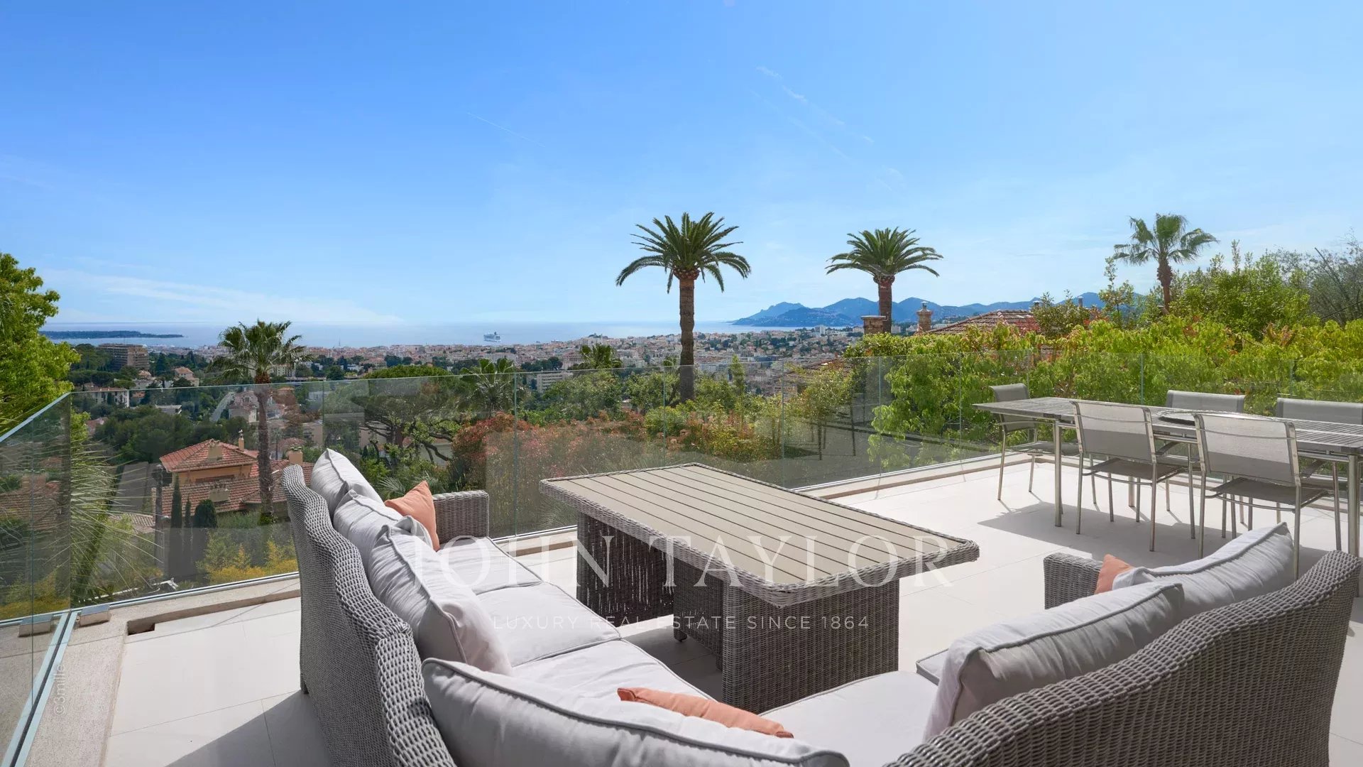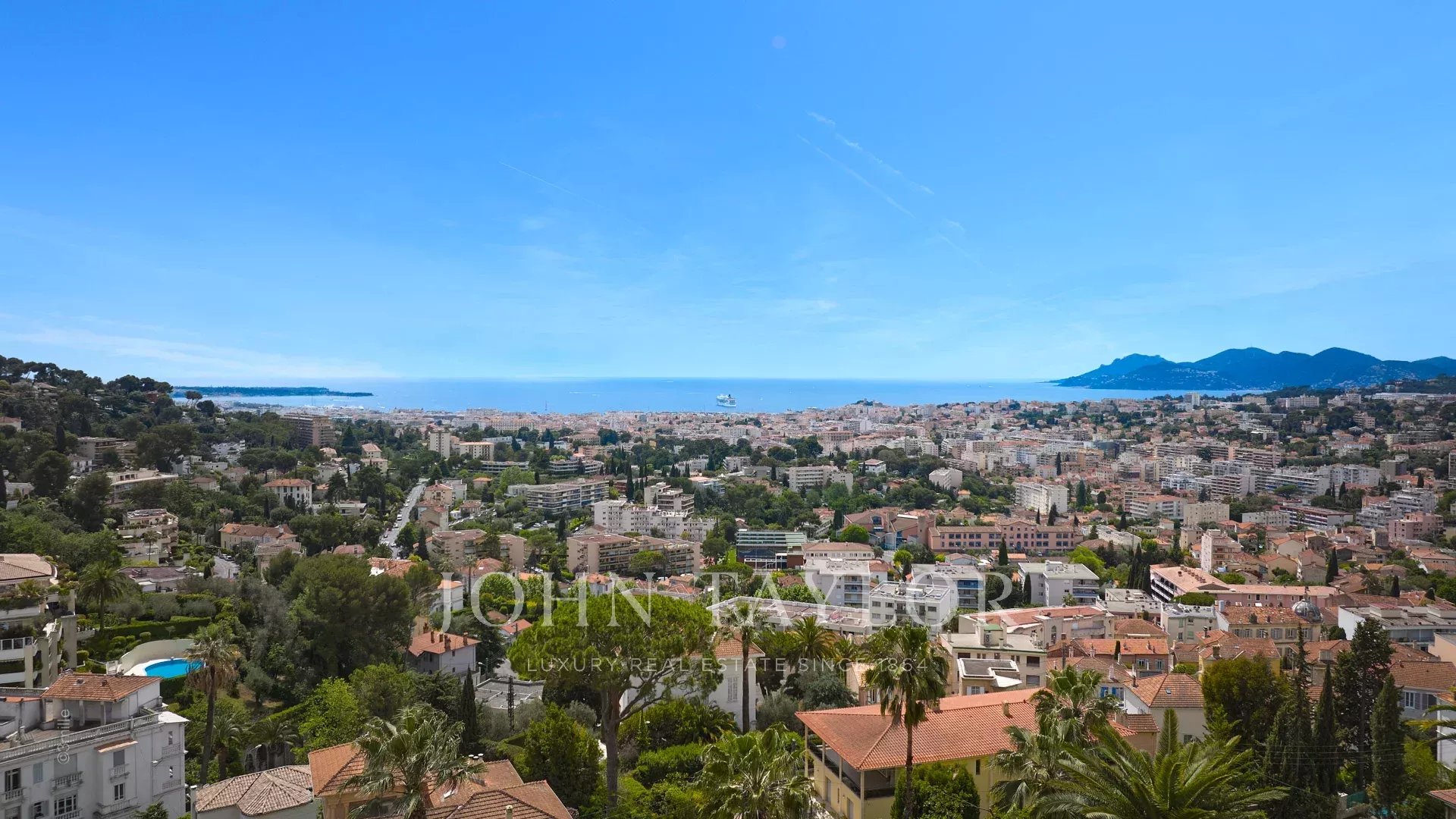 Orientada hacia el sur y con vistas a la bahía de Cannes, ofrece vistas al mar desde las islas Lérins hasta el macizo de Estérel.