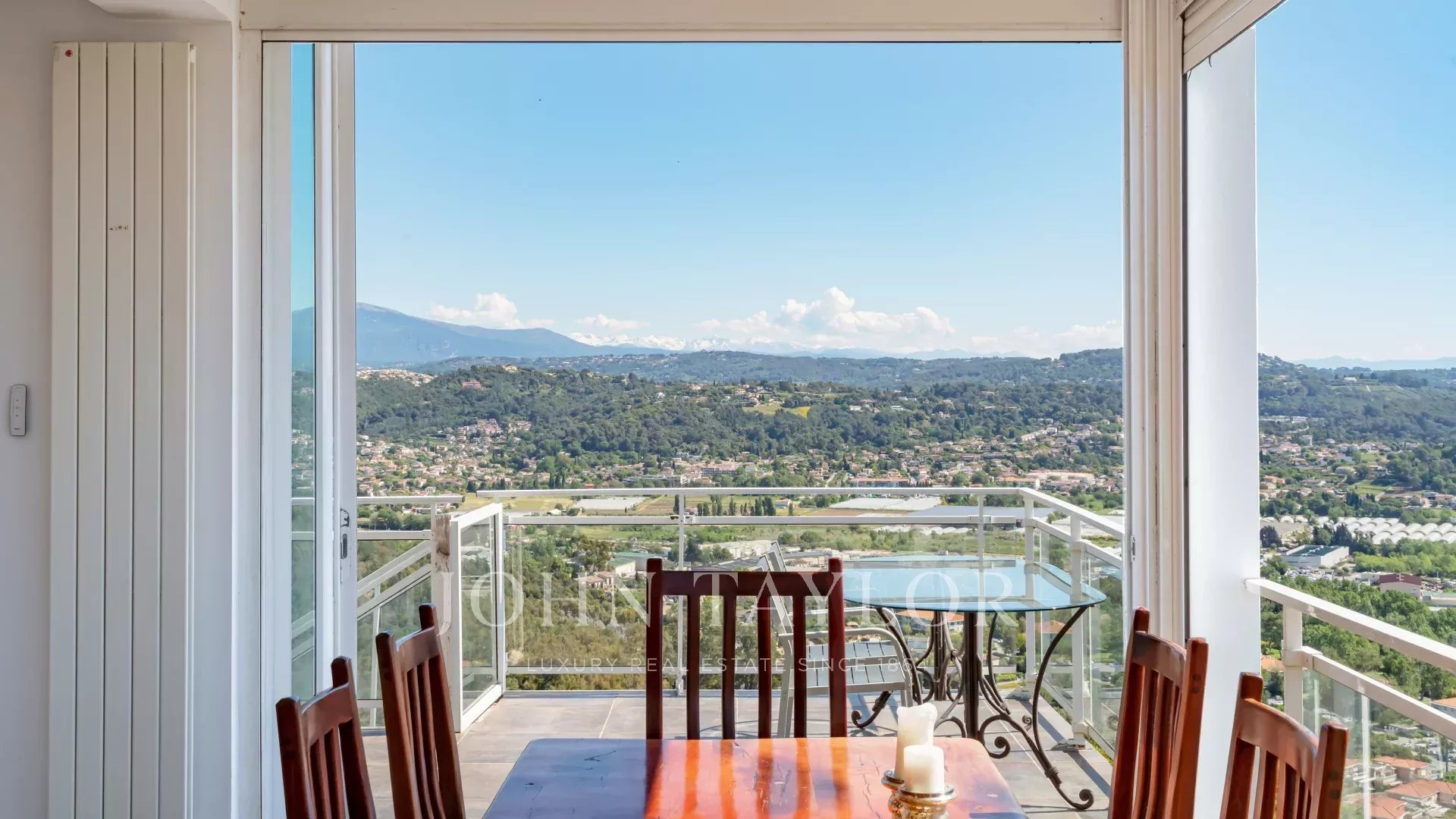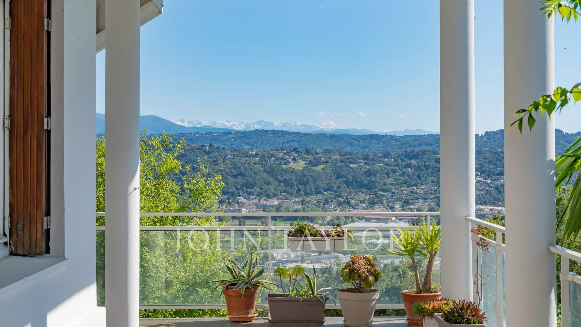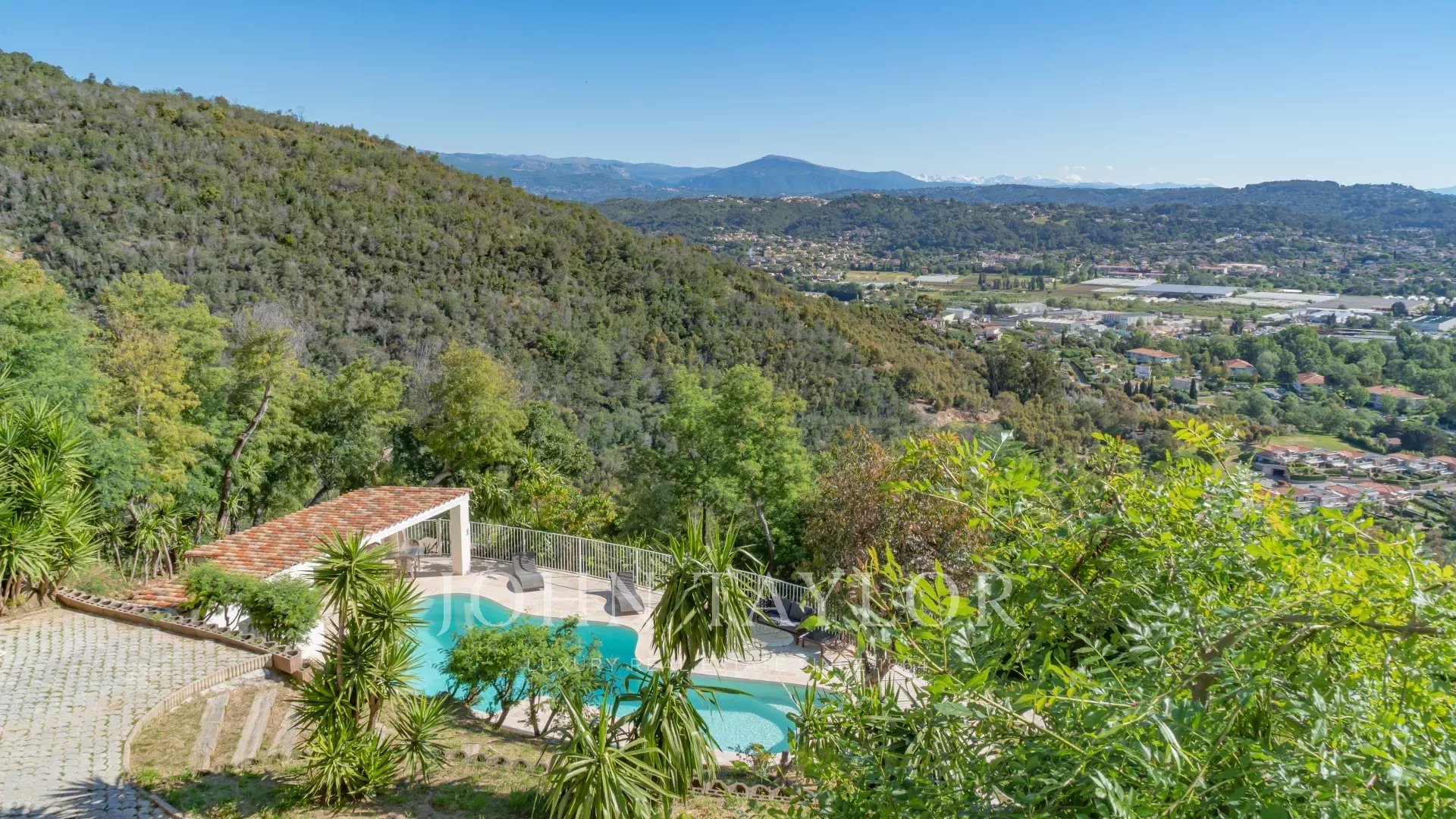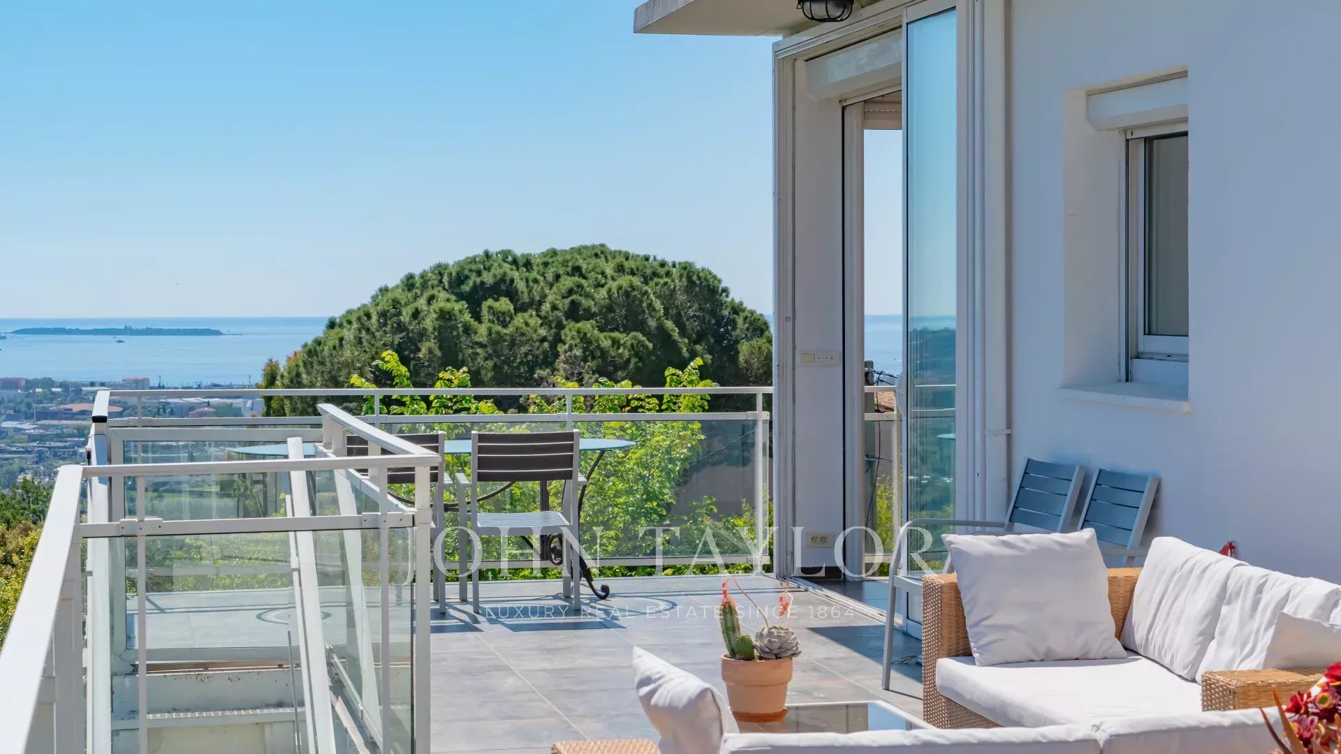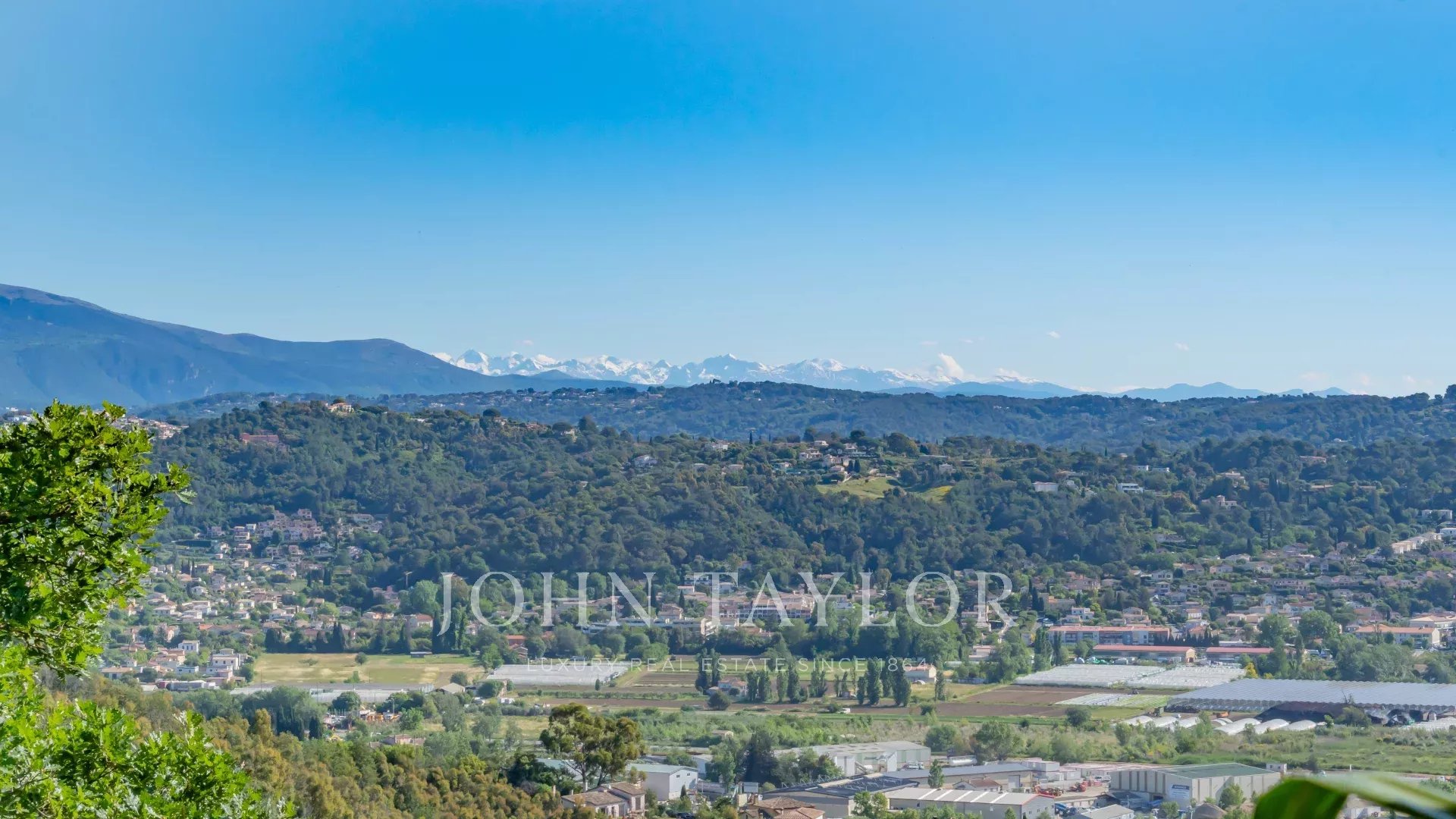 Situada en la ladera de Mandelieu, esta villa de estilo contemporáneo goza de unas impresionantes vistas panorámicas de 270 grados sobre las islas, la bahía de Cannes, el macizo del Estérel y los Alpes.