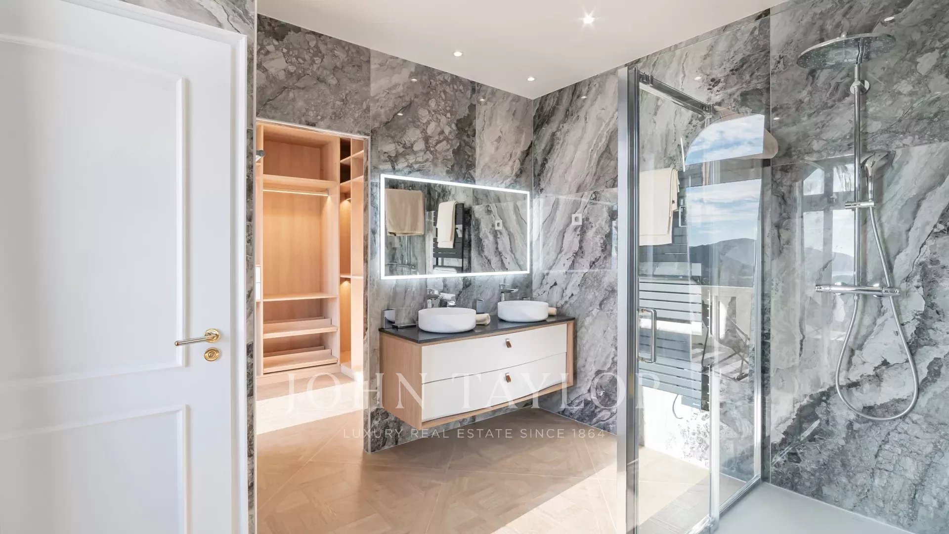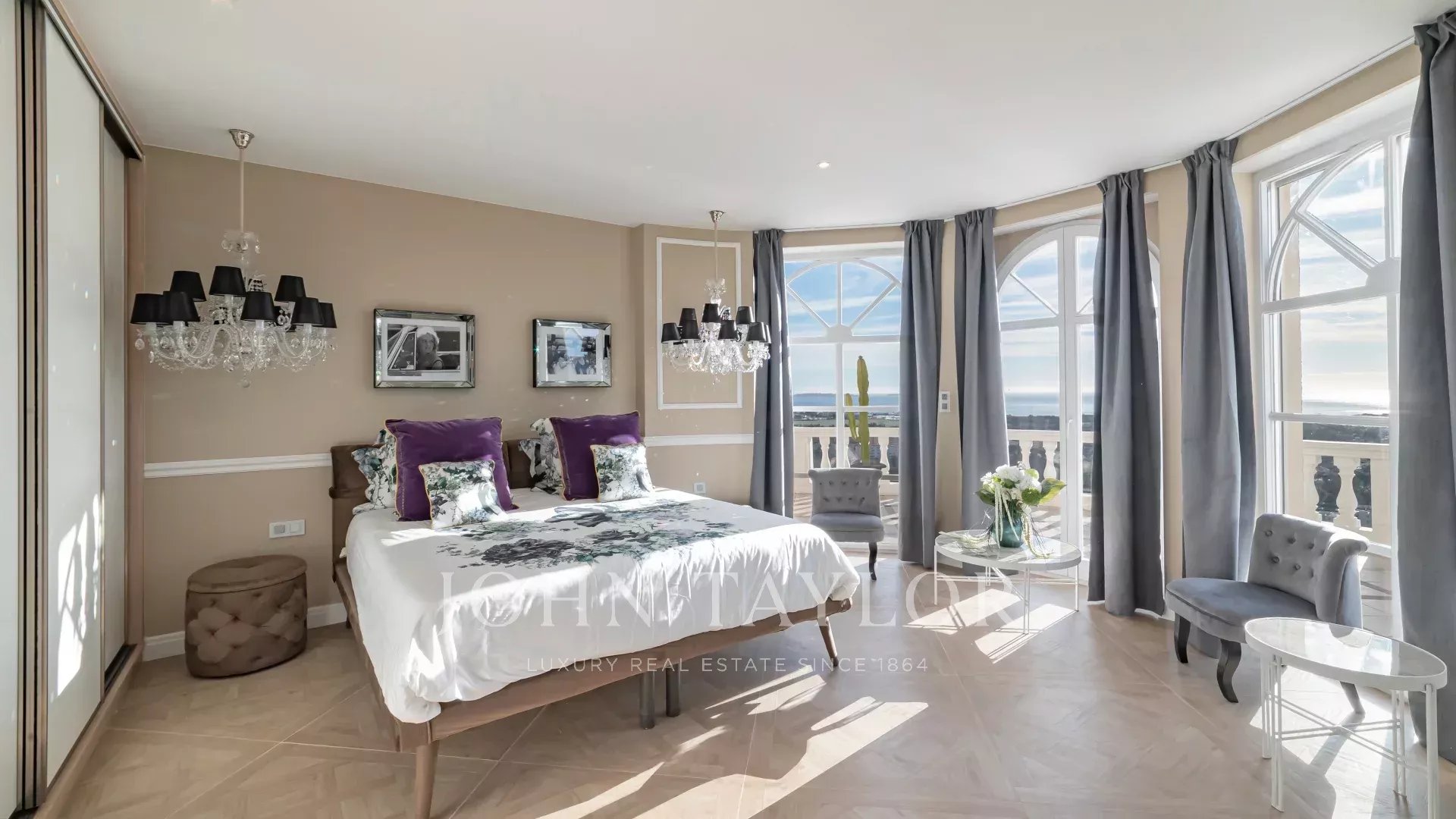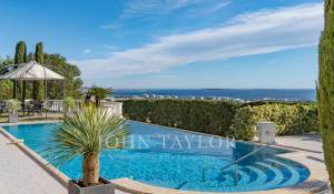 Situada en una zona residencial cercana al centro de Mandelieu, esta hermosa villa orientada al sur con piscina infinita goza de vistas panorámicas a la bahía de Cannes.