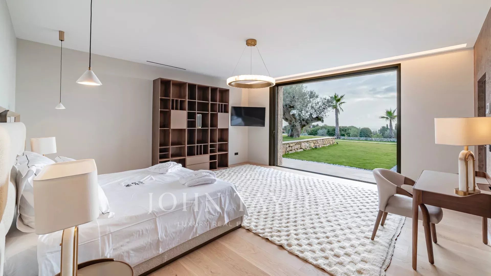 La villa está rodeada por un magnífico jardín mediterráneo con una piscina infinita, jacuzzi y casa de la piscina.