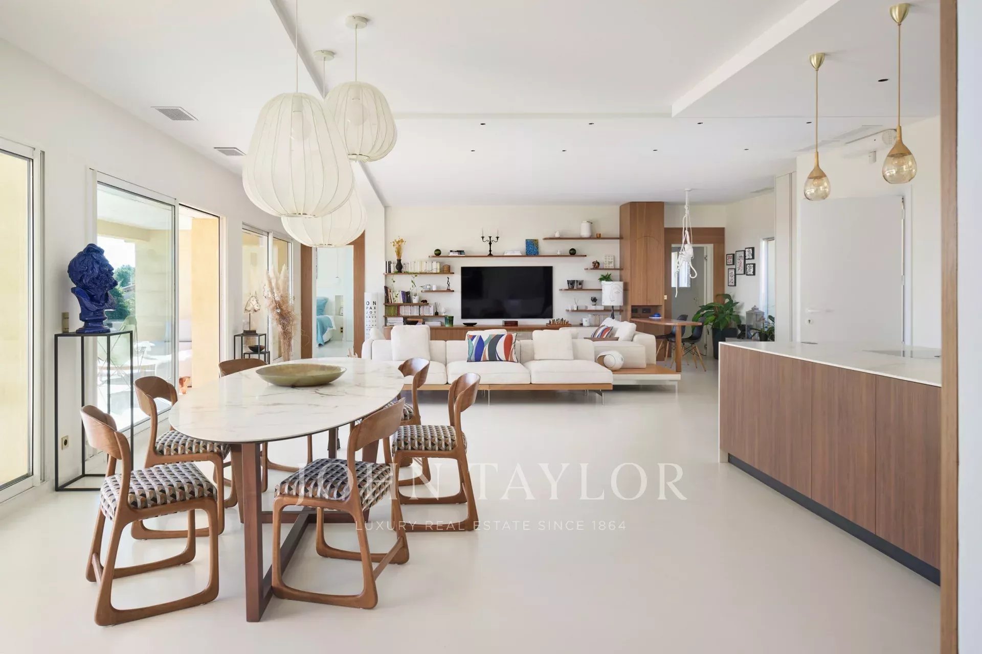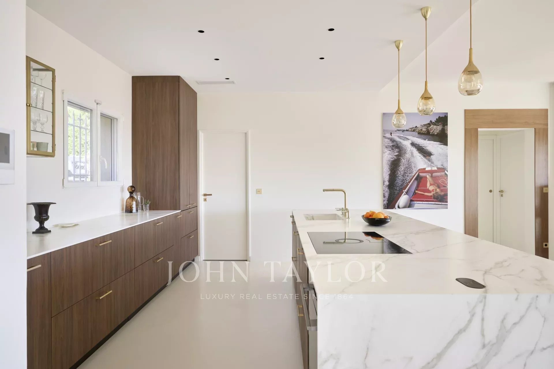 Con una superficie de unos 233 m², esta villa ha sido totalmente renovada con materiales de alta gama y consta de un salón-comedor de 100 m² con cocina americana, dormitorio principal con cuarto de ducha en suite, tres dormitorios con cuartos de ducha en suite, lavadero y una terraza cubierta de 45 m².