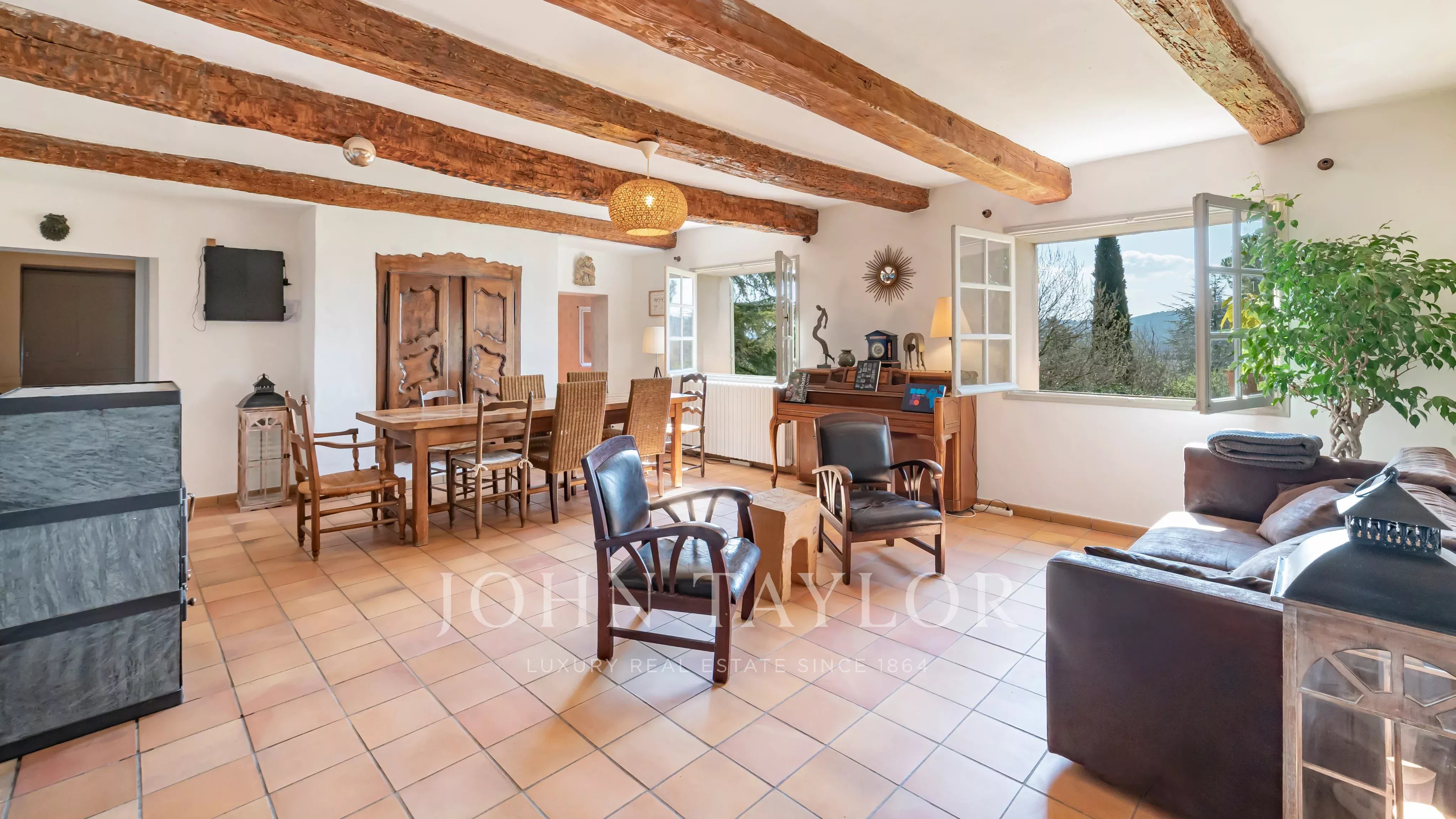 Situada en un entorno natural conservado, en el corazón del campo de Tourrettes y a solo unos minutos del prestigioso campo de golf de Terre Blanche, esta propiedad con carácter se extiende sobre un dominio de aproximadamente 4,4 hectáreas y ofrece un entorno de vida raro, que combina encanto, autenticidad y tranquilidad.