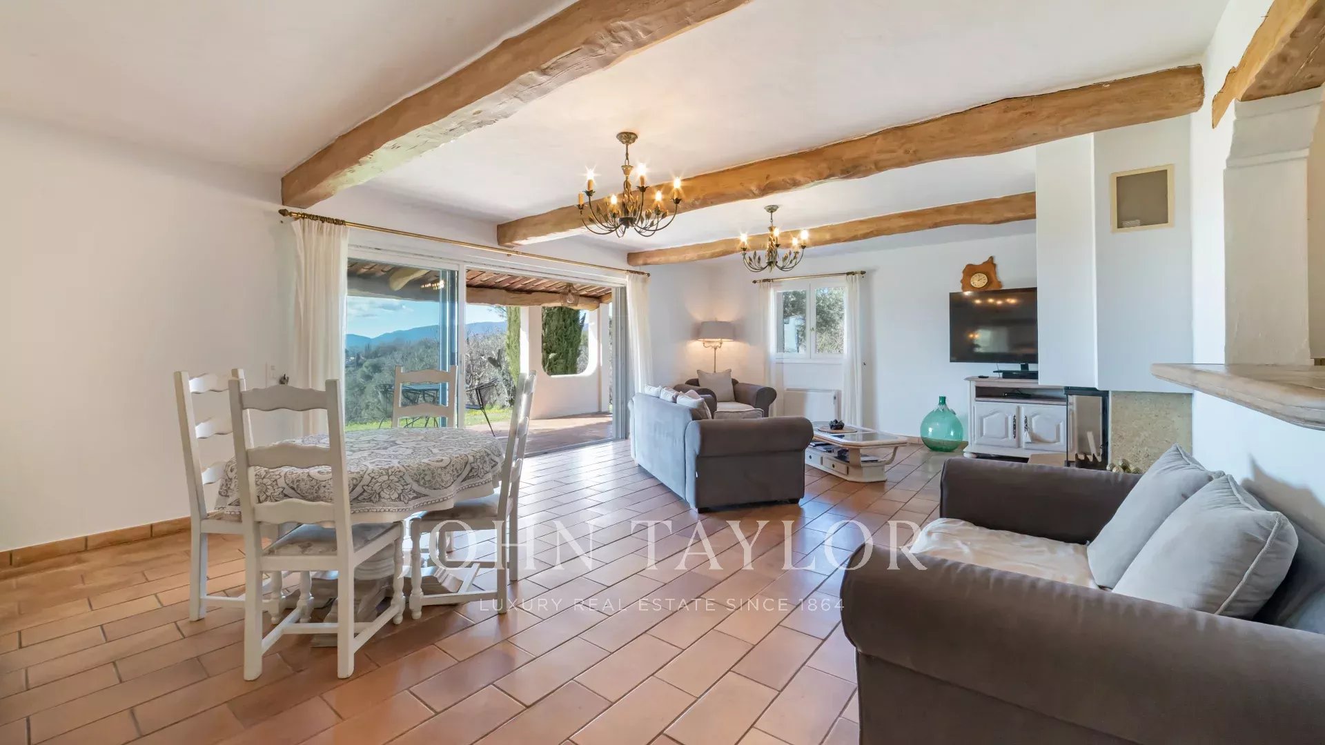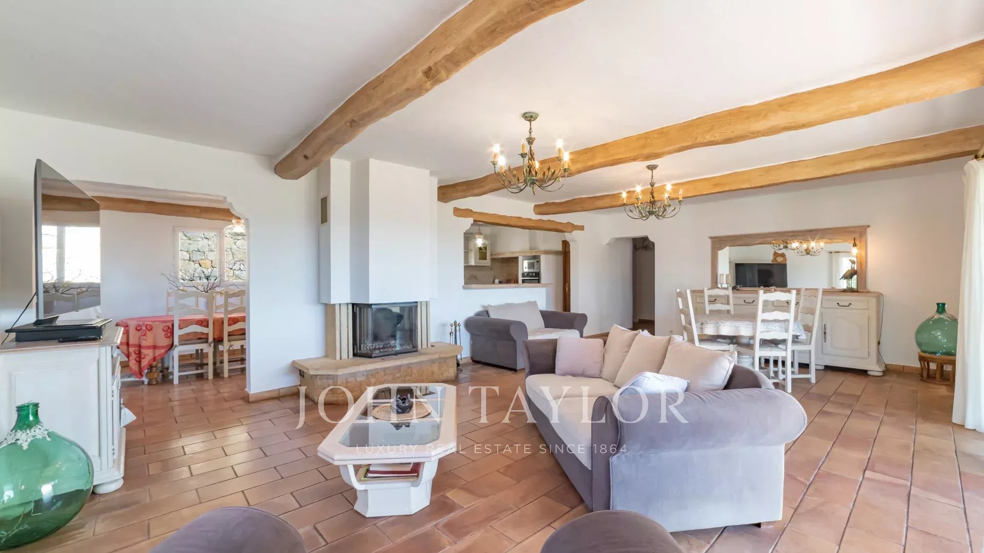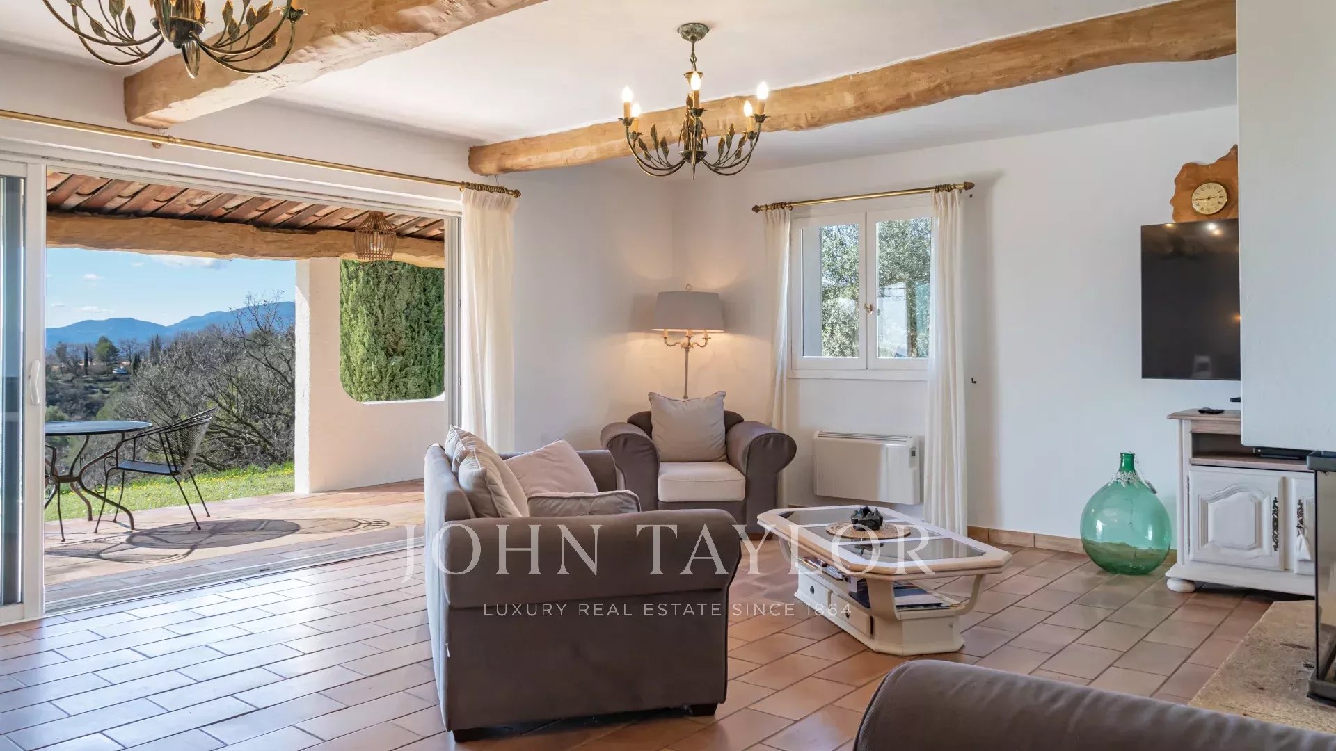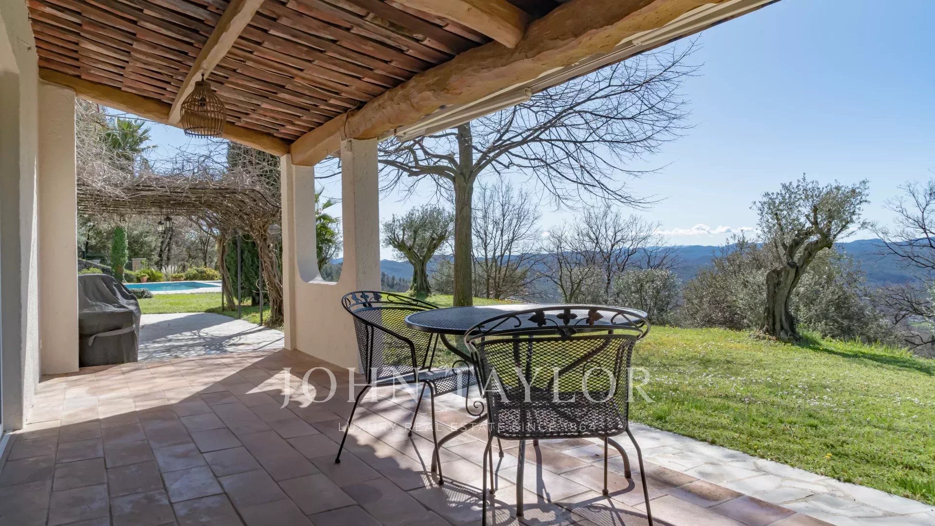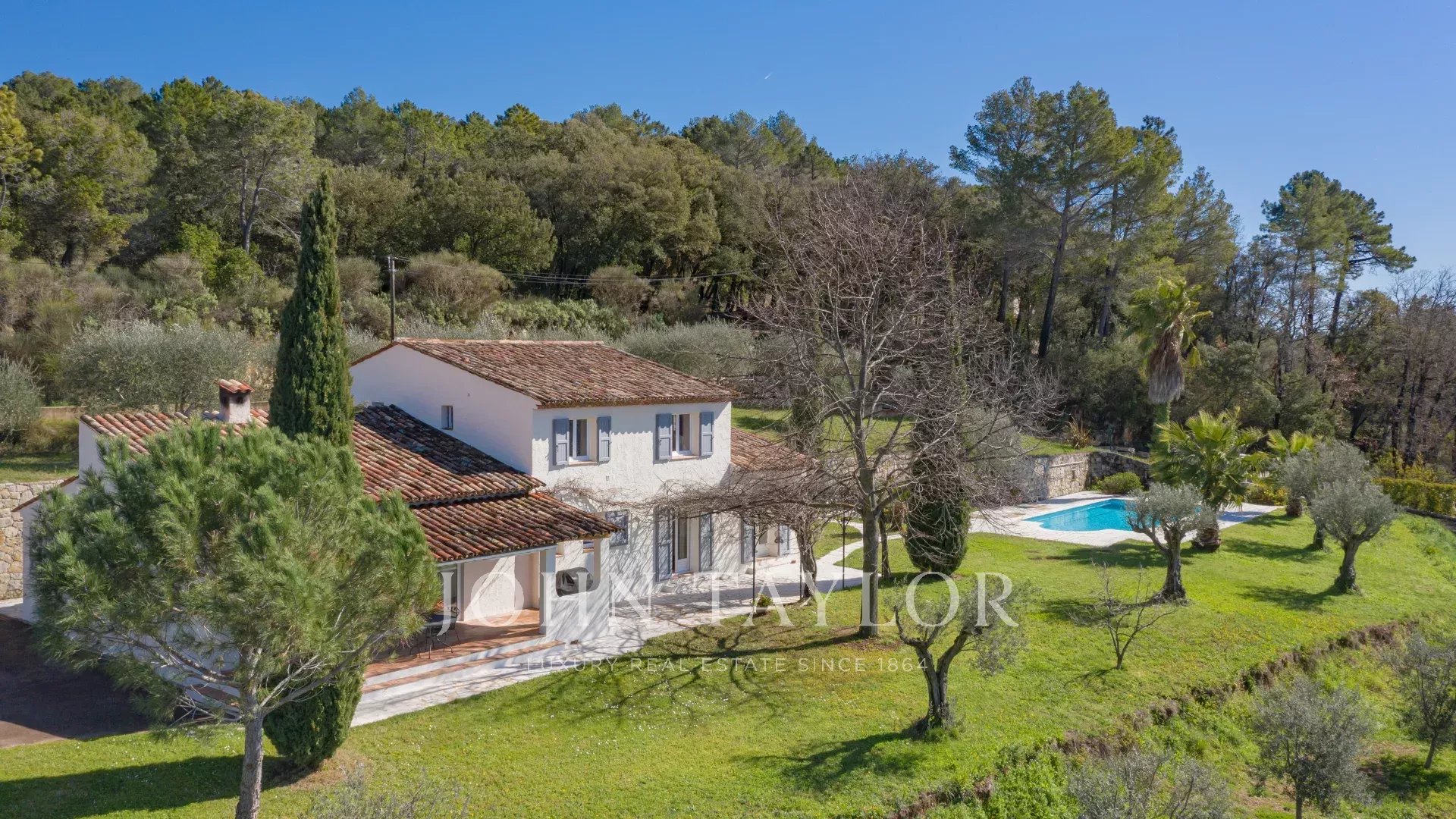 En una zona residencial, cerca de las tiendas y el pueblo de Montauroux, villa de unos 210m2 situado en una parcela de 3600m2 con piscina y olivos, que se benefician de vistas panorámicas sobre el Cantón de Fayence.