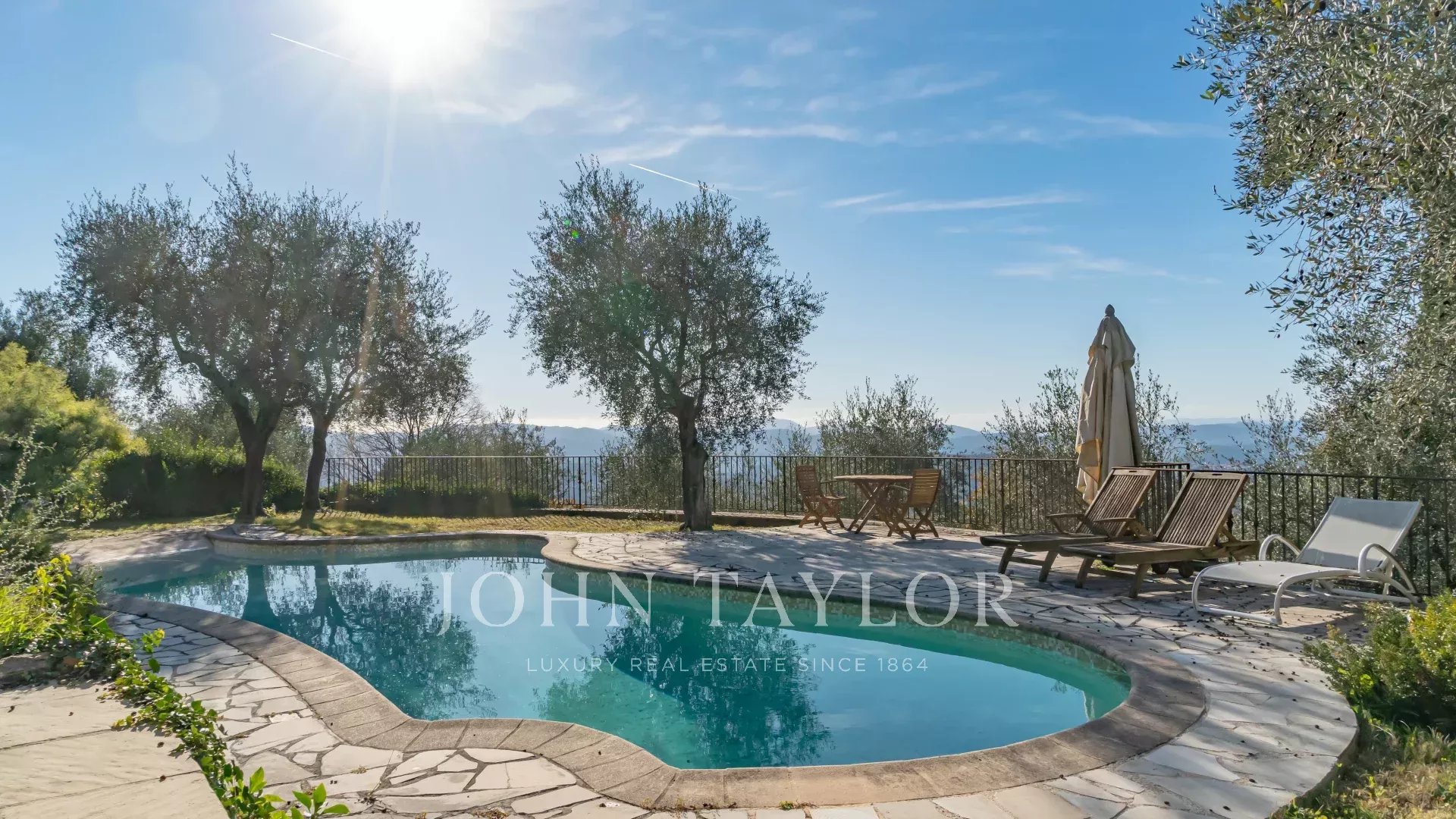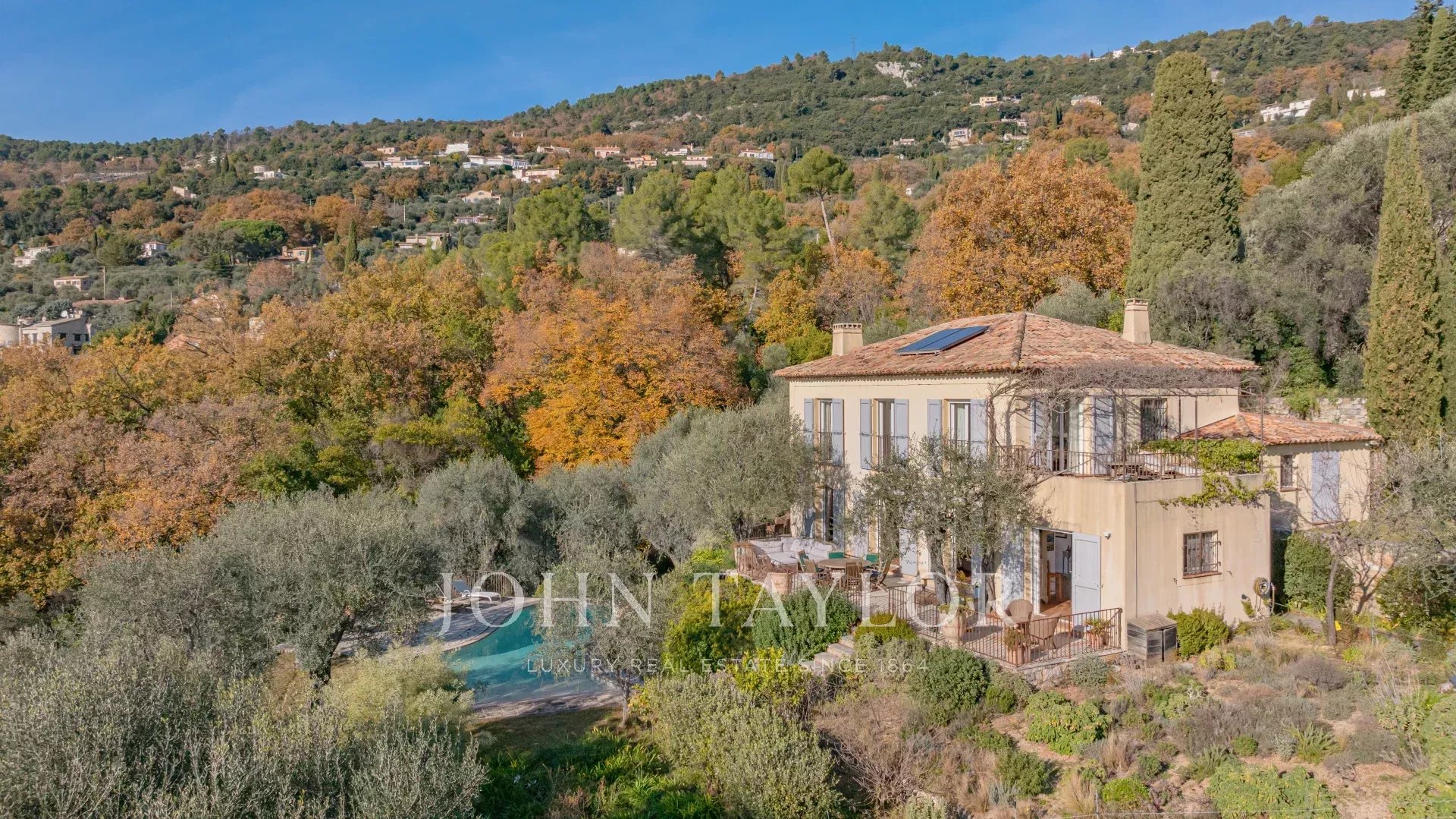 Idealmente situada a sólo unos minutos a pie del pueblo de Cabris, esta magnífica casa provenzal de 240 m² goza de impresionantes vistas de las colinas, el mar y el lago Saint-Cassien.