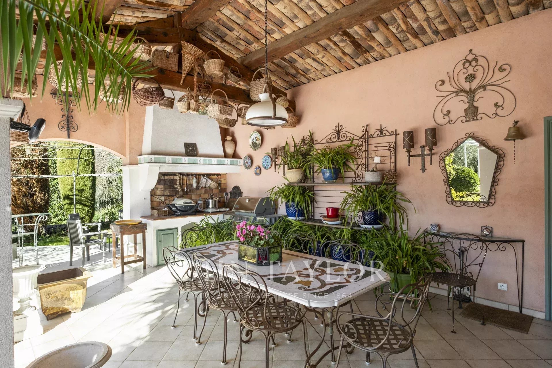 En el interior de Cannois, esta villa de elegancia atemporal en un entorno tranquilo con casa de huéspedes le encantará con sus 5.000 m2 de hermosos jardines con una variedad de árboles mediterráneos, piscina infinita climatizada y magnífica terraza cubierta con cocina de verano.