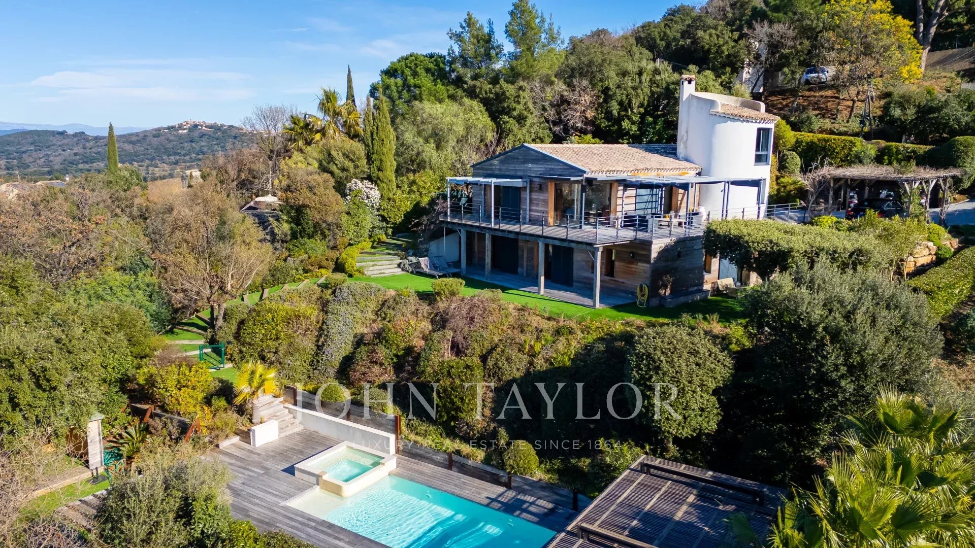 Situada en una exclusiva urbanización, esta magnífica villa diseñada por un arquitecto ofrece un entorno de vida único, a un corto paseo del centro de La Croix-Valmer.