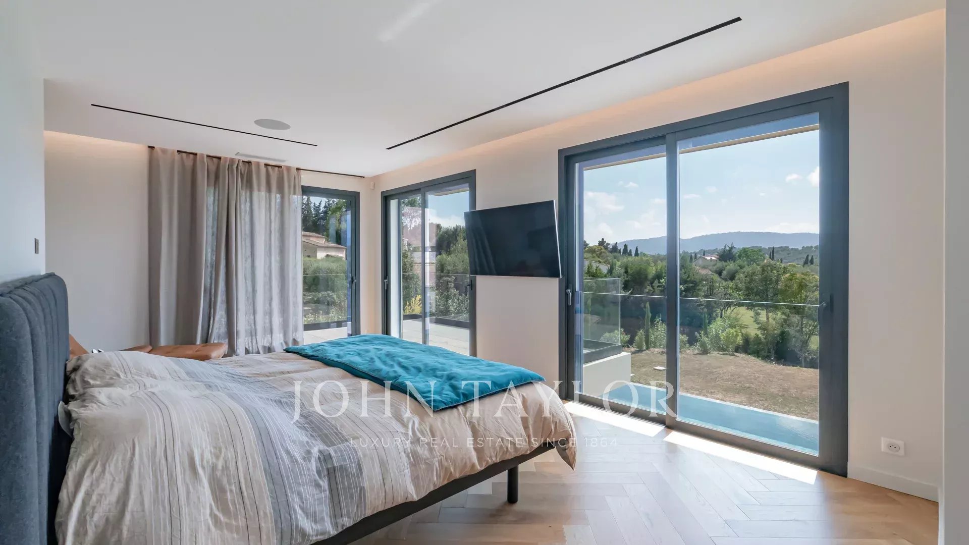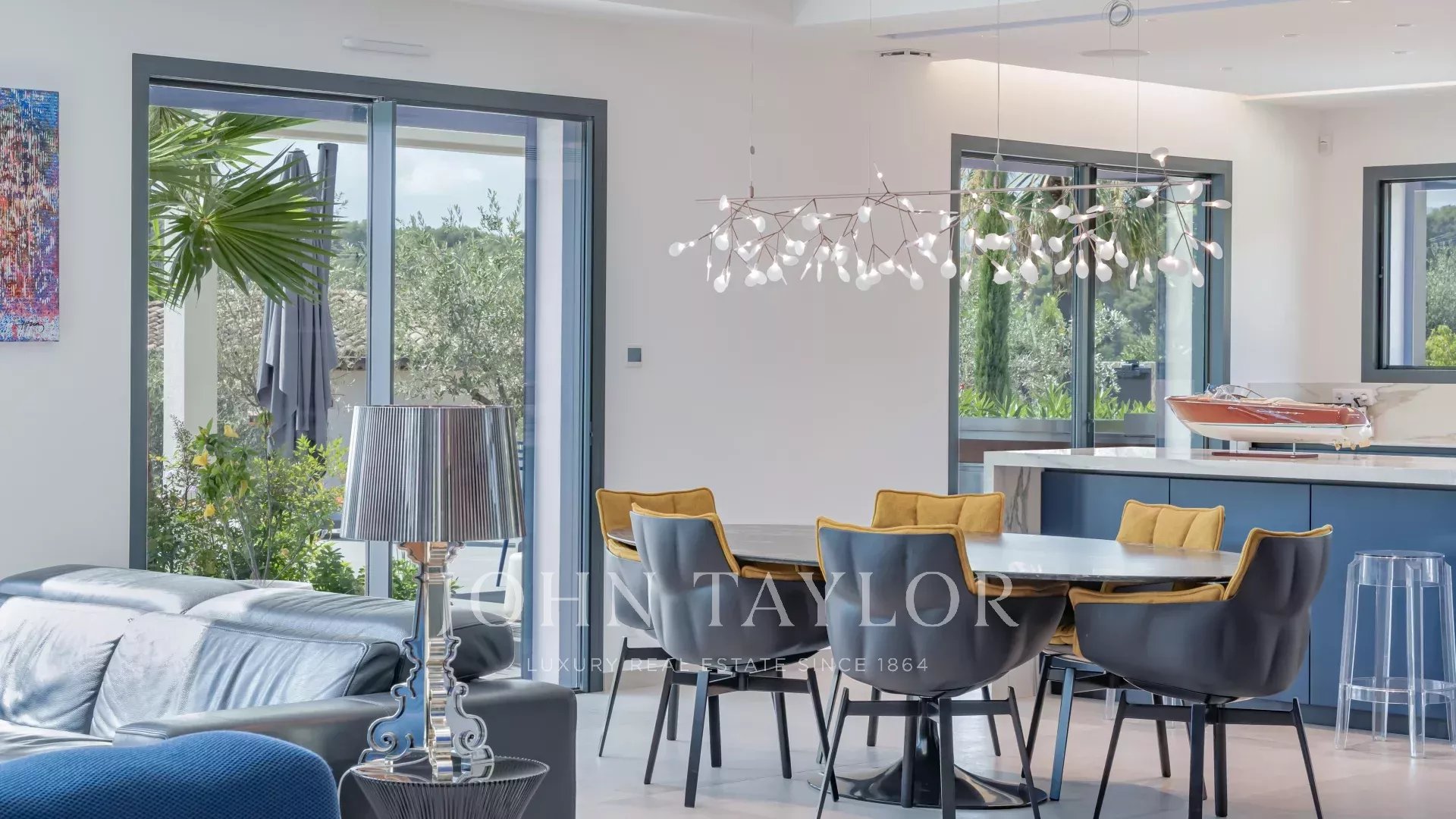 En un entorno de absoluta tranquilidad, esta magnífica villa contemporánea de nueva construcción, idealmente orientada al suroeste, cuenta con características excepcionales.