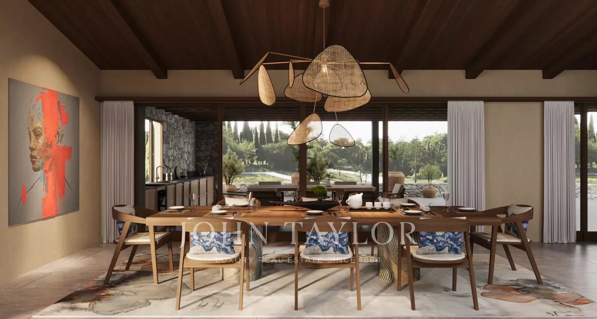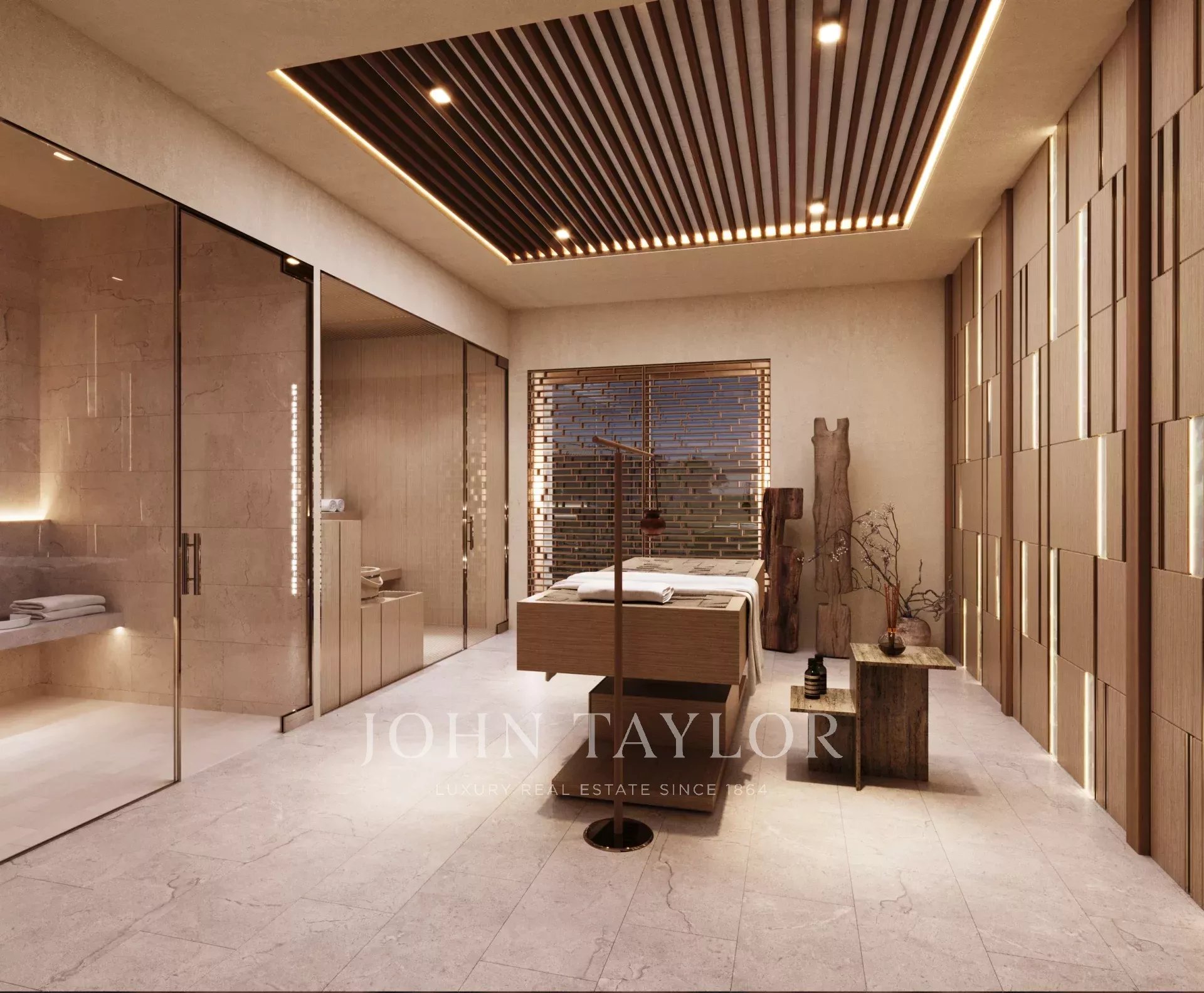 Con una superficie de 772 m2, la propiedad ofrece volúmenes generosos, con techos altos, una amplia sala de recepción, 7 habitaciones con baño y numerosos anexos, incluyendo un spa privado, un gimnasio y un amplio garaje.